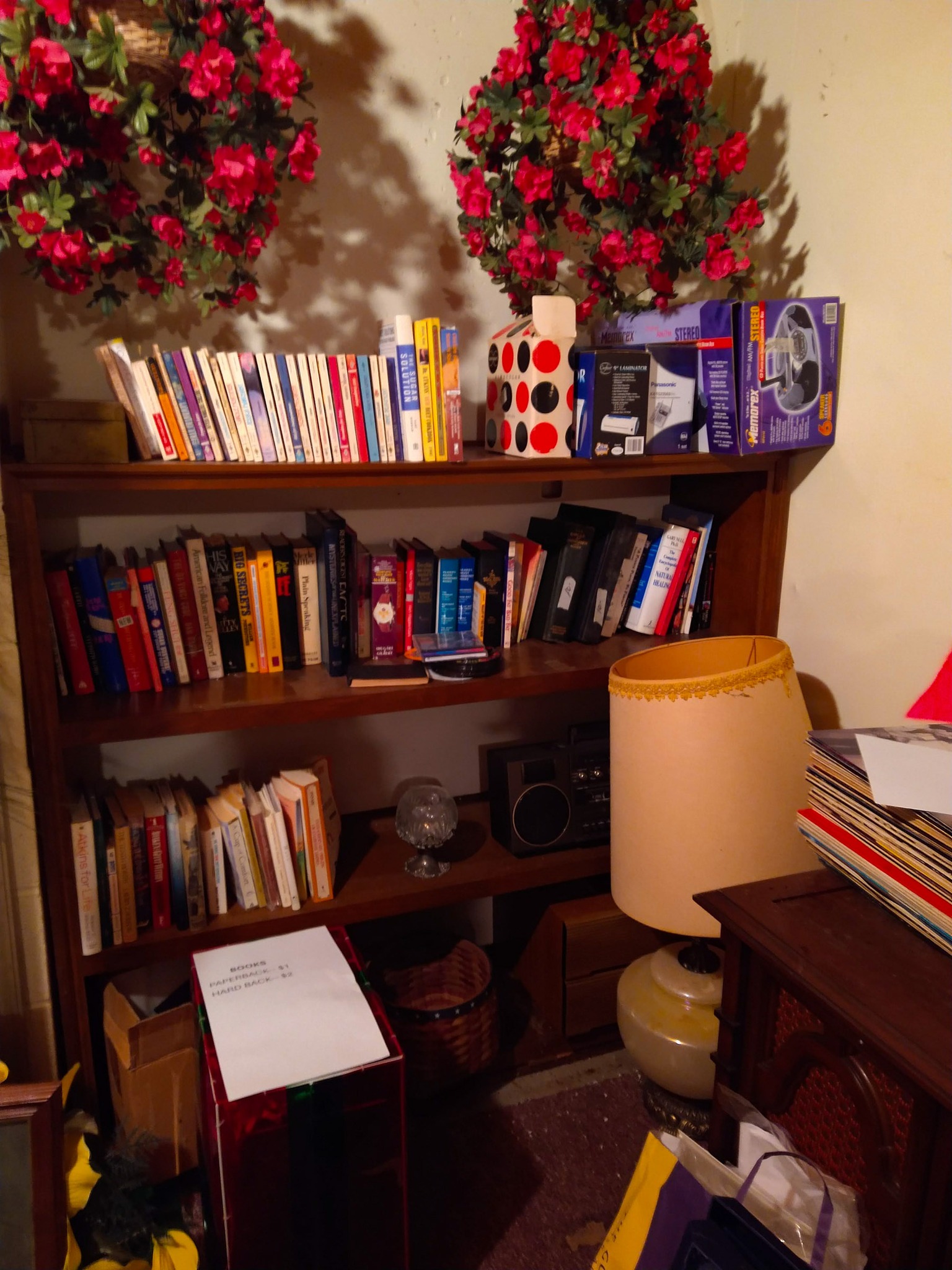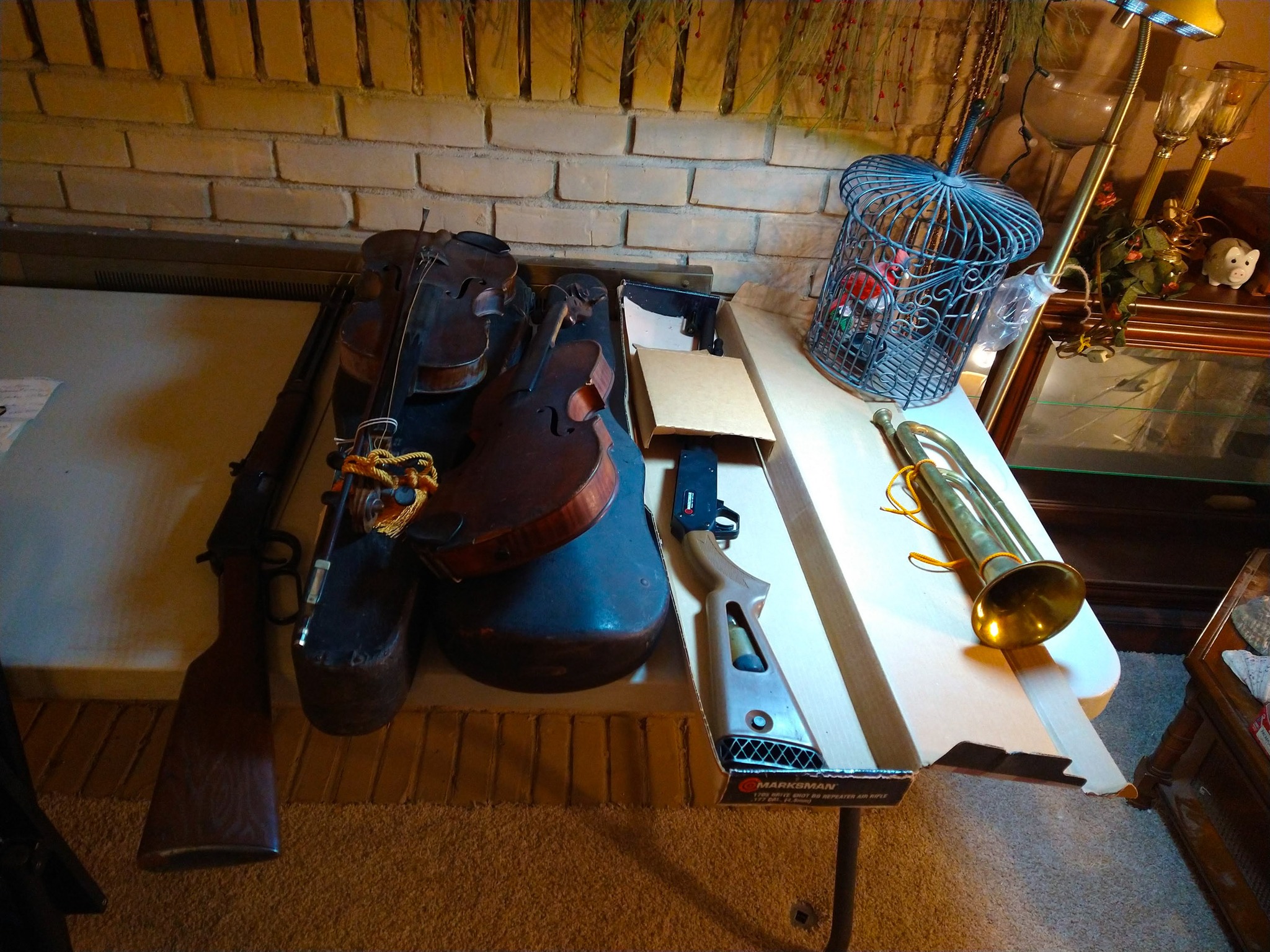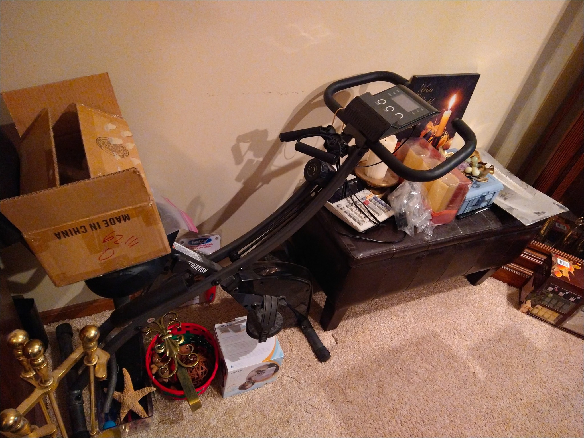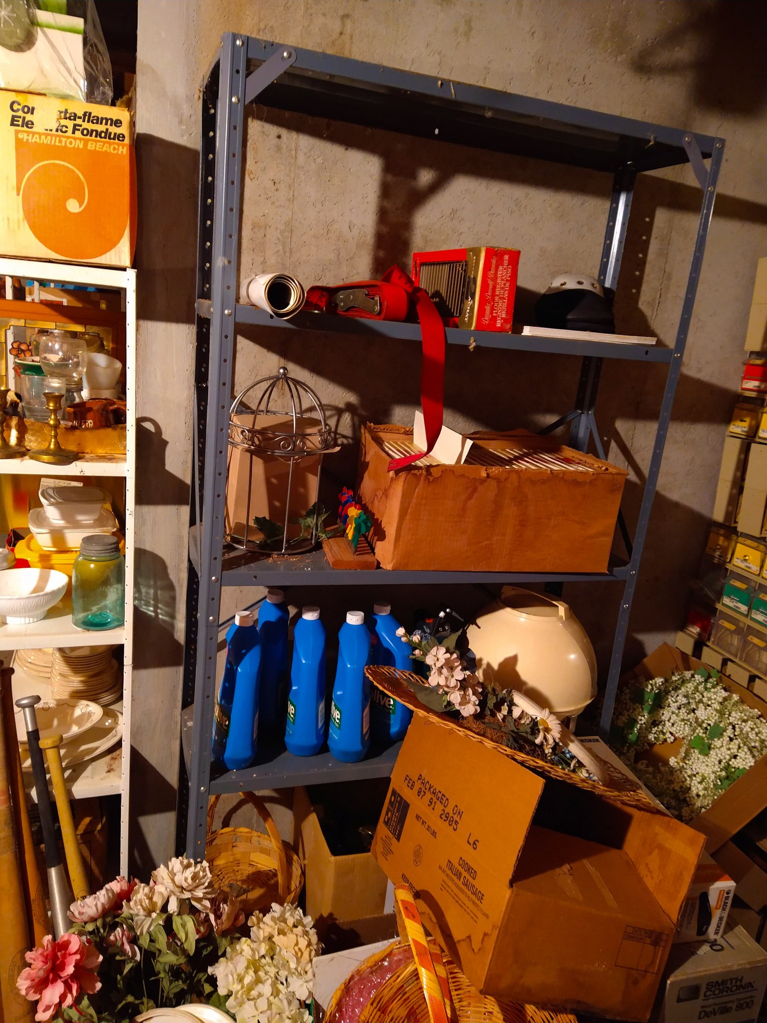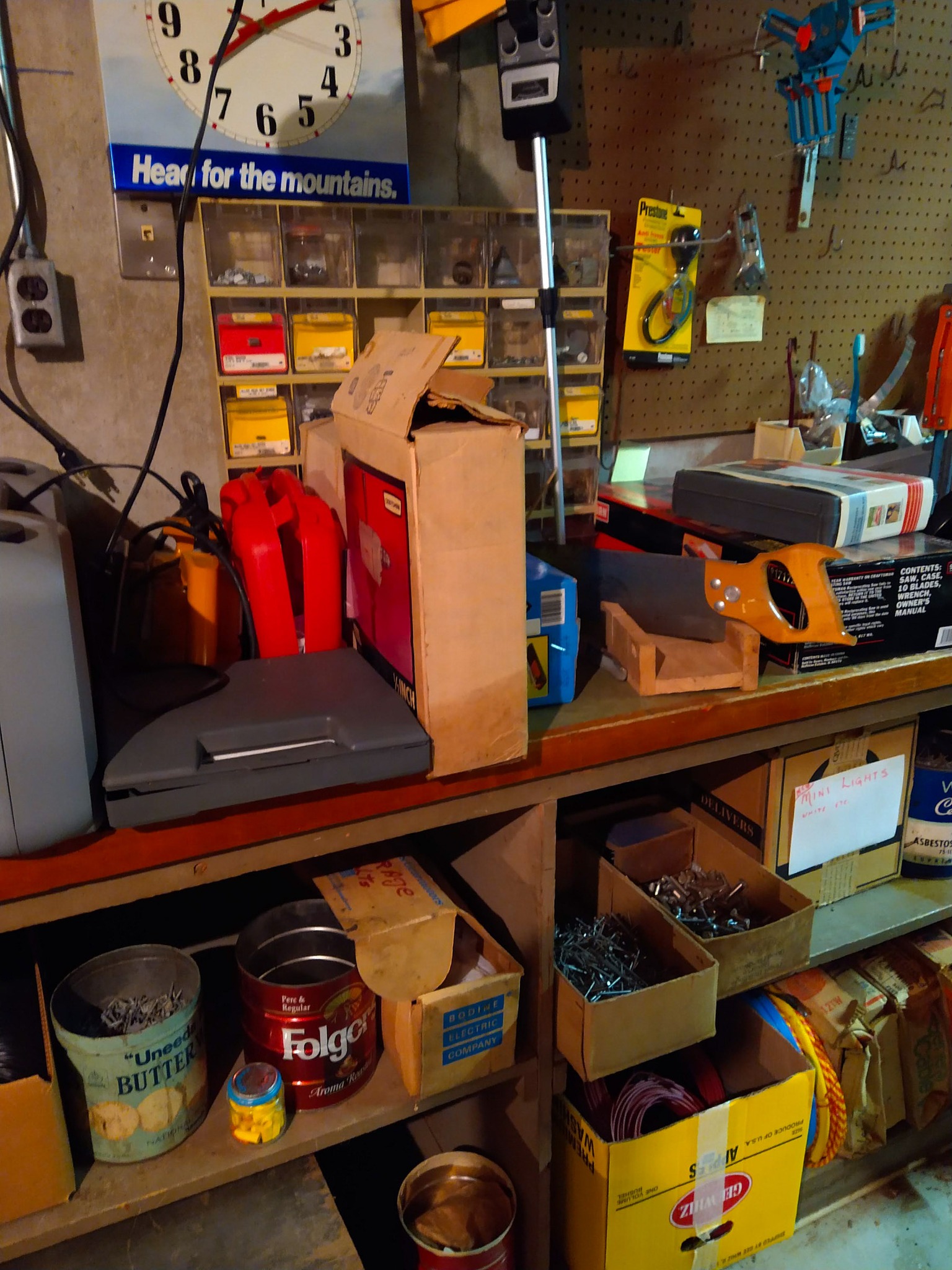 MISCELLANEOUS: ARTIFICIAL TREES – HANGING LEAD GL PIECE 3 FT X 20 IN – YARD STICKS – CASS TAPES – COLEMAN LANTERN – MANY BOOKS – DVD'S – BIRD CAGE – CD'S – ELECT STAPLER – FIT NATION FOLDING EXERCISE BIKE – FANCY METAL FIRE PLACE FRONT – NEW 3 WAY STADIUM CUSHIONS – CASS HOLDERS – MILLER DRAFT CLOCK – ARTIFICIAL XMAS TREES – 2 NEW BATTERY DADDY CASES – 3 HANDICAP ROLLER WALKERS – NEW MAGIC WAND PORT SCANNER – METAL MOP BUCKET & WRINGER – COSCO STOOL – LIKE NEW TERRASTAR TREADMILL – TAIL WIND EXERCISE BIKE – NEW ADJ FRAME FOLDING CHAIR w/ CARRY BAG – NEW V TECH SMART SPELLER – LEGO'S – 4 DR METAL LEGAL FILE – BI FOLD LEAD GLASS PC – NEW PANASONIC ANSWERING MACHINE – NEW 9 IN LAMINATOR – NEW BINOCULARS – BRASS FIGURES & CANDLE HOLDERS – NEW SOLIDEX CAMCORDER WIRELESS MICROPHONE SYSTEM – WOOD CARD TABLE – PACKING BLANKETS – LUGGAGE – SEVERAL METAL SHELVES – LIGHTED XMAS ANGEL – NEW HAND CRANK SOLAR RADIO – NEW ANIMATED & ILLUMINATED XMAS CAROLER – NEW ANIMATED SCARE CROW – NEW 15 IN SANTA – NEW HOLIDAY PROJECTOR – SLED – WILSON BALL GLOVE – PUZZLES & BOARD GAMES – COLEMAN 2 GAL ICE JUG – WOOD LOUISVILLE SLUGGER BATS – SET HANDY MAN ENCYC – NEW ELECT DART BOARD – NEW PEERLESS TOLIET – 36 IN TRAMPOLINE – JC PENNEY 5 SP GIRLS BIKE – 12 FT X 12 FT SCREEN HOUSE – LARGE OFFERING NEW HARDWARE – LARGE ROLL 2 STRAND COVERED COPPER WIRE – MICRONTA #3001 METAL DETECTOR – NEW NAILS, BOLTS, BRASS FITTINGS – BOXES WRAPPED COPPER WIRE – 3 ROLL 600 VOLT COATED COPPER WIRE – NEW MAIL BOX – NEW CERAMIC TILE – ELECT WALL BOXES – HVY DUTY 6 & 7 TIER METAL SHELVES – SEVERAL HEAVY COPPER 12 FT TUBING – LOTS OF SCRAP COPPER – SUMP PUMP – GALV PIPE FITTINGS – WIRE BARREL – TOOL BOX w/ ELECT SWITCHES – 3 SETS PARTS OR HARDWARE ORGANIZERS, 90 UNITS EACH – BAGS WATER SOFTNER PELLETS – 20 IN X 48 IN 1 IN THICK MARBLE – NEW PET KENNEL 24L X 19 INW X19H – MANY UNLISTED ITEMS