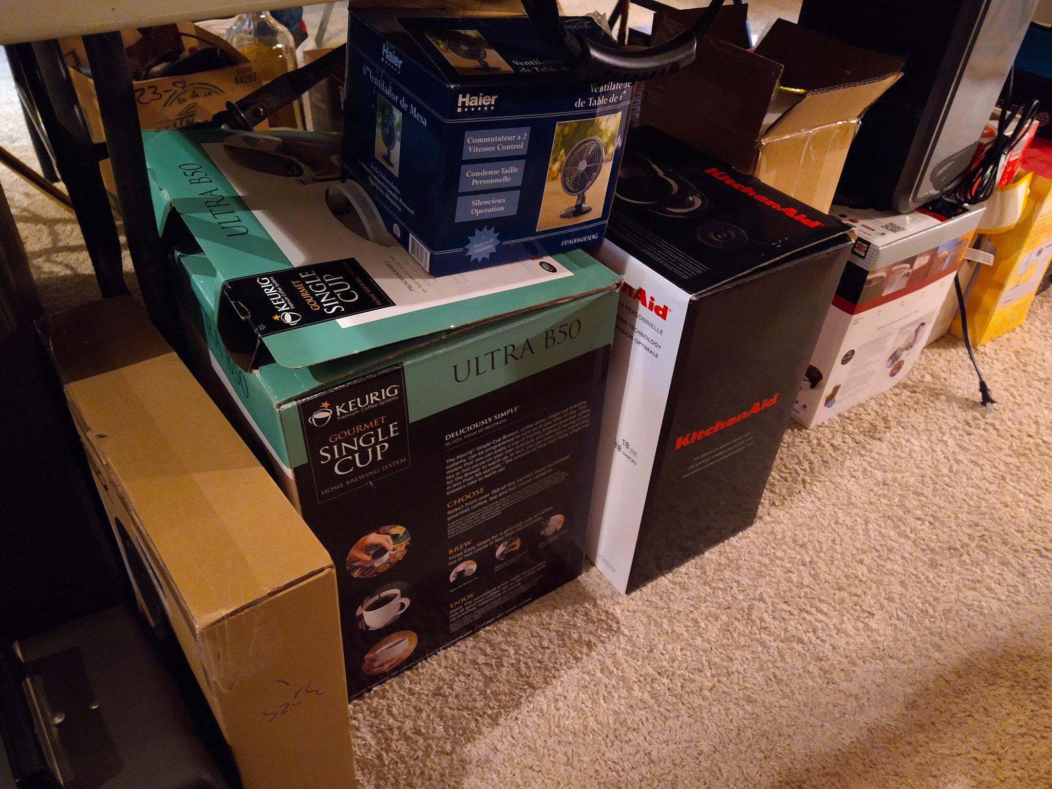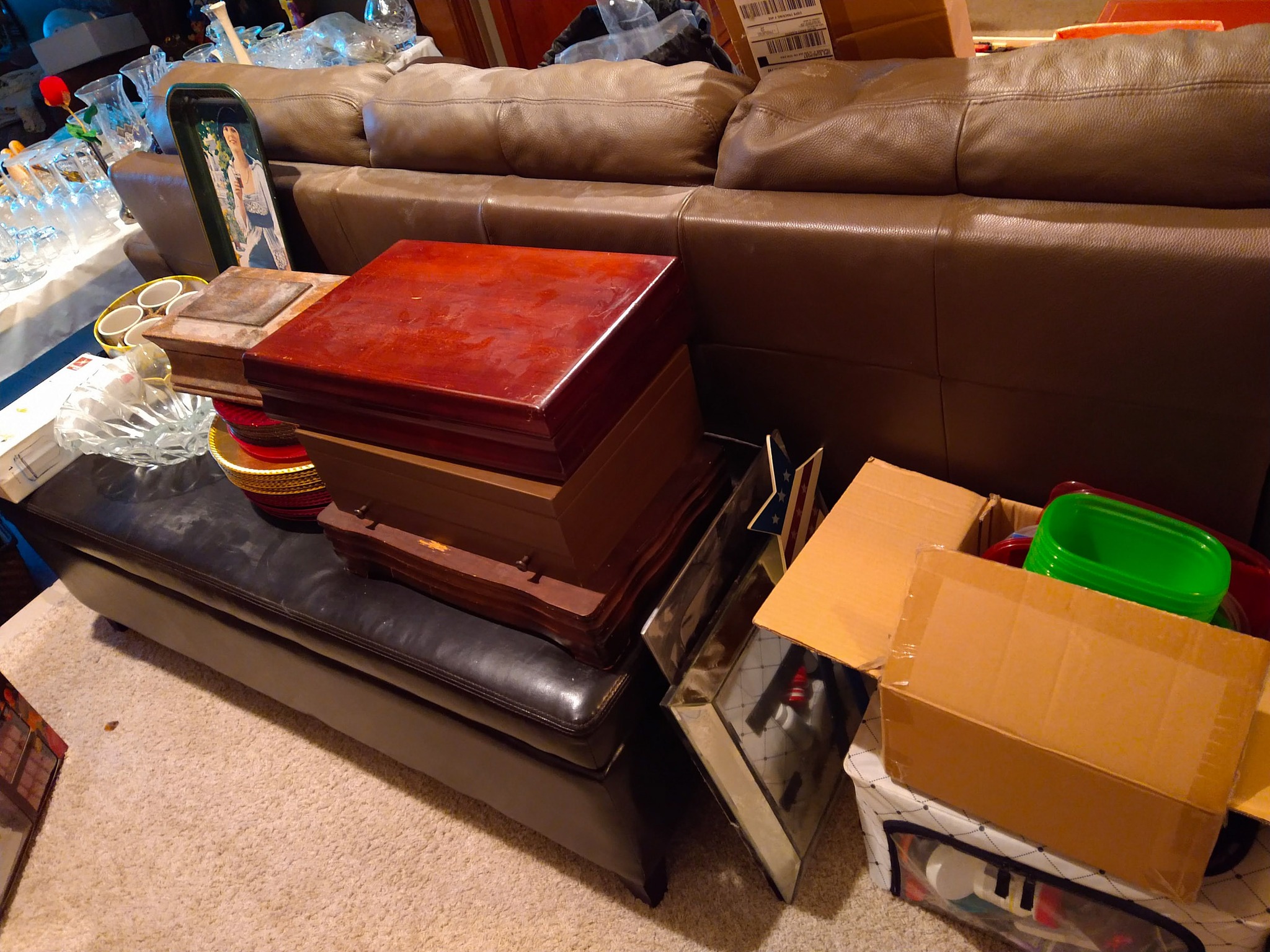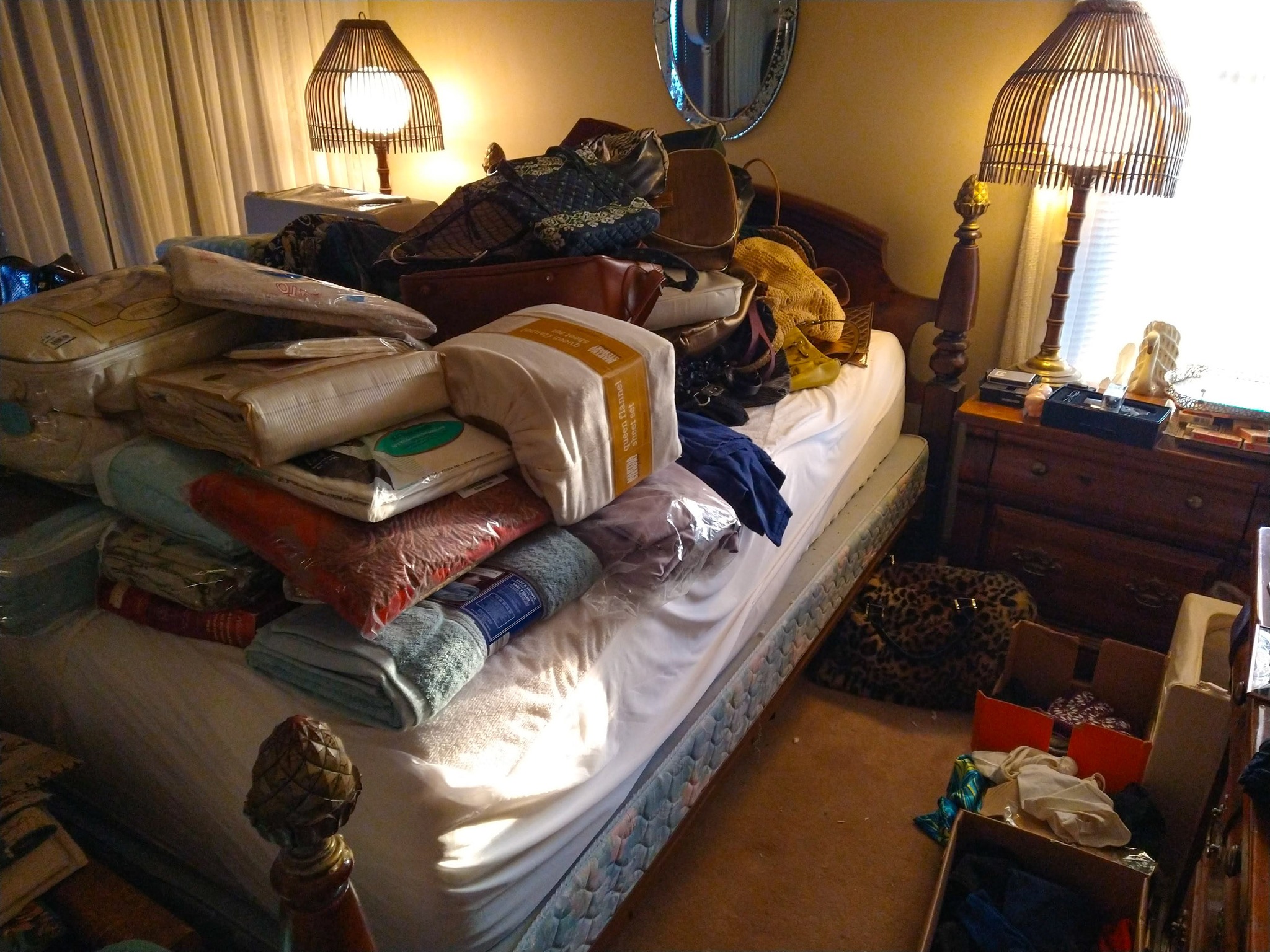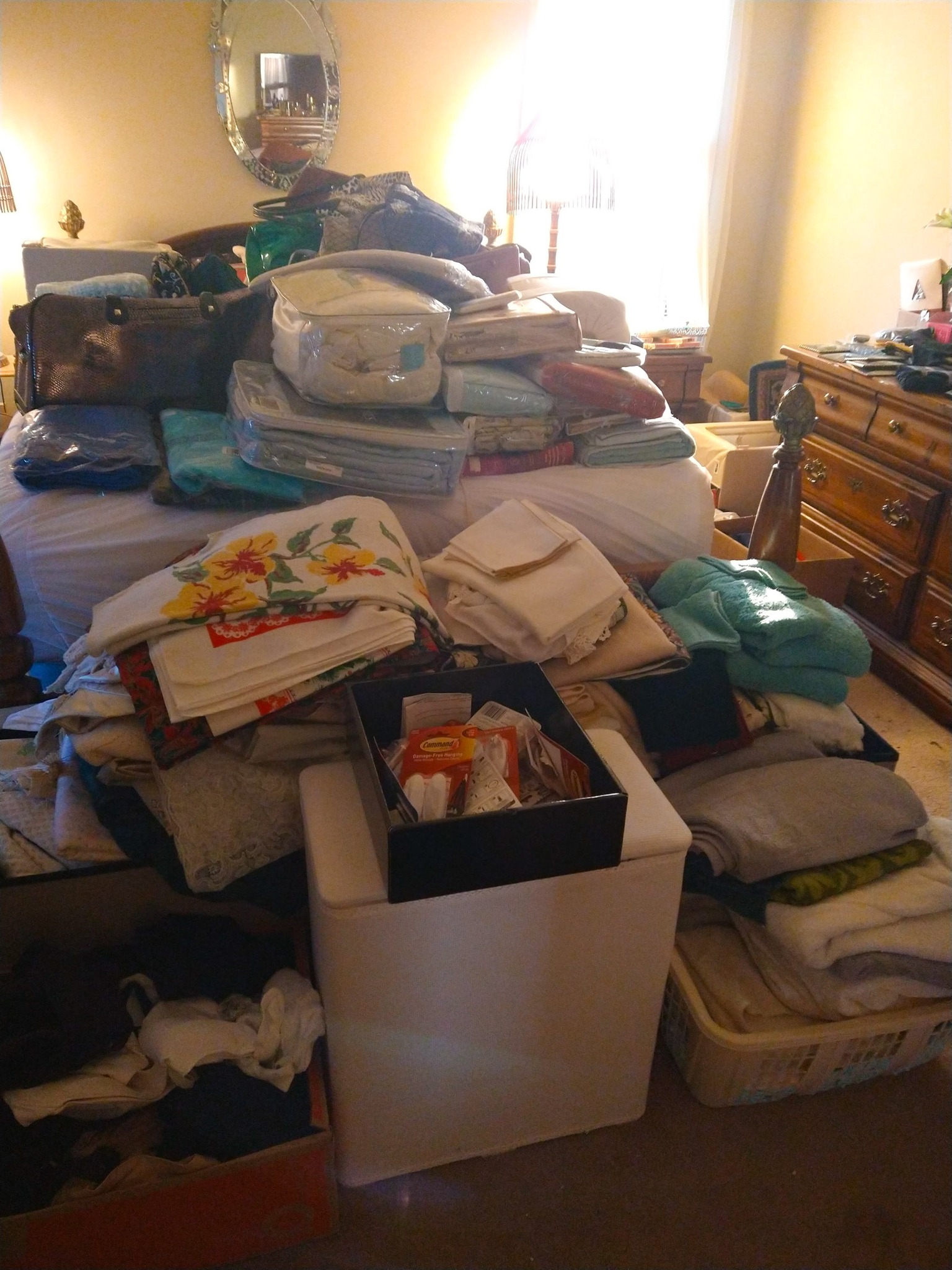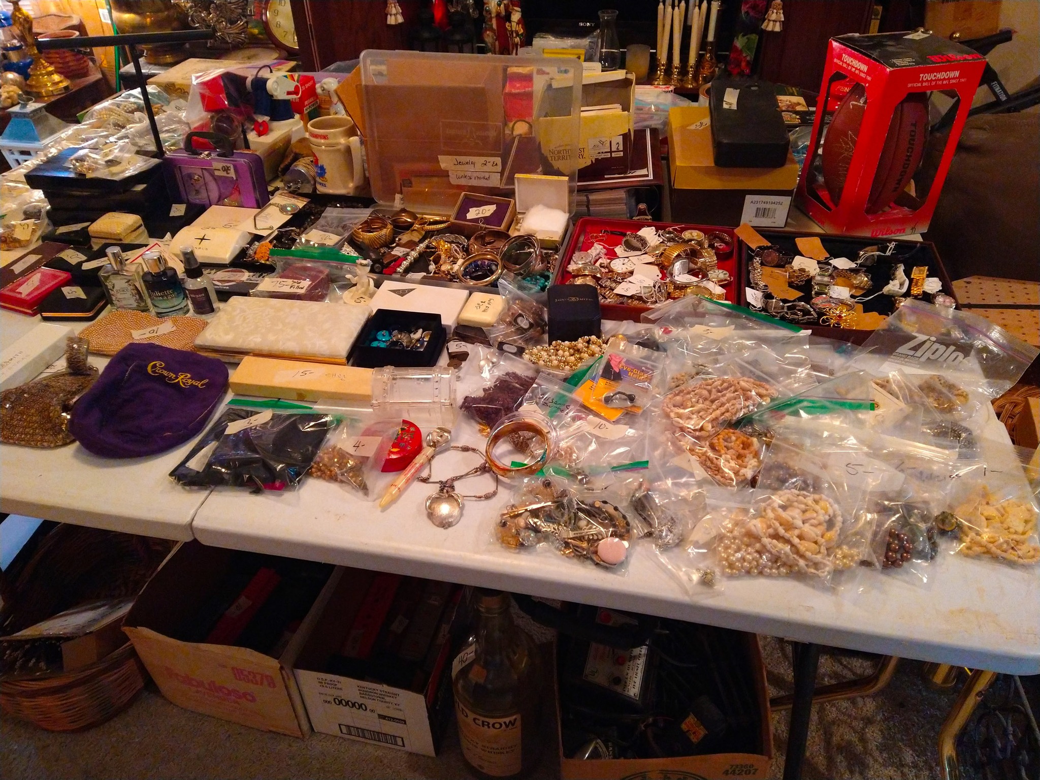 HOUSEHOLD: KEURIG COFFEE MAKER – KITCHEN AID PERSONAL COFFEE MAKER – NU WAVE 2 INDUCTION COOK TOP – NEW ESSENZA WAX WARMER – COOKS STAINLESS PAN w/ LID – CROCK POT – STAINLESS STOCK POT – NEW COVERED CASSEROLE – BLUE JEAN CHEF SET – CASSEROLE DISHES w/ LIDS – NEW ELECT SKILLET – REVERE STOCK POT – PRESSURE COOKER – CORNING CASSEROLES w/ LIDS – NEW SODA STREAM MACHINE & FLAVORS – GLASS ASH TRAYS – VERY LARGE OFFERING HOLIDAY DECORATIONS & WREATHS – 8 PL SET EKCO DISHES – BAROMETER – SNACK TRAYS – LARGE HAVILAND TRAY w/ 2 SERVING BOWLS – NATIVITY SET – NEW 47 PIECE STONEWARE HOLIDAY DISH SET – NEW SANTA COOKIE JAR – SIZE 10 WEDDING DRESS – SET 8 NEW CHAIR PADS – NEW TEA KETTLE – NEW BISCUIT JAR – REED & BARTON BELLS – CHILDRENS BOOKS – FIRE PROOF LOCK BOX w/ KEY – PEDESTAL CAKE PLATE – BALL TEA PITCHER – ALUM ROASTERS – CANNING JARS – HB ELECT FONDUE POT – MILK GLASS – NEW WEAREVER ELECT WOK – VERY LARGE OFFERING WOMENS CLOTHES, JACKETS, COATS, SHOES, MANY NEW w/ ORIG TAGS – MANY VASES w/ ART FLOWERS – SEWING BOX – LARGE OFFERING PURSES – BATH & HAND TOWELS – LINEN TABLE CLOTHS, RUNNERS, PLACEMATS & DOILIES – BED SHEETS – NEW QUEEN FLANNEL SHEET SET – NEW JAYHAWKS THROW – NEW TABLE CLOTHS & RUNNERS – NEW FULL & QUEEN SHEETS – NEW CURTAIN PANELS – NEW PILLOW CASES – NEW TOWEL SETS – NEW DOWN BLANKET – NEW QUEEN QUILT SET – AREA RUGS – LADIES SCARVES – FIGURINES – 2 CLOTHES RACKS ON ROLLERS – NEW DOWN COMFORTER – BED & THROW PILLOWS – AFGHANS – BLANKETS – FOLDING STEP STOOL – NEW PIZZELE & COOKIE MAKER – LARGE METAL WALL PLATE – HAGAR VASE w/ ART FLOWERS – 12 PL SET NOBLE EXE PLATES – SEA SHELLS – 3 ALABASTER BALLET DANCERS – SAND MAN FIGURES – TODD ENG TITAN PAN SET w/ LIDS – VISION WARE PAN SET w/ LIDS – COPPER CHEF PAN SET w/ LIDS – SUNBEAM DEEP FRYER – WEST BEND SLOW COOKER – REVERE PANS & LIDS – CORNING CASSEROLES w/ LIDS – FIRE KING BOWL SET – VISION WARE SOUP BOWLS – PYREX BOWLS w/ LIDS – CRYSTAL STEMWARE – MUGS, DRINK & TEA GLASSES – WHITE COFFEE MAKER – CUISINART SKILLET w/ LID – CROCK COOKIE JAR – BAKING PANS – SUNBEAM OSKAR – SUNBEAM MIXMASTER w/ BOWLS & BOOK – OSTER BLENDER – GE PORT MIXER – GLASS CASS PANS – CUTTING BOARDS – BUTCHER KNIVES – 8 PL SET NORITAKE, THULE CHINA w/ SERVERS – KITCHEN UTENSILS – GLASS REFRIGATOR DISH w/ LID – CORELLE DISHES – STRAWBERRY COOKIE JAR – NOBLE EXCELLENCE GRAPE PATTERN, CANNISTER SET, PITCHER & OTHER PCS – 8 PL SET ONEIDA FLATWARE – HANGING PLATE HOLDER w/ PLATES – O CEDAR MOP & BUCKET – B& D ROYAL PAPER SHREDDER – TODD PRESSURE COOKER – CUT CRYSTAL STEMWARE – SET LENOX FLUTES – NICE 12 PL SET NORITAKE #5520 CHINA w/ SERVERS – NICE CUT GLASS CRYSTAL PITCHER – SILVER PLATE SERVERS – ORIENTAL BOOK ENDS – NEW B&D HANDY MIXER – NEW BLOOD PRESSURE MONITOR – LACQURD TRAYS – EGG PLATES – GLASS DECANTERS – CORN TRAYS – SET LG AMBER PLATES – HAMILTON QUARTZ CLOCK – LENOX HARVEST ANGEL FIGURE – PARTIAL SET REED & BARTON SP FLATWARE w/ CHEST – ROGERS BROS 8 PL SET S.P. FLATWARE w/ CHEST – COMMUNITY 8 PL SET S.P. FLATWARE w/ CHEST – LARGE PLANT VASE w/ FOOTED STAND – WILLOW TREE COMFORT FIGURE - SNOW GLOBE - & MUCH MORE