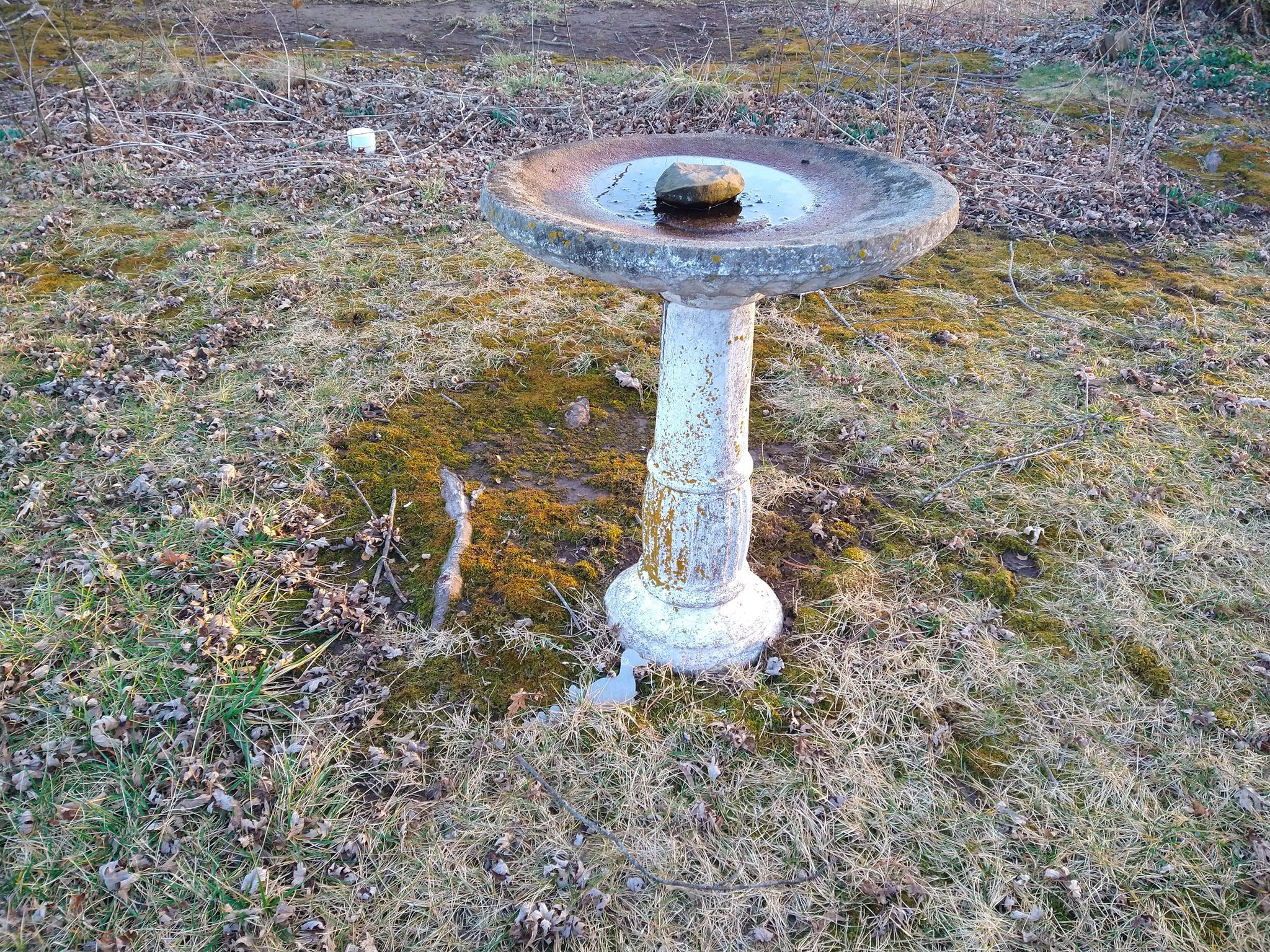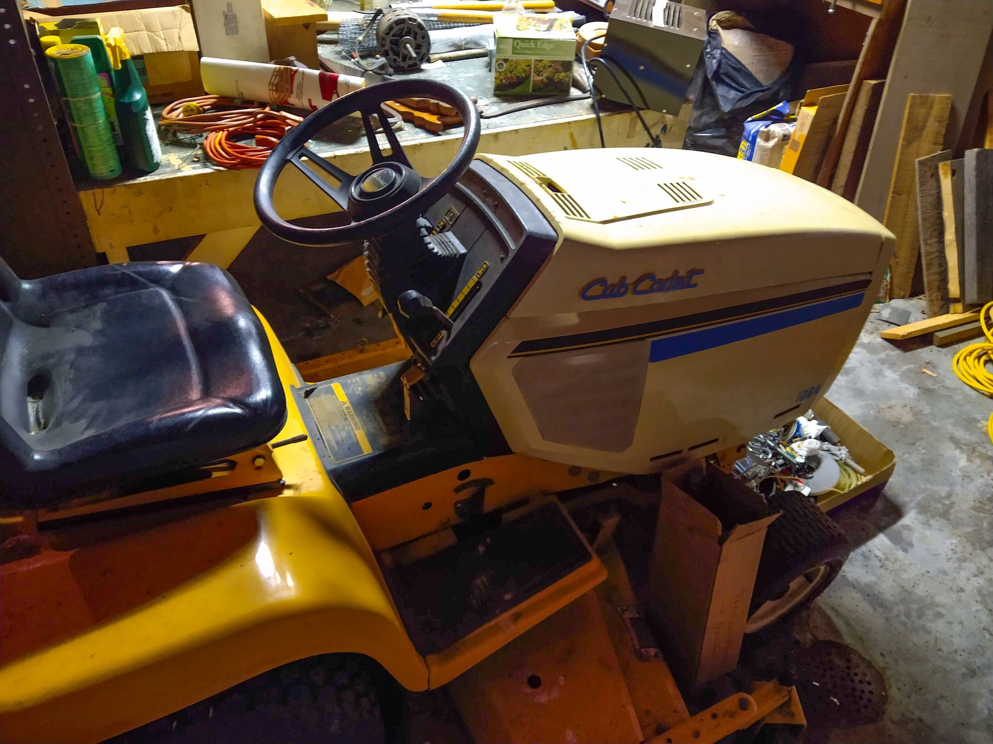 LAWN & PATIO: CUB CADET # 1864 RIDING MOWER w/ 54 IN MOWER DECK – RED GLAZING BALL w/ STAND – CEMENT FOUNTAIN & STATUE – CEMENT TABLE – 2 CEMENT BENCHES – 2 LARGE CEMENT PLANTERS – IRON PATIO BENCH – IRON PATIO TABLE w/ GLASS TOP, 4 CHAIRS & UMBRELLA – WOOD PICNIC TABLE w/ METAL BASE – BIRD BATH – METAL WELCOME SIGN – METAL FRAME & WOOD PATIO BENCH – 2 WHEEL DUMP YARD CART – WIND CHIMES – NEW GAL WEED & GRASS KILLER – BIRD HOUSES & FEEDERS – FOLDING YARD CHAIRS – NEW GOLF GAZING BALL – PATIO CUSHIONS – IRON PATIO SUN DIAL – RED DEVIL PUSH SPREADER – NEW MOLE TRAPS – NEW GEO FOREMAN ELECT INDOOR & OUTDOOR GRILL – MASTER BUILT IN DOOR & OUTDOOR ELECT GRILL – WEED EATER GAS BLOWER – PRUNERS – NEW WORX 20 V HYDRO SHOT CLEANER – NEW WORX 20 V BLOWER – HANDCRANK SEEDER – RAKES – EDGER – HOES – 4 BOXES DECORATIVE BRICK – 2 BOXES FAKE ROCKS – B&D ELECT HEDGE TRIMMER – YARD MACHINE 15 IN GAS STRING TRIMMER – WEED EATER 17 IN FEATHERLITE GAS TRIMMER – WORX ELECT BLOWER / VAC – WEED EATER POWER EDGE GAS TRIMMER – LARGE GAZING BALL – GARDEN MARK RUBBER TIRE WHEEL BARROW – EAGER BEAVER ELECT BLOWER – 36 IN YARD ROLLER – BUG ZAPPER - OUTSIDE LIGHTS – NEW GREEN GAZING BALL – CRAFTSMAN ELECT EDGER TRIMMER – B& D ELECT HEDGE TRIMMER –