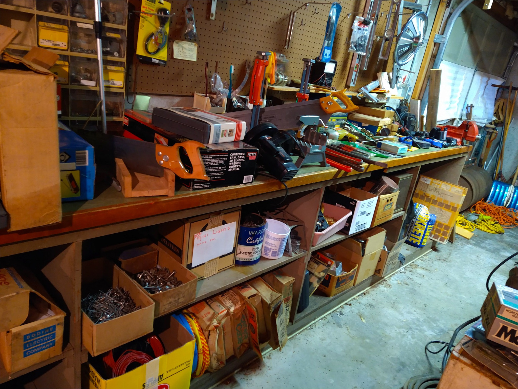 HAND & POWER TOOLS: 6 & 8 FT STEP LADDERS – NEW WORX 20 V ADJ POLE & CHAIN SAW – SET BOOSTER CABLES – ELECT POWER WASHER – RIGID 4 GAL PORT SHOP VAC – 2 WHEEL DOLLY – CLAW HAMMERS – PLIERS – MEASURE TAPES – POST HOLE AUGER – SHOVELS – SCRAPER – SPADE – SNOW SHOVELS – EXT CORDS – 28 FT METAL EXT LADDER – NEW 8 FT X 10 FT TARP – 12 VOLT 220 PSI PORT AIR COMP – 10 FT WOOD EXT LADDER – 3 FT STEP LADDER – CREEPER – B&D WORKMATE – METAL TOOL BOXES w/ TRAYS – NEW CRAFTSMAN RECIPROCATING SAW – FLUKE 77 MULTI METER – NEW GE BATTERY CHARGER – NEW CRAFTSMAN 4 IN 1 LASER TRAC LEVEL – NEW 75TH ANNIV RECIP SAW w/ CASE – NEW VISE GRIPS – NEW CRAFTSMAN 16 PC DRILL & POWER SCREW DRIVER SET – 1 ½ IN CLAMP ON VISE – NEW WELLER ELECT SOLDER GUN – GRAFTSMAN ROTARY TOOL – NEW B&D BELT SANDER – CRAFTSMAN ½ IN ELECT DRILL – SEARS PORT JIG SAW – NEW 12 IN TILE CUTTER – MITER SAW – B&D 7 ¼ IN CIRCULAR SAW – LARGE SEARS MITER SAW & METAL GUIDE – RIGID 12,18 & 24 IN PIPE WRENCHES – RIGID ALUM PIPE WRENCH – NAIL BARS – POP RIVETER – B&D 3 / 8 IN MILWAUKEE 3 / 8 IN DRILL – CRAFTSMAN 8.4 V DRILL – 4 IN BENCH VISE – IDEAL FISH TAPE – NEW FILE GUIDE & FILES – NEW CRAFTSMAN CLENCH WRENCH SET – NEW CRAFTSMAN 7 PC ROUTER BIT SET – NEW C.P. AIR CUT OFF TOOL – NEW CRAFTSMAN AIR RATCHET – NEW C.H. AIR GRINDER – NEW IMPACT DRIVER – WIGGINTON AC&DC VOLT METER – 2 SETS ROBINSON AIR GAUGES – B&D STAPLER – NEW SOLDER GUN – HAND SAWS – SLEDGES – SCOOP SHOVEL – 5 TINE FORK – WRECKING BARS – HATCHET – 2 NEW SELF IGNITING TORCH LIGHTS – BAR CLAMPS – SEARS 30 AMP BATTERY CHARGER – ADJ EXT ROLLER – NEW CRAFTSMAN 20 PC SCREWDRIVER SET –