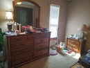 APPLIANCES & FURNITURE: CLEAN STAINLESS TUB WASHER & MATCHING ELECT DRYER – SHARK ROCKET VACCUM – BISSEL LITTLE GREEN CARPET CLEANER – BIGIO 21 IN TV w/ REMOTE – SMALL BAR w/ FOLDING TOP & FRONT – 61 IN X 86 IN CARPET – NICE MILLENNIUM BUFFET – NICE LEGACY CLASSIC DINING TABLE w/ 6 CHAIRS – CLEAN BROYHILL OVERSTUFF CHAIR – NICE LEATHER DOUBLE RECLINER w/ CONSOLE – SOUND DESIGN STEREO RECIEVER w/ EQUALIZER, DBL CASS & REMOTE – RCA 5 CD CHANGER w/ REMOTE – SETS ADVENT & ZENITH SPEAKERS – 4 SHELF BOOKCASE – GLASS FRONT CABINET – TV STAND – 2 WHITE LAMP TABLES – ELECT FIREPLACE HEATER – LAMP TABLE ON ROLLERS – VICKS HUMIDIFIER – FIRE PLACE TOOL SET – ELECT HEATER – LG SURROUND SOUND – SMOKING STAND w/ COPPER INSET – NICE DROP LEAF WOOD TABLE & 2 LEAVES – NICE 90 IN X 120 IN CARPET – PAPER SHREDDERS – LASKO HEATER – ELECT FAN – FLOOR LAMP – SHOWER CHAIR – ICE CHEST LAMP TABLE – DESK LAMP – HP SPEAKERS – HP OFFICE JET PRO 8710 PRINTER COPIER – 4 DRAWER EXECUTIVE DESK – 2 SWIVEL BAR STOOLS – ADJ EXECUTIVE OFFICE CHAIR – 4 DRAWER METAL FILE – SCEPTRE MONITOR, DELL TOWER, KEYBOARD & MOUSE – SET TABLE LAMPS – 2 DRAWER LAMP TABLE – FULL SIZE BED, BXSPGS, SEALY MATT – 8 DRAWER DRESSER w/ MIRROR – 5 DRAWER CHEST – PICTURES & FRAMES – TOUCH LAMP – SEWING BASKET – BATH CHAIR – CLEAN STANLEY FULL BEDROOM SUITE, BED, BXSPGS, MATT w/ 7 DRAWER DRESSER, 2 DR LAMP TABLE – HALL TABLE w/ 2 DRAWERS – WING BACK ARM CHAIR – FANCY LAMP – BEVEL GLASS LAMP TABLE & ROUND COFFEE TABLE – WALL MIRROR – NICE 3 CUSHION LEATHER SOFA – SAMSUNG 38 IN TV & REMOTE – 3 DR LAMP TABLE & CHEST – FULL SIZE STANLEY BED w/ BED FRAME & 9 DRAWER DRESSER – FOLDING TOP WRITING DESK