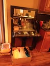 MISCELLANEOUS: VEGA SHOULDER HOLSTER & CLIP POUCH - 2 PROPANE TANKS – GAS CANS – TARP – BIRD HOUSES – PLASTIC FENCING – KILZ PAINT – PET CAGE – SET 4 LB HAND WEIGHTS – MENS WORK BOOTS – LADIES BOOTS – WESTERN HATS – THE DEVIL HALOWEEN COSTUME – MENS COATS – BELTS – TIES – MANY MENS SHOES – FOLDING WALKER – CANON SURESHOT CAMERA – LUGGAGE – PET TAXI – WREATHS – COLEMAN 2 BURNER CAMP STOVE – COLEMAN SLEEP BAG – METAL SHELVES – COLEMAN ELECT AIR PUMP – CLEAN JAY UNION QUICKIE WHEEL CHAIR & ACCY – ICE CHESTS – SET INSULATED MENS LARGE COVERALLS – GOLF GUARD HARD CASE FOR BAG – HAND BARBELLS 10 LB & 30 LB – METAL CABINET, 2 DRAWER & 2 DOORS – 2 FT X 4 FT HEAVY DUTY METAL SHELF – GALLONS & QUARTS PAINT – 1 GAL KILZ PRIMER – 1 GAL EPOXY PAINT – HARDWARE ORGANIZER – PLANO MINNOW BUCKET – CD'S – CASS – XMAS DECORATIONS – QUIK NET MULTI SPORT UTILITY NET – NEW 30 IN DOOR & FRAME – NEW 24 IN DOOR & FRAME – SET METAL CRUTCHES