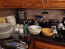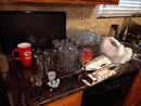 HOUSEHOLD: POTTED PLANTS – LADIES PURSES, CLOTHES & SHOES – BLANKETS – BED SHEETS – PLACEMATS – COOKBOOKS – VASES – BED & THROW PILLOWS – BUTTONS – BATH & HAND TOWELS – WASH CLOTHS – SHOE RACK – ADJ HEIGHT BATH TUB RAIL – BASKETS – ONEIDA BAKING PAN – KITCHEN AID MIXER & STAINLESS BOWL – ELECT KNIFE – TUPPERWARE – PATTERN GLASS BOWLS & DISHES – ELECT GRILL – HOLIDAY TRADITION PLATES – SERVING TRAYS – BEER GLASSES & MUGS – FLASK – CORK SREW – BAKING PANS – BUNT CAKE PAN – LOAF PANS – CORNING WARE – GLASS PIE PLATES – CORNING PIE PLATES – LECREUSET CASSEROLES – PYREX CASSEROLES – STAINLESS FLATWARE – MR COFFEE MAKER – HB HAND MIXER – DRINK GLASSES – KITCHEN UTENSILS – NINJA AIR FRYER – 8 PL SET ELLEN DEGENERES CHINA BY ROYAL DOULTON – B&D TOASTER – HB CAN OPENER – OSTER BLENDER – WARING PRO WAFFLE MAKER – PYREX MIXING BOWL SET – CIRCUION PAN SET & SKILLET – COVERED SKILLET & PAN – EGG POACHER – SQUARE RED COPPER PAN w/ LID – METAL ROLLING PIN – LODGE 12 IN CAST IRON SKILLET – PYREX CROCK POT – HB IRON – STEP TRASH CAN – CLOTHES HAMPER – WOOD IRON BOARD –