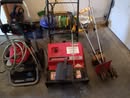 LARGE OFFERING QUALITY HAND & POWER TOOLS: SQUARES – LEVELS – HAMMERS – CROW BARS – HAND SAWS – FOLDING SAW HORSES – RAKES – EXT CORDS – HOES – SHOVELS – SNOW SHOVEL – 5 TINE FORK – SPLIT MAUL & WEDGE – SLEDGE HAMMER – RUBBER TIRE WHEEL BARROW – LITTLE GIANT FOLDING 20 FT EXT LADDER w/ PAINT WING SPAN – MAKITA PALM SANDER – B&D PORT JIG SAW – RIGID ORBIT SANDER w/ CASE – B&D 5 / 8 HP ROUTER – SKIL ½ IN DRILL – B&D ELECT STAPLER – RYOBI 4 VOLT DRILL w/ BATT & CHARGER – WAGNER 300 HEAT GUN – RYOBI 59 PIECE DRILL SET – NEW CHICAGO ELECT OSCILLATING POWER TOOL – 7 ¼ IN SKIL CIRC SAW – SET DEWALT BITS – HI SPEED DRILL BITS – TEST RITE HVY DUTY BENCH GRINDER #119 – HVY DUTY KT BENCH VISE – VISE GRIPS – COMBINATION WRENCHES – METAL FRAME 32 IN X 83 IN, 2 IN WOOD TOP WORK BENCH – B&D BELT SANDER – ROCKFORD ½ IN IMPACT, 3 / 8 RATCHET, AIR HAMMER & ATTACHMENTS w/ CASE – DEWALT ANGLE GRINDER w/ CASE – DEWALT RECIP SAW w/ CASE – MAKITA 18 VOLT DRILL w/ BATTERY & CHARGER - TROUBLE LIGHT – CLEAN RYOBI 10 IN TABLE SAW ON STAND – CRAFTSMAN ALL IN ONE CUTTING TOOL – TOOL BOX – SHOP LIGHT – BAR CLAMPS – ADJ ROLL BAR BASE – RIGID 5 GAL SHOP VAC – EASY REACH GORILLA STEP LADDER – CRAFTSMAN 2 DRAWER ROLLAWAY BASE TOOL CHEST – SHOP HAMMER – SHOP BROOM – 6 FT METAL STEP LADDER – MECH CHOICE SHOP LIGHT – CLEAN DYNAMARK 3, 20 IN GAS SNOW BLOWER - HOMELITE POWER WASHER, GAS, 2700 PSI – EVER START BATT CHARGER, STARTER – MVP 10 IN ELECT POLISHER – BOSTITCH AIR NAILER 2 TO 3 ½ IN – CRAFTSMAN AIR FINISH NAILER, 16 GA – GREASE GUN – PIPE WRENCH – SET COMB WRENCHES – ½ IN DR METRIC DEEP SOCKETS – ADJ WRENCHES – RYOBI 10 IN COMPOUND SAW ON ADJ TABLE –