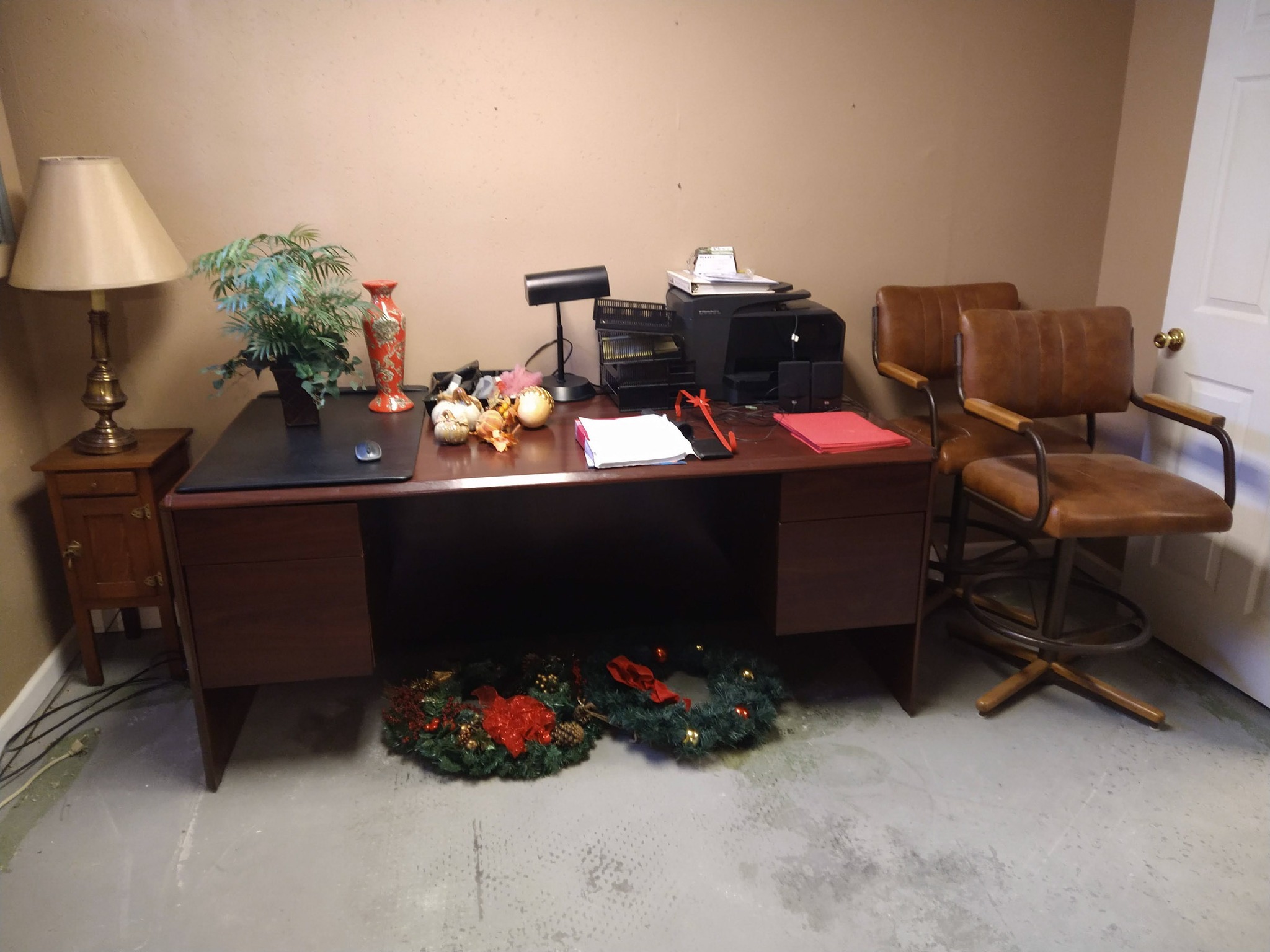 APPLIANCES & FURNITURE: CLEAN STAINLESS TUB WASHER & MATCHING ELECT DRYER – SHARK ROCKET VACCUM – BISSEL LITTLE GREEN CARPET CLEANER – BIGIO 21 IN TV w/ REMOTE – SMALL BAR w/ FOLDING TOP & FRONT – 61 IN X 86 IN CARPET – NICE MILLENNIUM BUFFET – NICE LEGACY CLASSIC DINING TABLE w/ 6 CHAIRS – CLEAN BROYHILL OVERSTUFF CHAIR – NICE LEATHER DOUBLE RECLINER w/ CONSOLE – SOUND DESIGN STEREO RECIEVER w/ EQUALIZER, DBL CASS & REMOTE – RCA 5 CD CHANGER w/ REMOTE – SETS ADVENT & ZENITH SPEAKERS – 4 SHELF BOOKCASE – GLASS FRONT CABINET – TV STAND – 2 WHITE LAMP TABLES – ELECT FIREPLACE HEATER – LAMP TABLE ON ROLLERS – VICKS HUMIDIFIER – FIRE PLACE TOOL SET – ELECT HEATER – LG SURROUND SOUND – SMOKING STAND w/ COPPER INSET – NICE DROP LEAF WOOD TABLE & 2 LEAVES – NICE 90 IN X 120 IN CARPET – PAPER SHREDDERS – LASKO HEATER – ELECT FAN – FLOOR LAMP – SHOWER CHAIR – ICE CHEST LAMP TABLE – DESK LAMP – HP SPEAKERS – HP OFFICE JET PRO 8710 PRINTER COPIER – 4 DRAWER EXECUTIVE DESK – 2 SWIVEL BAR STOOLS – ADJ EXECUTIVE OFFICE CHAIR – 4 DRAWER METAL FILE – SCEPTRE MONITOR, DELL TOWER, KEYBOARD & MOUSE – SET TABLE LAMPS – 2 DRAWER LAMP TABLE – FULL SIZE BED, BXSPGS, SEALY MATT – 8 DRAWER DRESSER w/ MIRROR – 5 DRAWER CHEST – PICTURES & FRAMES – TOUCH LAMP – SEWING BASKET – BATH CHAIR – CLEAN STANLEY FULL BEDROOM SUITE, BED, BXSPGS, MATT w/ 7 DRAWER DRESSER, 2 DR LAMP TABLE – HALL TABLE w/ 2 DRAWERS – WING BACK ARM CHAIR – FANCY LAMP – BEVEL GLASS LAMP TABLE & ROUND COFFEE TABLE – WALL MIRROR – NICE 3 CUSHION LEATHER SOFA – SAMSUNG 38 IN TV & REMOTE – 3 DR LAMP TABLE & CHEST – FULL SIZE STANLEY BED w/ BED FRAME & 9 DRAWER DRESSER – FOLDING TOP WRITING DESK