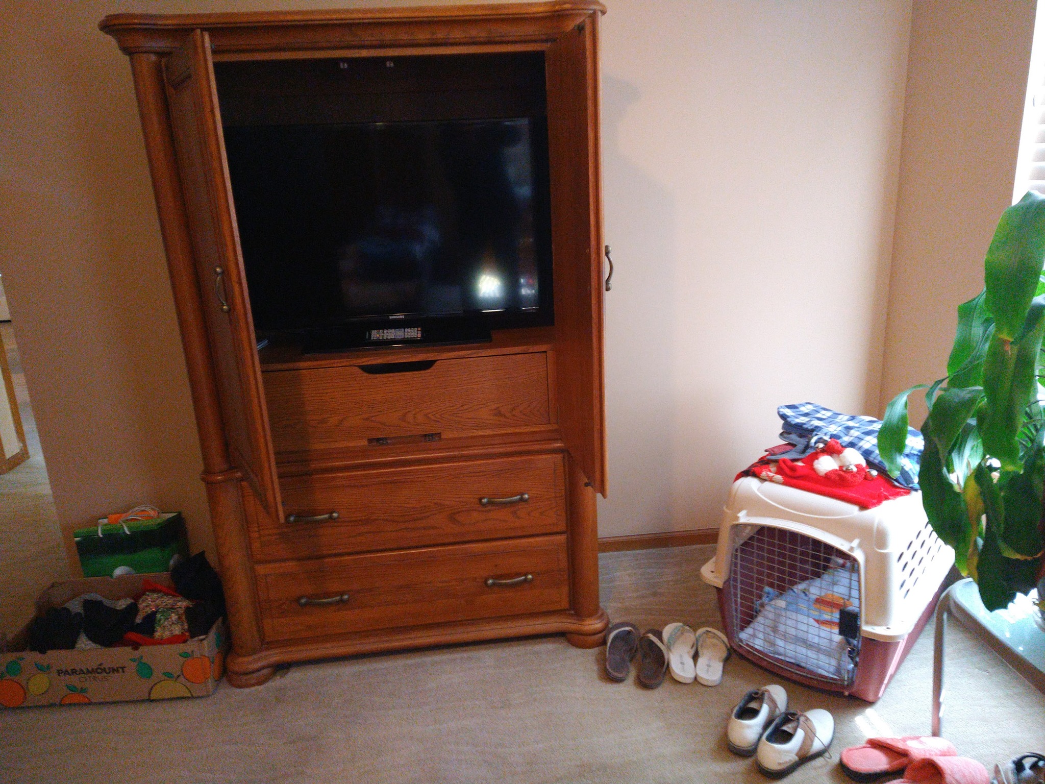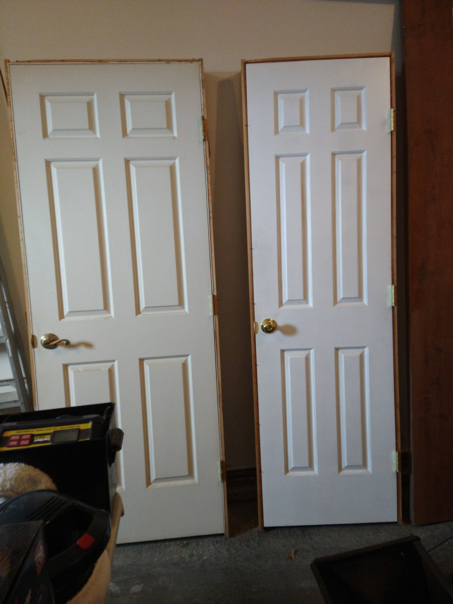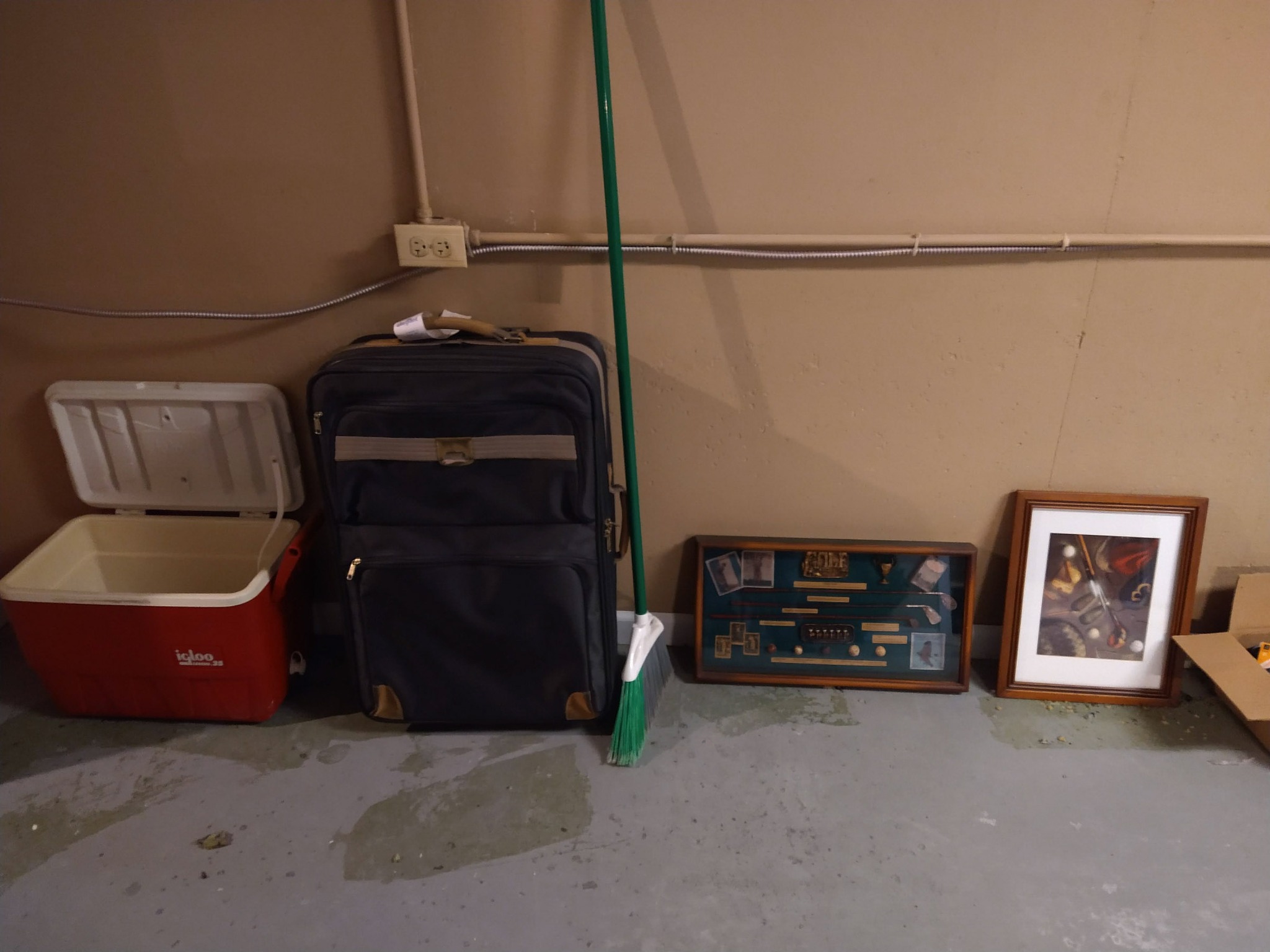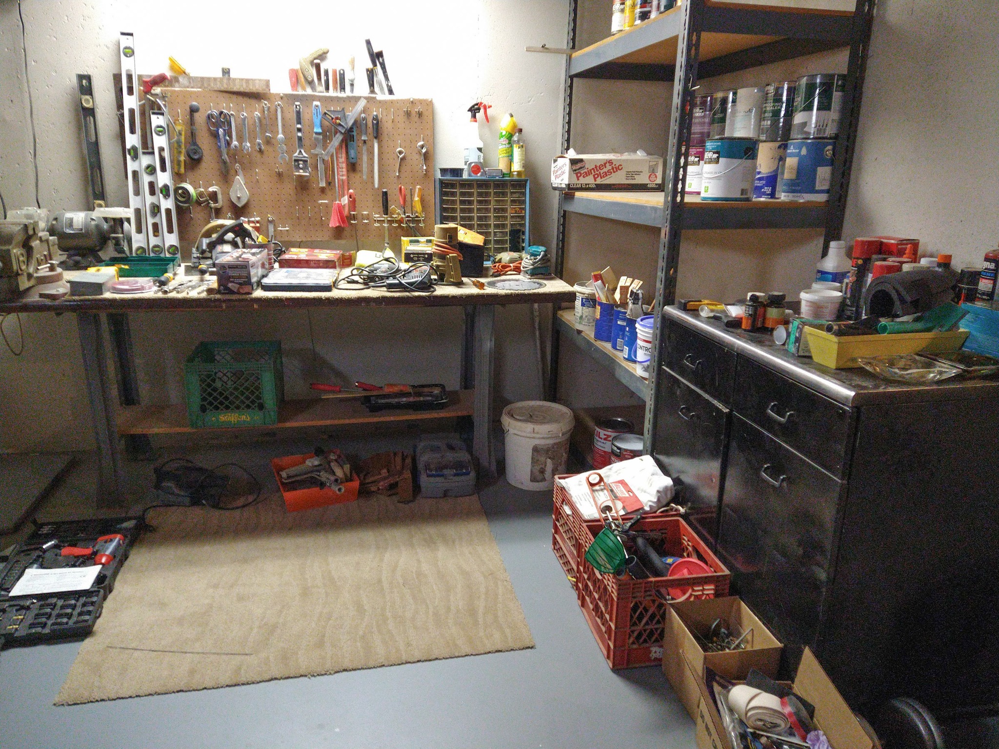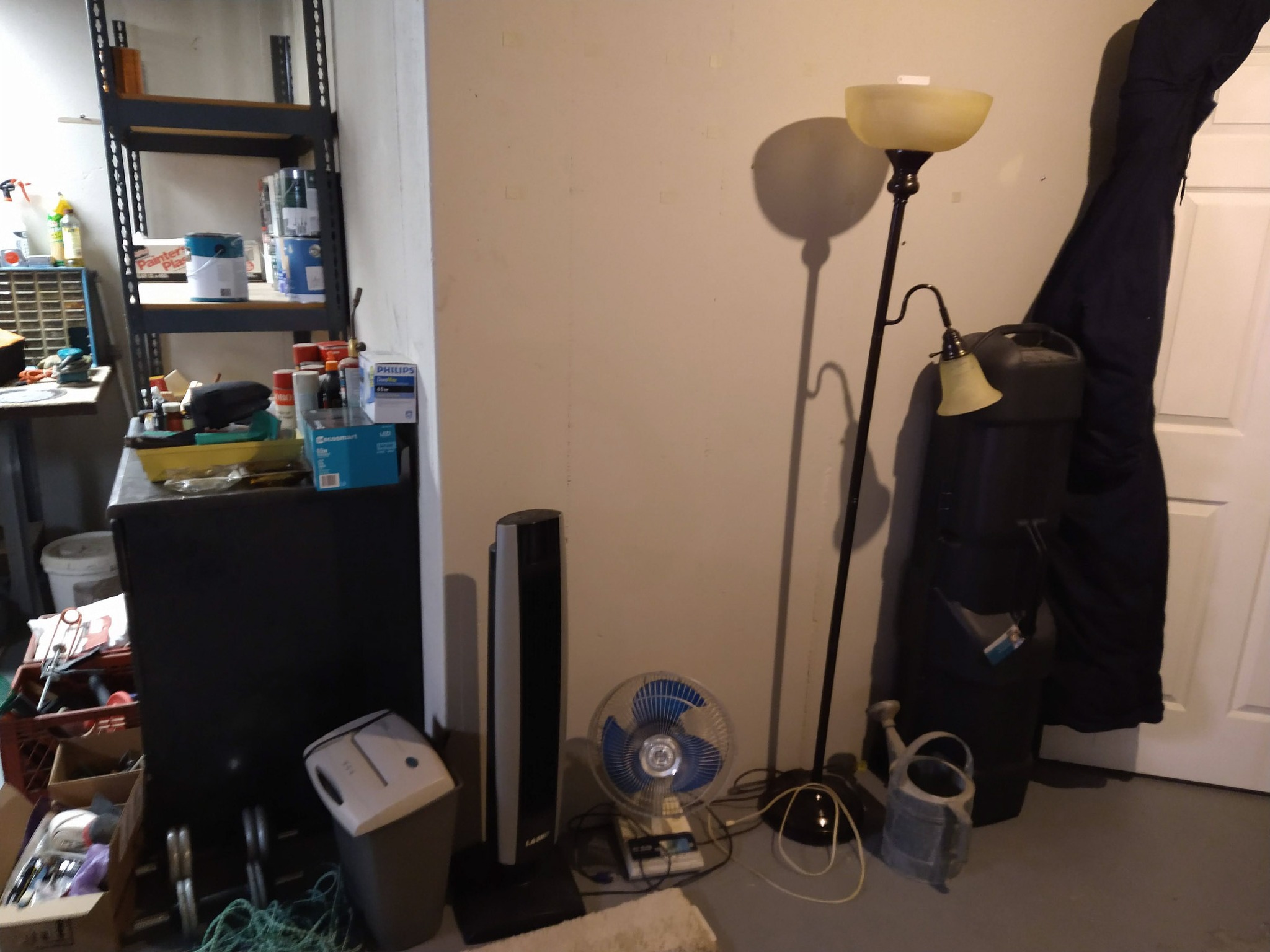 MISCELLANEOUS: VEGA SHOULDER HOLSTER & CLIP POUCH - 2 PROPANE TANKS – GAS CANS – TARP – BIRD HOUSES – PLASTIC FENCING – KILZ PAINT – PET CAGE – SET 4 LB HAND WEIGHTS – MENS WORK BOOTS – LADIES BOOTS – WESTERN HATS – THE DEVIL HALOWEEN COSTUME – MENS COATS – BELTS – TIES – MANY MENS SHOES – FOLDING WALKER – CANON SURESHOT CAMERA – LUGGAGE – PET TAXI – WREATHS – COLEMAN 2 BURNER CAMP STOVE – COLEMAN SLEEP BAG – METAL SHELVES – COLEMAN ELECT AIR PUMP – CLEAN JAY UNION QUICKIE WHEEL CHAIR & ACCY – ICE CHESTS – SET INSULATED MENS LARGE COVERALLS – GOLF GUARD HARD CASE FOR BAG – HAND BARBELLS 10 LB & 30 LB – METAL CABINET, 2 DRAWER & 2 DOORS – 2 FT X 4 FT HEAVY DUTY METAL SHELF – GALLONS & QUARTS PAINT – 1 GAL KILZ PRIMER – 1 GAL EPOXY PAINT – HARDWARE ORGANIZER – PLANO MINNOW BUCKET – CD'S – CASS – XMAS DECORATIONS – QUIK NET MULTI SPORT UTILITY NET – NEW 30 IN DOOR & FRAME – NEW 24 IN DOOR & FRAME – SET METAL CRUTCHES