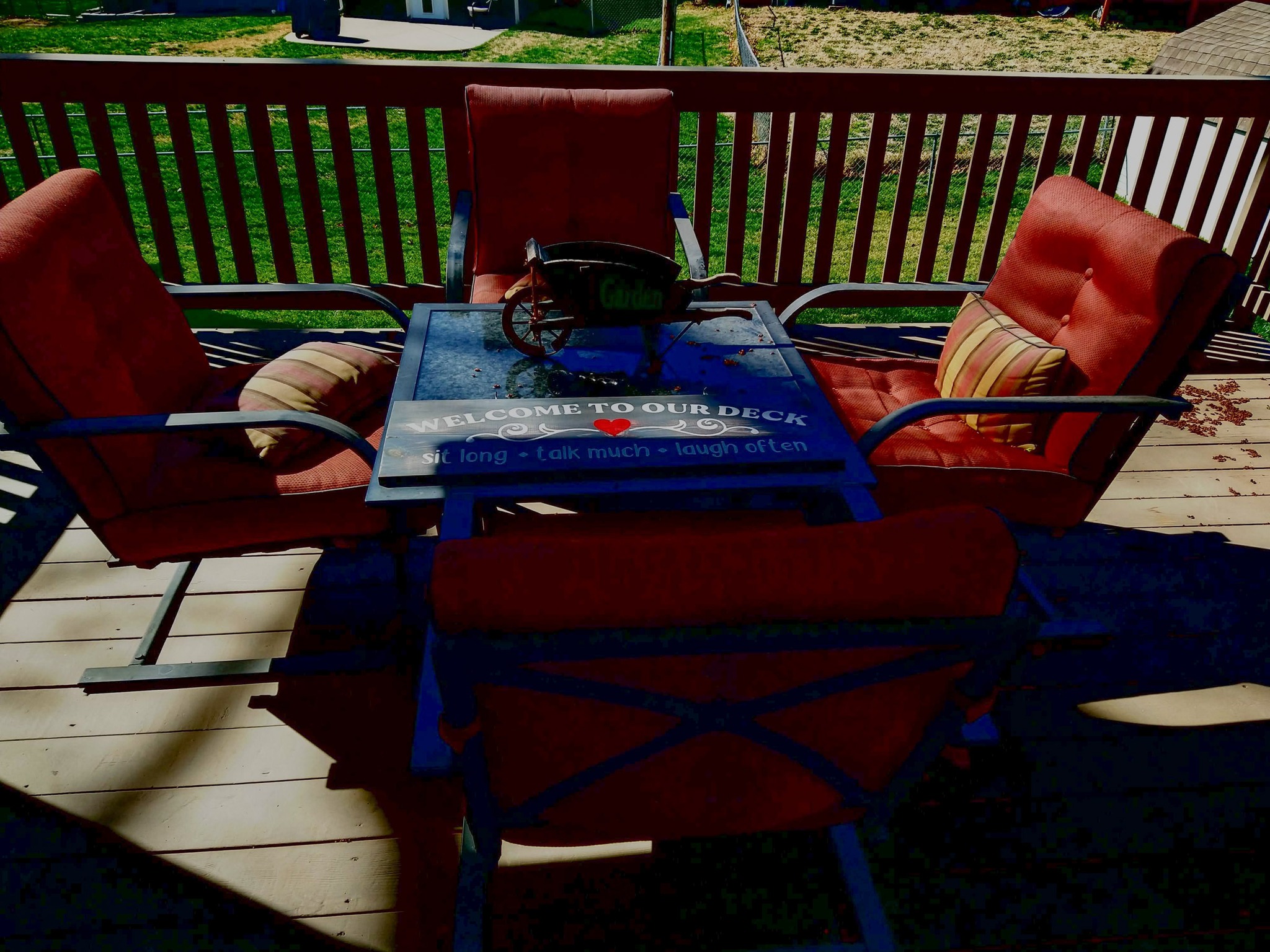LAWN & PATIO & YARD: WEEDEATER GAS FB25 BLOWER – TORO GAS STRING TRIMMER – STIHL FS45 GAS STRING TRIMMER – EXT HANDLE CHAIN DRIVE PRUNER – SCOTTS HAND SEEDER – CEMENT YARD ANIMALS – CEMENT PLANTERS – BIRDBATH – NICE CHAR BROIL GAS BBQ GRILL – WATER HOSE & ROLLER – PATIO UMBRELLA – METAL FRAME GLASS TOP PATIO TABLE w/ 4 PAD SEAT CHAIRS – PATIO CHAIRS – PLANTER STANDS – PRESSURE SPRAYER – B&D 22 IN HEDGE TRIMMER – YARD CHAIRS – BBQ PRO SMALL GRILL – MANTIS GAS ROTO TILLER – CLEAN TORO GAS RECYCLER, 22 IN SELF PROP MOWER w/ BAG – LIMB SAW – SCOTTS PUSH SEEDER, SPREADER –