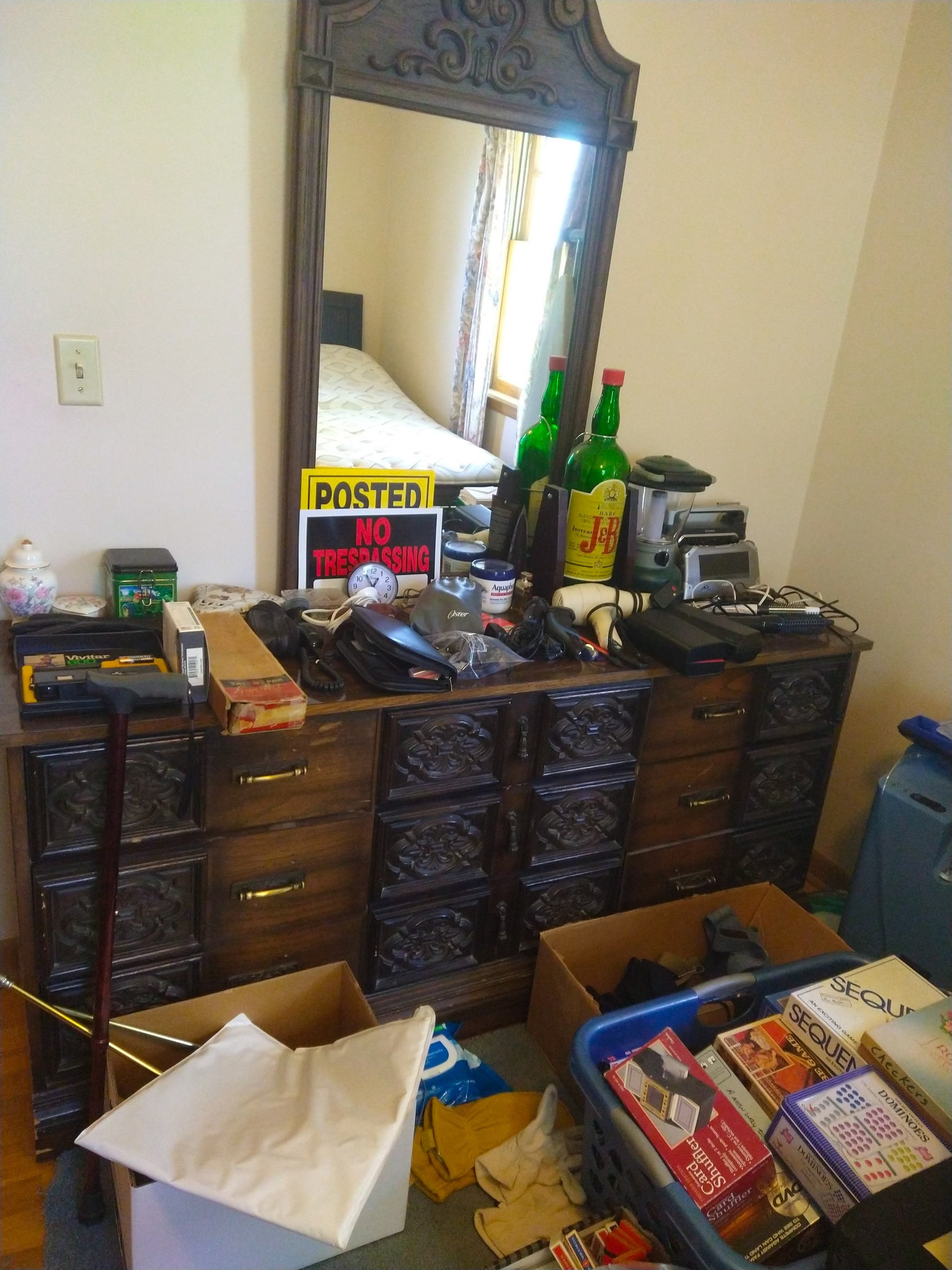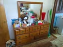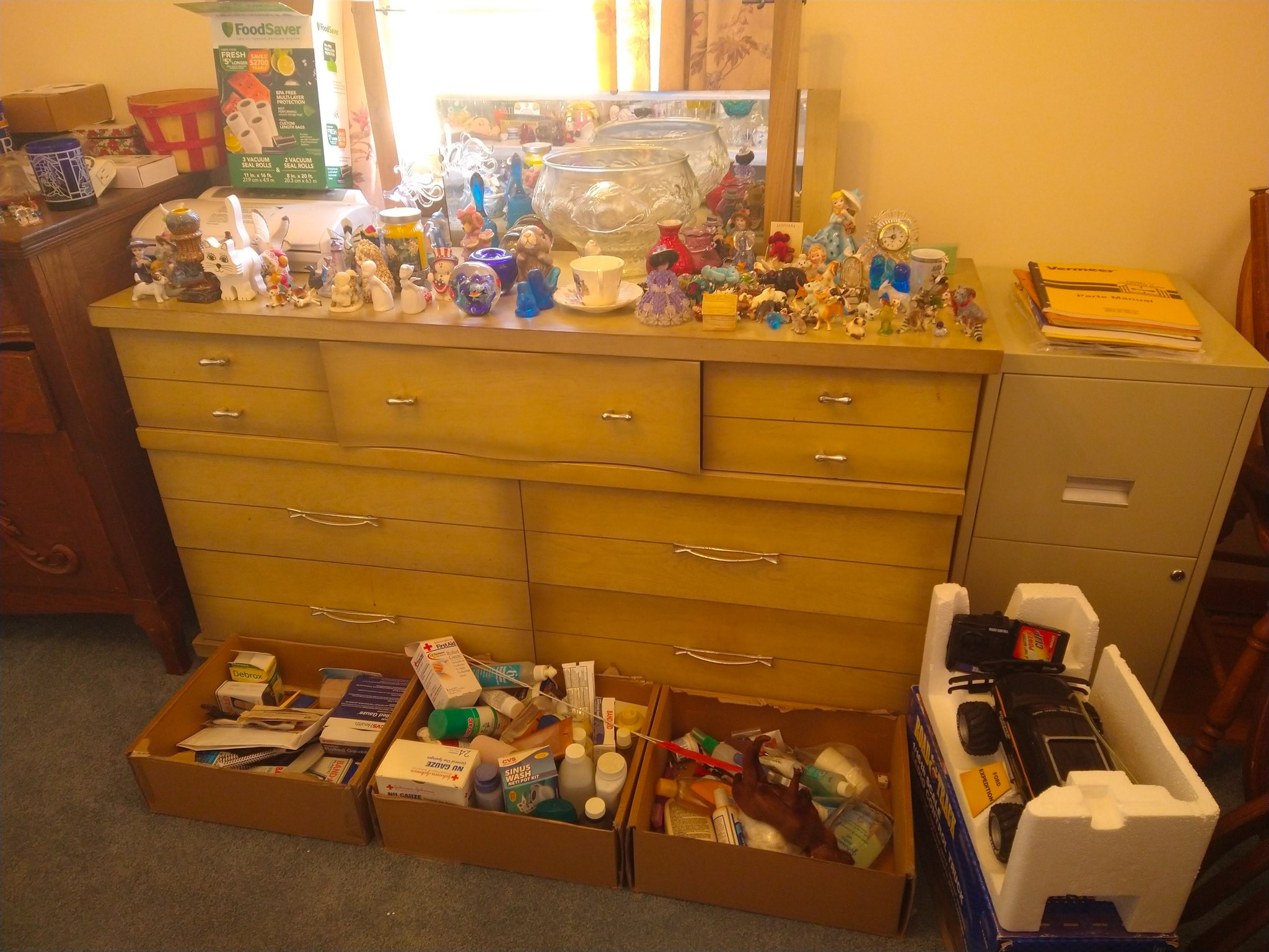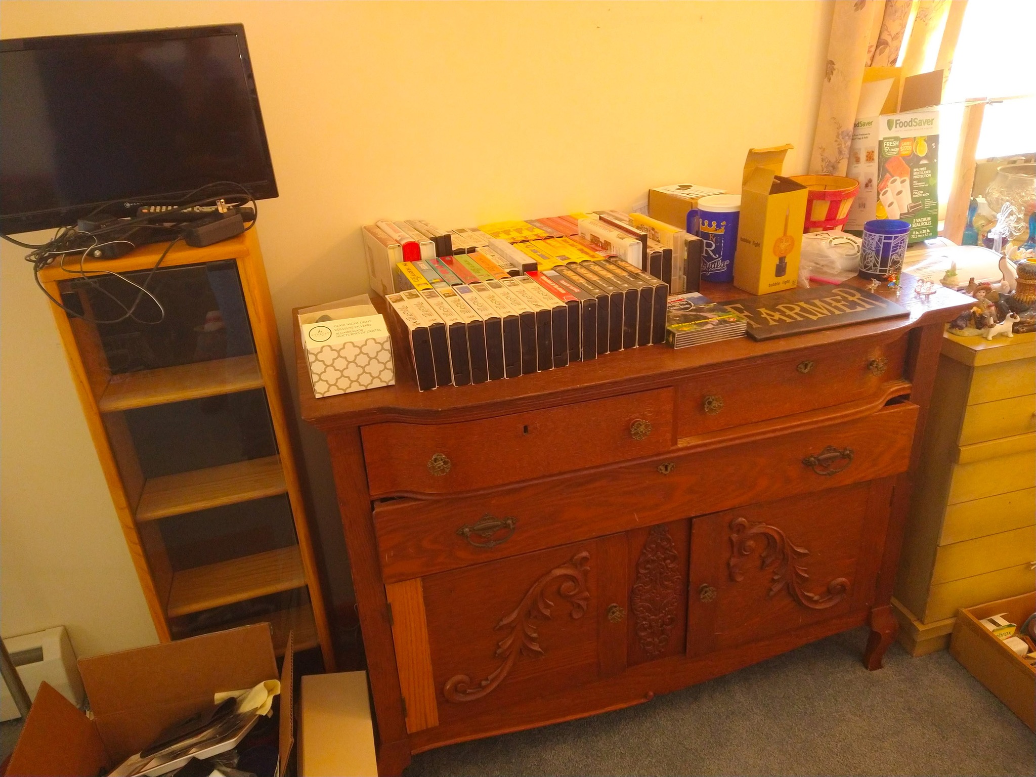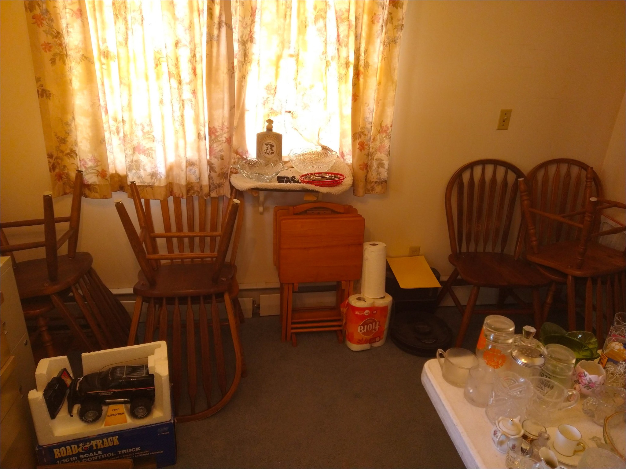 APPLIANCES & FURNITURE: KENMORE REFRIGERATOR w/ DOUBLE DOOR TOP, BOTTOM DRAWER FREEZER w/ ICE MAKER – KENMORE COUNTER TOP REFRIGERATOR w/ ICE TRAY FREEZER – KENMORE MICROWAVE – EASE TWIN SIZE ELECT BED, SEALY MATTRESS, ADJ HEAD & FOOT – NICE OAK FRAME OVAL GLASS CURIO CABINET – CLEAN MAYTAG 3000 SERIES FRONT LOAD WASHER – KENMORE GAS DRYER – DURA FLAME ELECT HEATER – ELECT FANS – MICROWAVE STAND ON WHEELS – ORNATE DRESSER w/ MIRROR & MATCHING 5 DRAWER CHEST – NEW AIR CARE HUMIDIFIER – RESPONSIC OXYGEN MACHINE – SET SNACK TRAYS w/ CARRIER – 8 DRAWER DRESSER & MIRROR – FULL SIZE 4 POSTER BED w/ BXSPGS & MATT – SINGER TOUCH & SEW MACHINE w/ CABINET – METAL FRAME KITCHEN TABLE w/ LEAF – 8 NICE WINDSOR BACK OAK DINING CHAIRS – SHARP ROBOT VACUM – SET WOOD SNACK TRAYS w/ CARRIER – METAL 3 DRAWER FILE CABINET – 7 DRAWER DRESSER w/ MIRROR, BY WARD, FT SMITH – OLD OAK VINITY 2 DOOR, 2 DRAWER IN ROUGH COND. – ELEMENT 18 IN TV w/ REMOTE – SWIVEL 2 SIDED DVD / VCR CABINET – FLOOR LAMP – OAK WHITE CLAD, SIMMONS HDWE ICE BOX LAMP TABLES – TOUCH LAMP – SAMSUNG VCR / DVD w/ REMOTE – 31 IN SONY TV w/ REMOTE – NICE OAK FRAME TV STAND – TRI CAM STEP STOOL – 23 IN ONN TV w/ REMOTE – SHARK UPRIGHT VACUM –