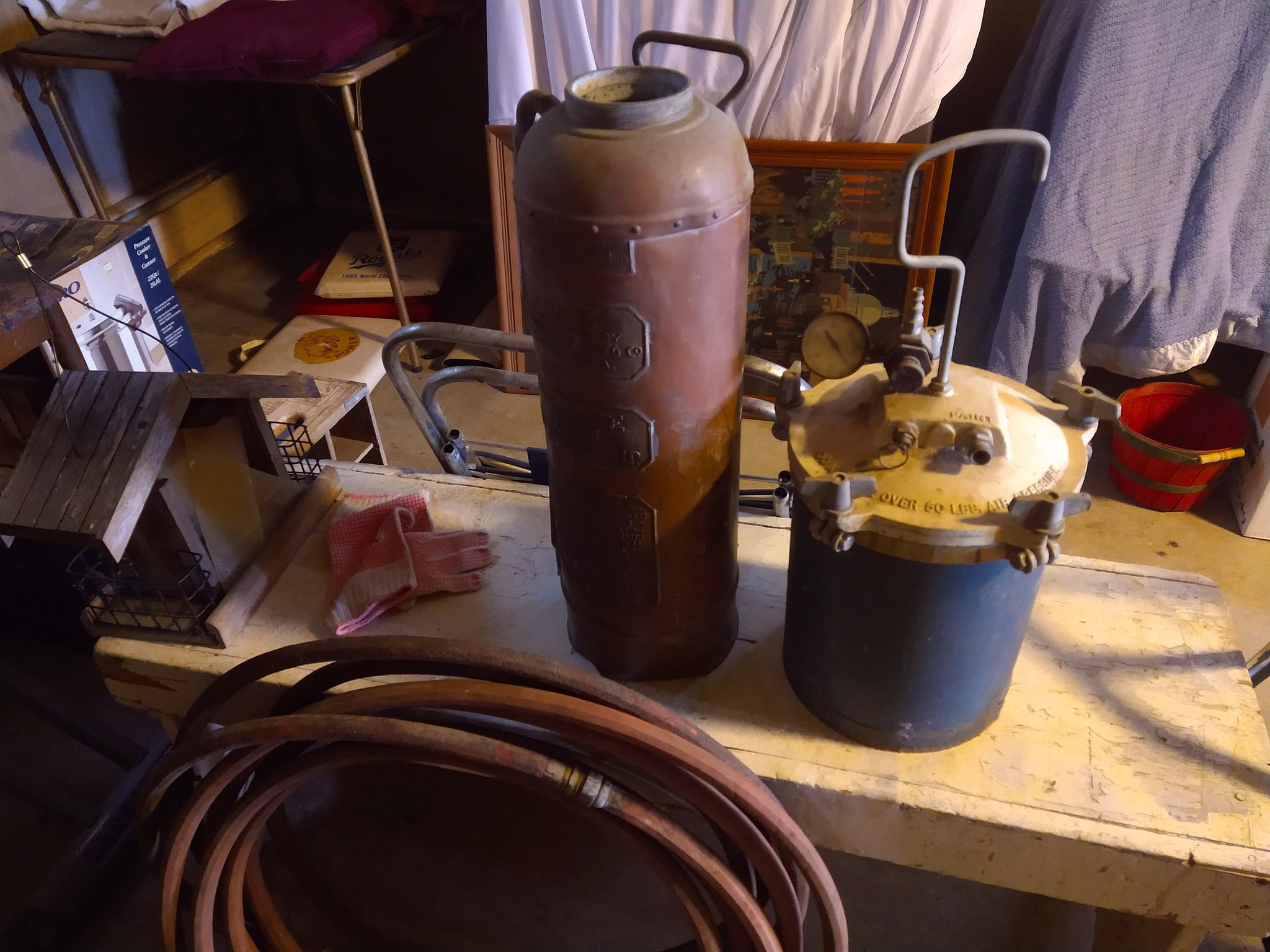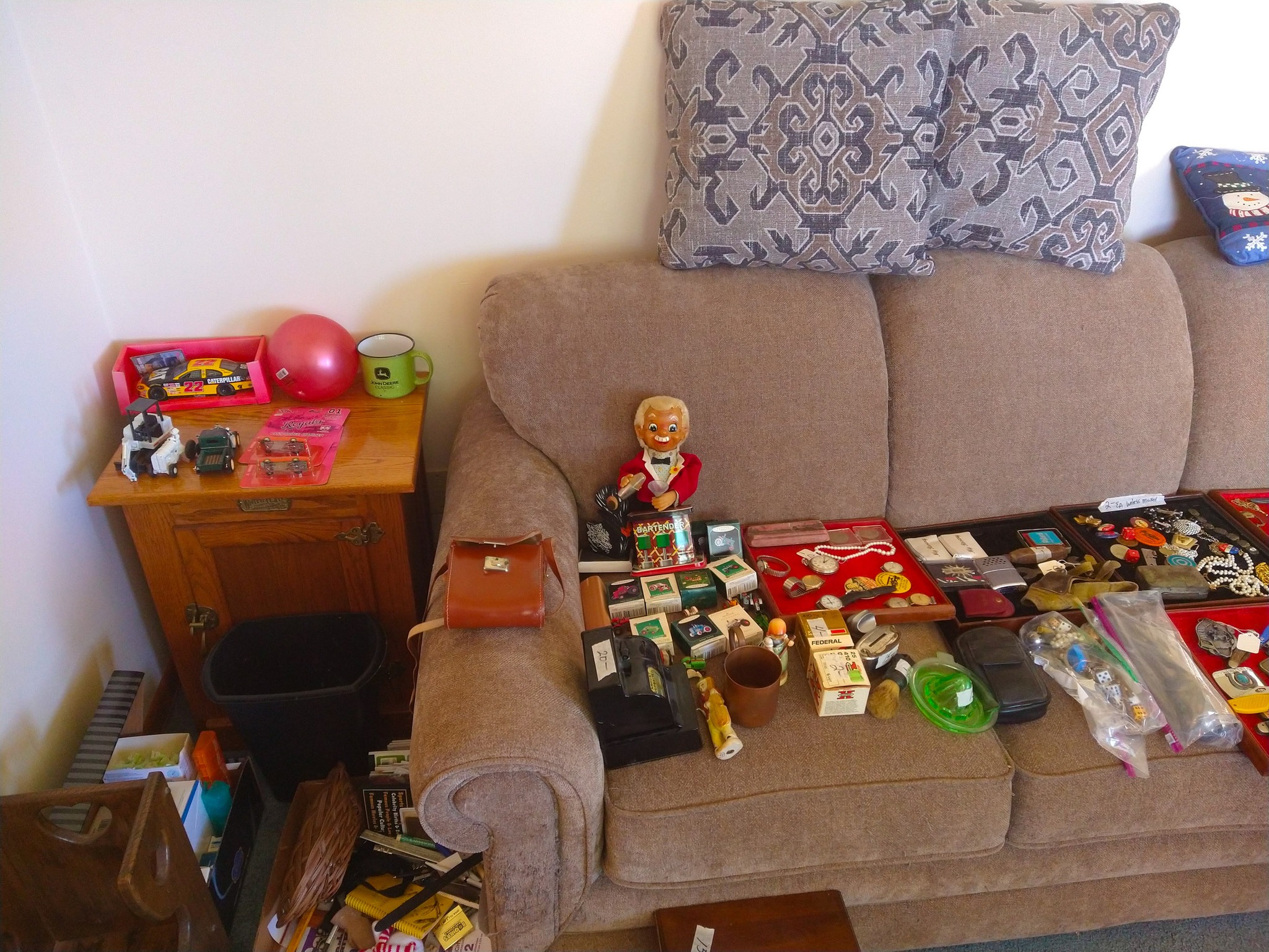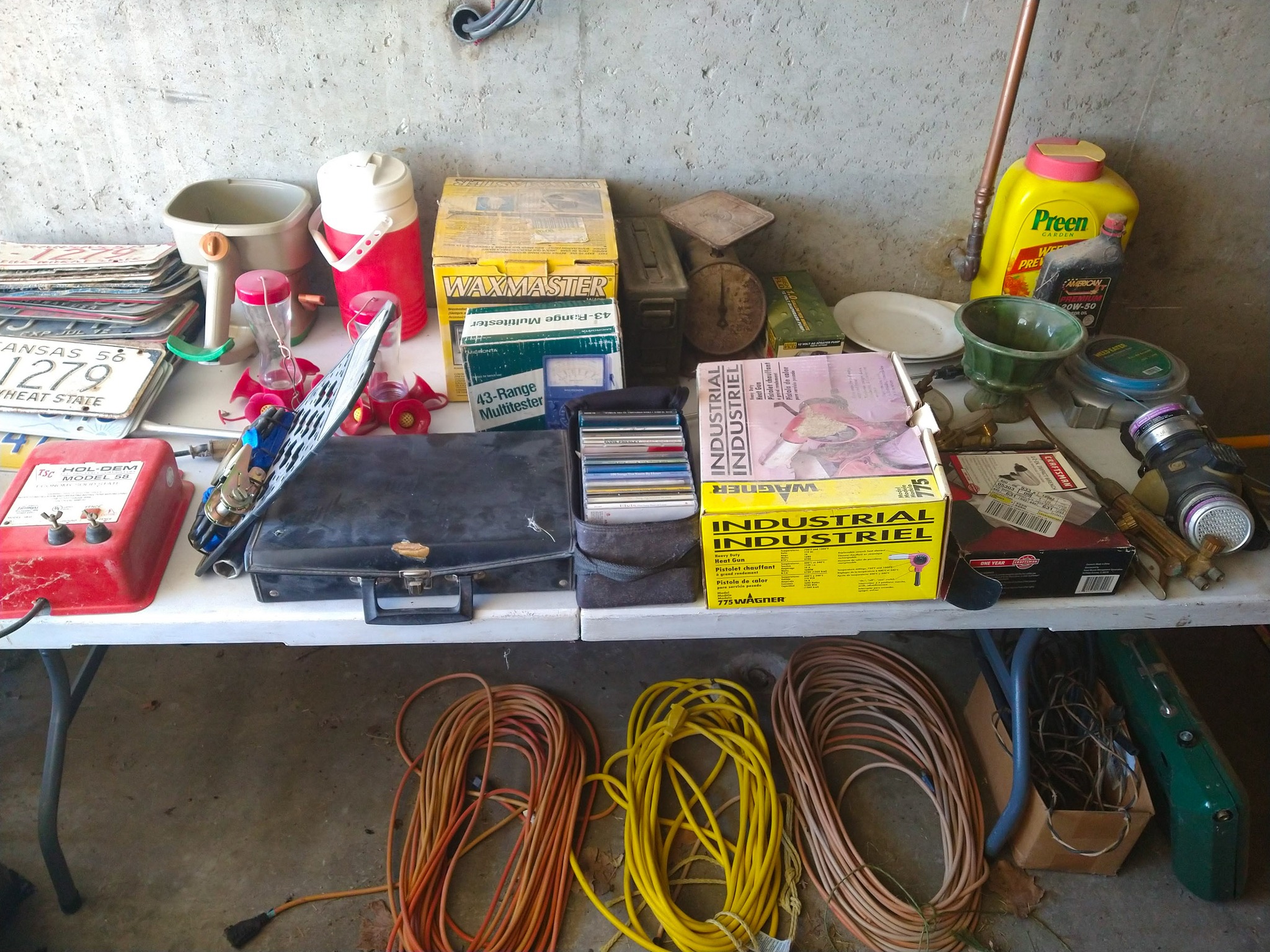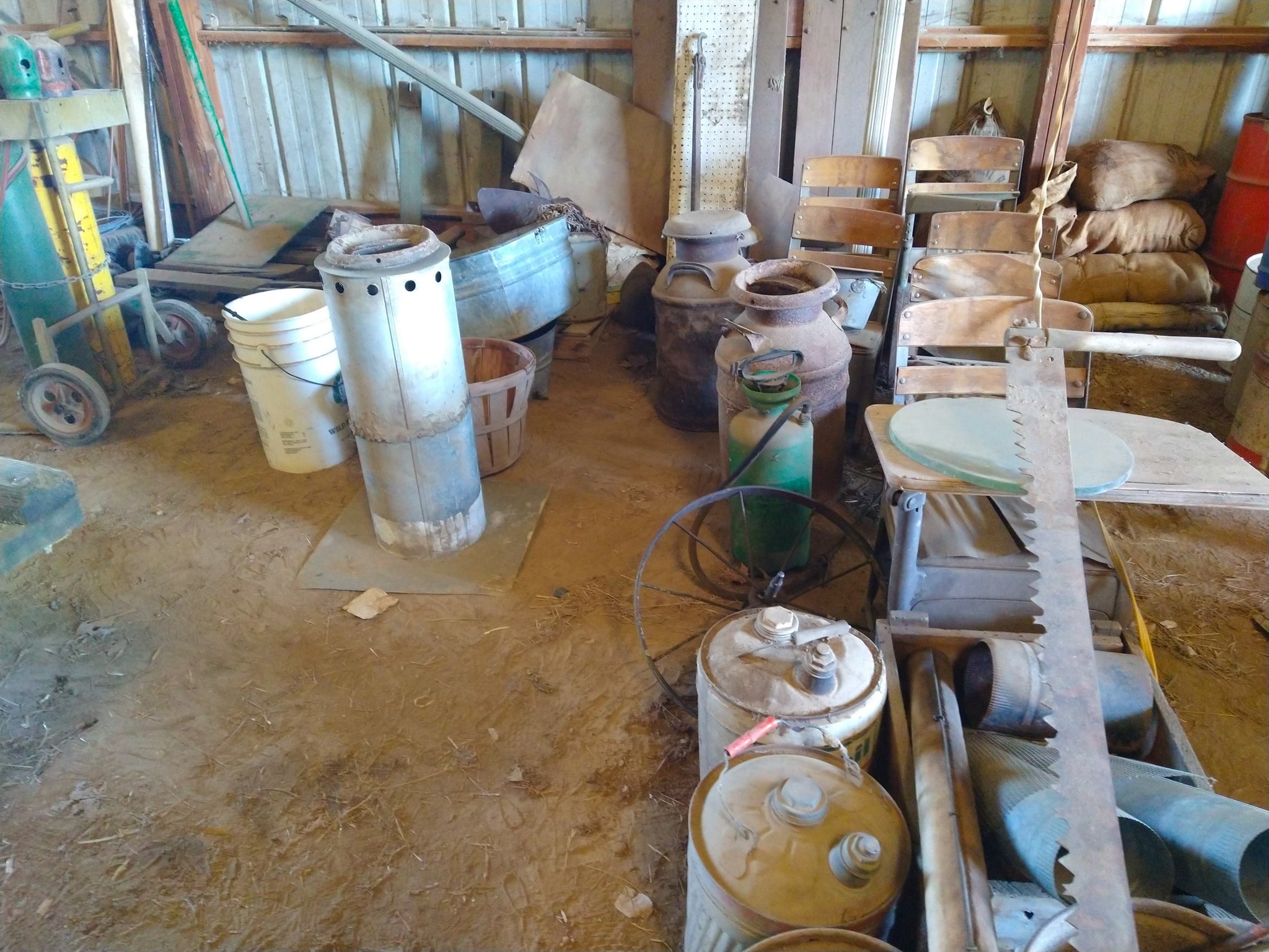 ANTIQUES & COLLECTIBLES: LITTLE SWEEPER HUMMEL – CORK REMOVER w/ STERLING & HORN HANDLE – HOPALONG CASSIDY KNIFE – UNCLE SAM TIN CASH REGISTOR BANK – MANUFACTURES BANK SUIT CASE BANK – VERY OLD PHOTO ALBUM – LARGE SET NORITAKE CHINA. MADE IN OCCUPIED JAPAN w/ FANCY SERVING DISHES – BOWL w/ FLYING PHEASANTS – MCDONALDS 1977 ACTION SERIES CARTOON GLASSES – TIN BOKER COFFEE BANK – COSSACK COPPER CUP – WASHBOARDS – O.E.POTTER NUT CRACKER – BOTTLE CAPPER – OIL LAMP – MANY OLD & UNUSUAL BEER TINS – ADV BOTTLE T.D. SAMUEL WHOLESALE LIQUOR DEALER,LV,KS – PEPTO MANCAN BOTTLE – AMBER MARY GOLDMAN BOTTLE – CALIFORNIA FIG SYRUP CO BOTTLE – INK BOTTLE – METAL CROSS OF JESUS {INRI} – OLD HANGING FIRE EXT BALL – HAND CRANK CORN SHELLER – CABBAGE CUTTERS – GLASS MILK JUGS – IRON COAT HANGERS – 6 GAL CROCK – ½ & BUSHEL BASKETS – WOOD 7 UP BOTTLE CARRIER – OLD BRASS ACME FIRE EXT – MONTE CHRISTO ADV BOTTLE – ADV BOTTLE BECHER CO, LV,KS – TWIN SPRINGS BOTTLE CO, KC,MO – EAGLE WEATHER VANE – HAND CRANK LARD PRESS – 5 GAL CROCK – 6 GAL BLUE BAND CROCK – US SUPPLY TIN SIGN – REDWING 6 GAL CROCK w/ HANDLES – ICE TONGS – AIR HORN – SHUCKING PEGS – SANITARY SIFTER – FOSTER FEED STORE RAINGUAGE – LEATHER BLACK JACK – CARBIDE LIGHTS – SEVERAL PORCELAIN DOOR KNOBS – WOOD CHEESE BOX – ADV MATCH HOLDER – 1 GAL MOBIL OIL CAN – 1930'S VINTAGE CARBIDE MINERS LAMP – STANDARD OIL TIN – CUTPLUG TIN – HAND CRANK TABLE TOP GRINDER – PARKING METER – 1 MAN WOOD SAW – ANTLERS & SKULLS – SEVERAL MOBIL GAS GANS – OLD PEDAL GRINDSTONE – WOOD BARRELS – OLD HAND CRANK CIDER PRESS – SEVERAL OLD IRON WHEELS – HAND CRANK CORN SHELLER – HANDCRANK GRIST MILL – GUNNY SACKS – 5 & 10 GAL MILK CANS – GALVANIZED TUBS – 2 MAN WOOD SAW – HUDSON WELL PUMP – SINGLE TREE'S – COW BELLS – OLD WOOD CARRIAGE TONGUE – WOOD CARPENTERS BOX – HOWE PLATFORM SCALE – AMMO BOX –