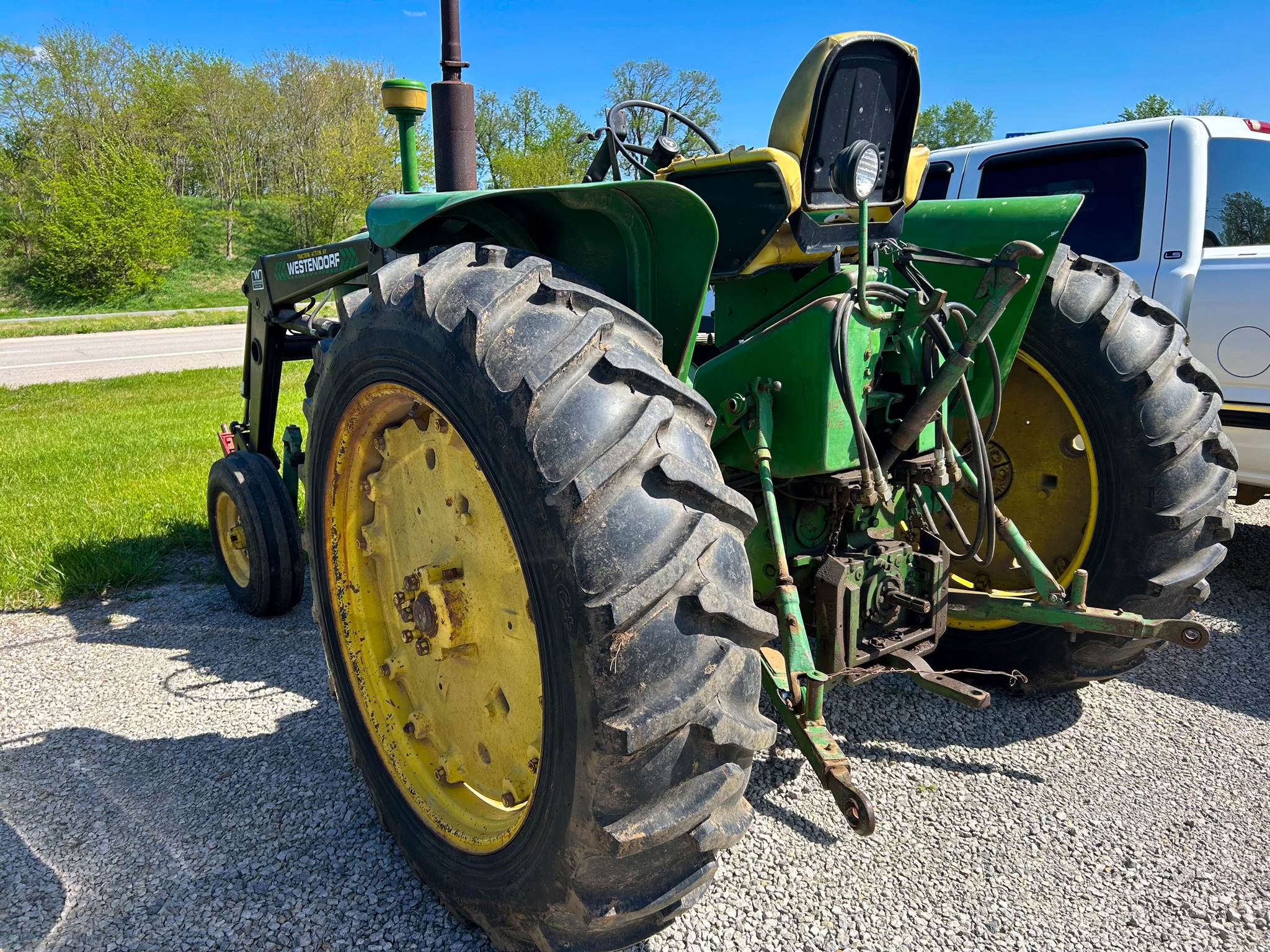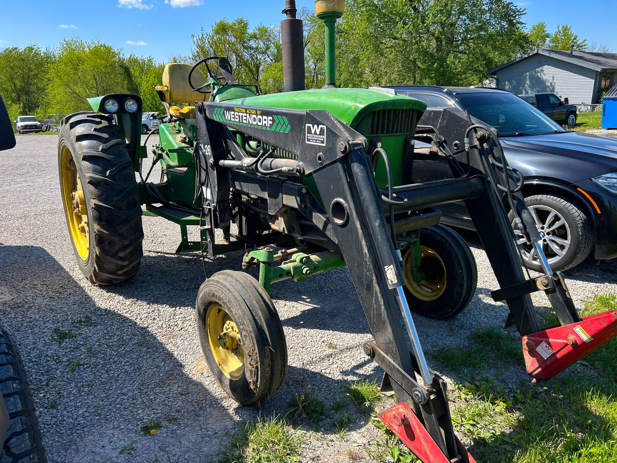 JOHN DEERE TRACTOR: 1963 JOHN DEERE 3010 TRACTOR, 2835 HOURS, SER#46773, POWER STEERING, WIDE FRONT, 15.5 X 38 GOOD RUBBER, w/ CLEAN T.A. 26 WESTENDORF HYD FRONT LOADER & 6 FT BUCKET.
