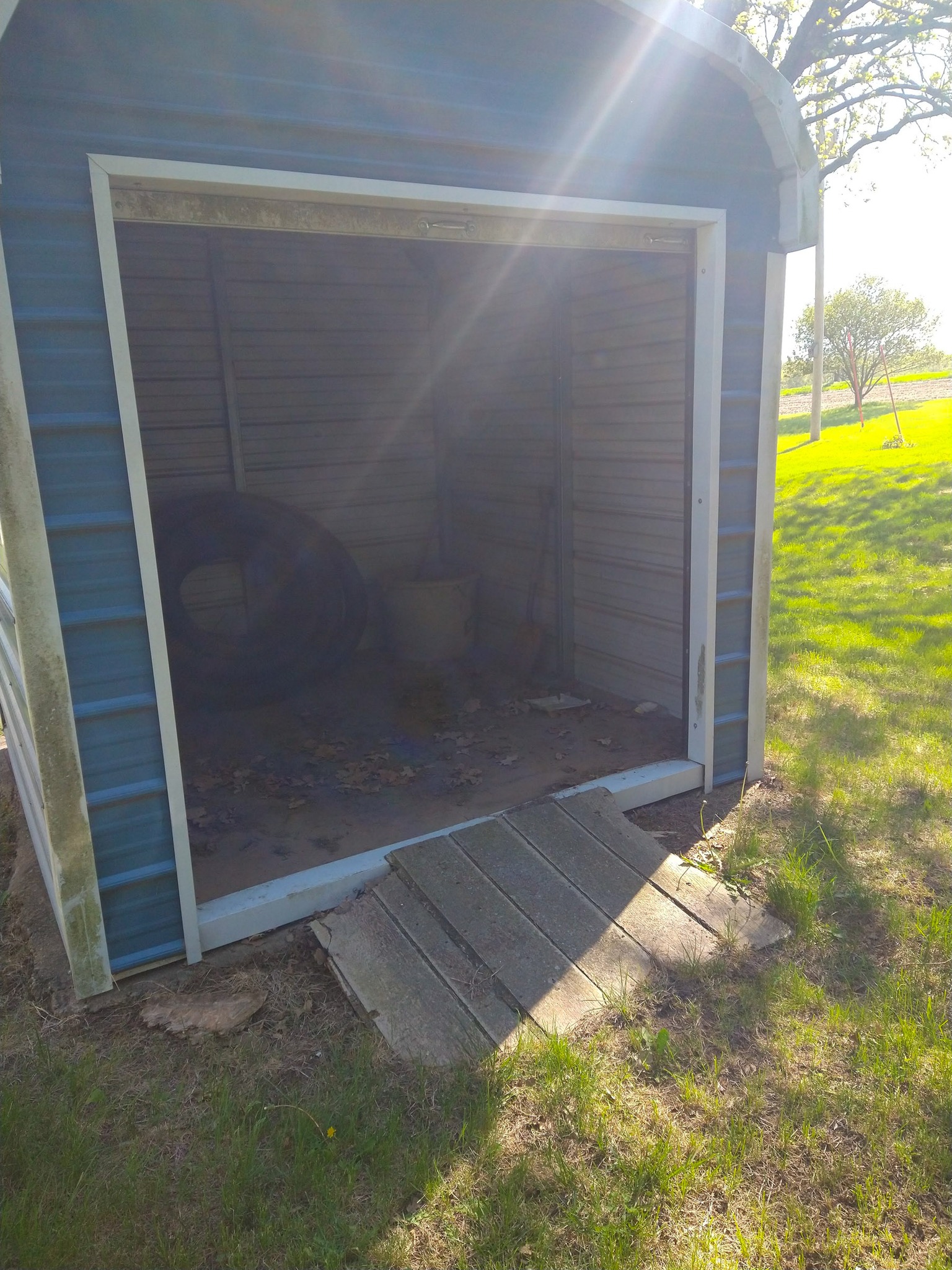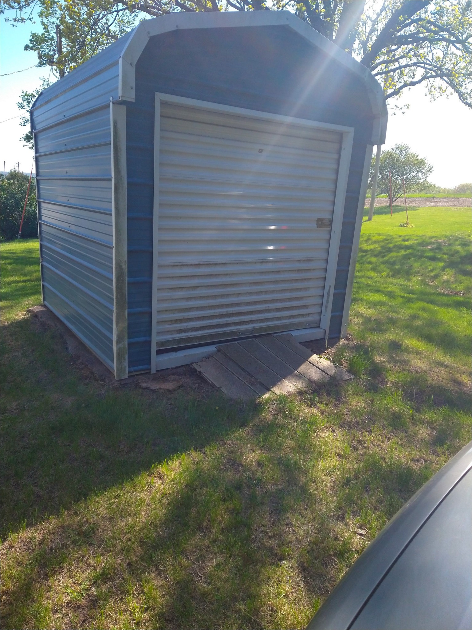 PORTABLE BUILDING: NICE 8 FT X 8 FT PORTABLE METAL BUILDING w/ WOOD FLOOR & ROLL UP DOOR
