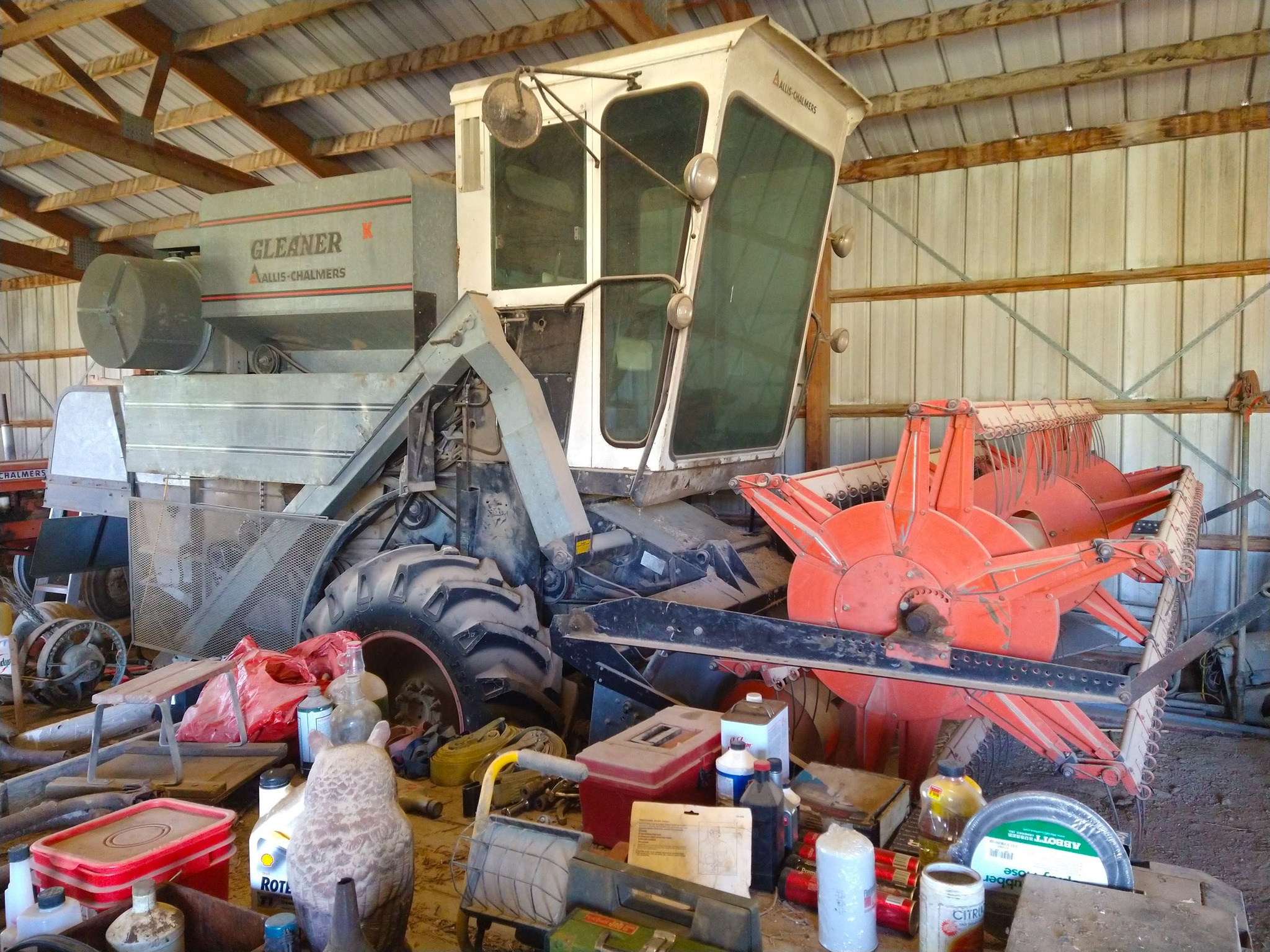 COMBINE: ALLIS CHALMERS MODEL K GLEANER COMBINE, 10 FT GRAIN HEAD, 16.9 X 26 TIRES. COMBINE HAS BEEN IN BARN & NOT USED FOR SEVERAL YEARS. IT IS A CLEAN COMBINE & RUNNING AT TIME PARKED. IT WILL RUN NOW BUT WILL NEED FUEL LINES FLUSHED & FILTERS CHANGED. IT IS BEING SOLD AS IS CONDITION.