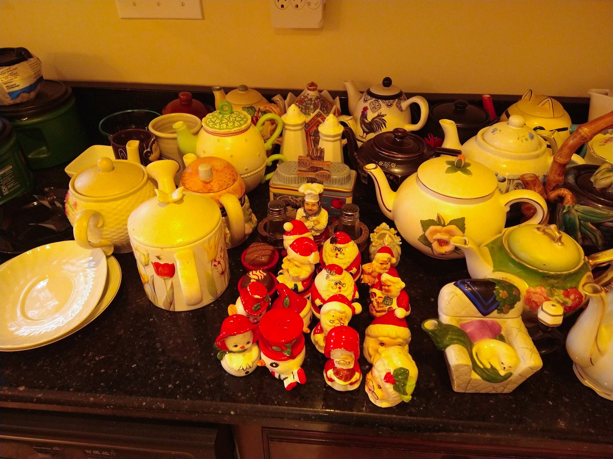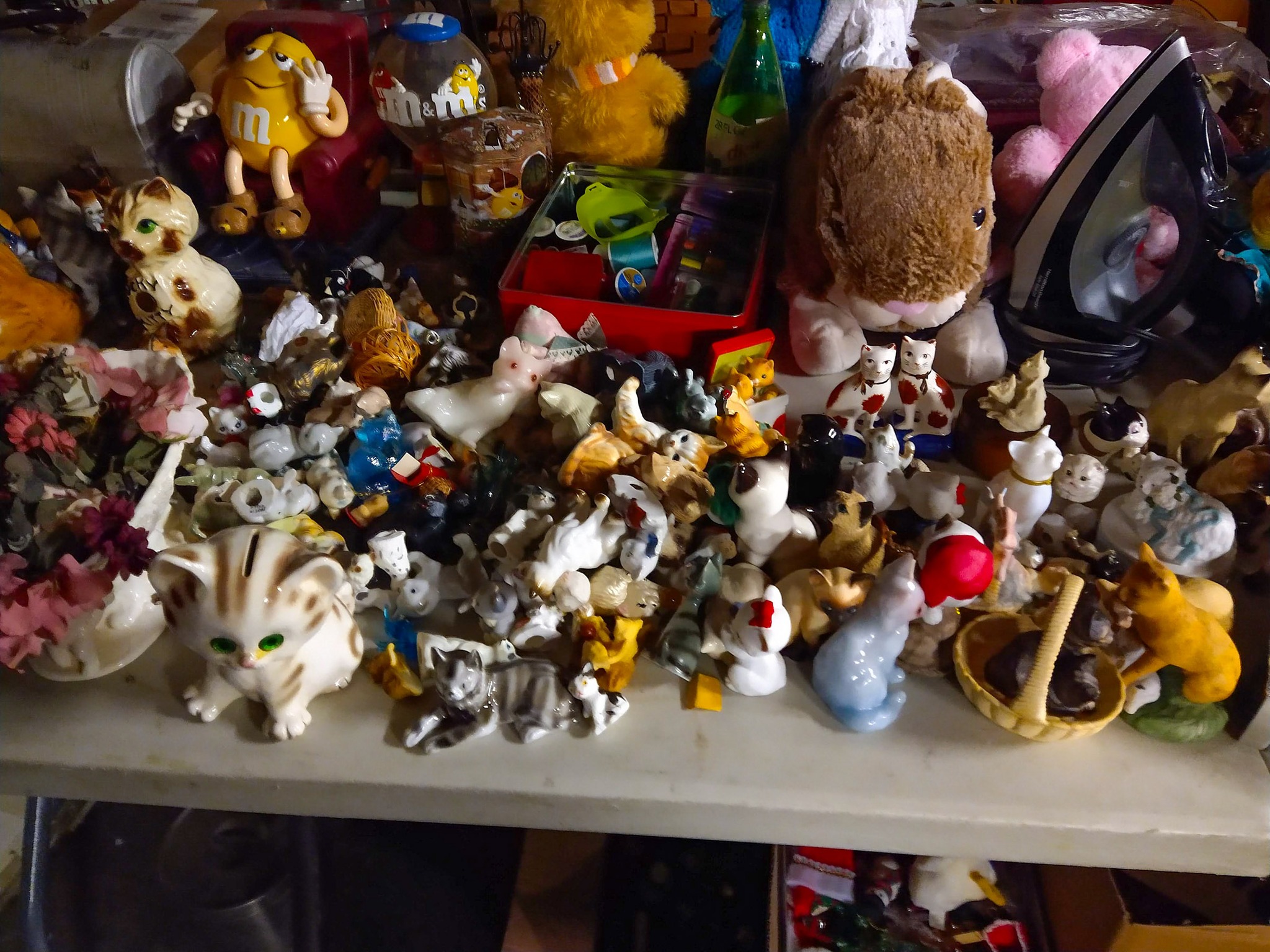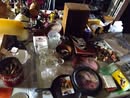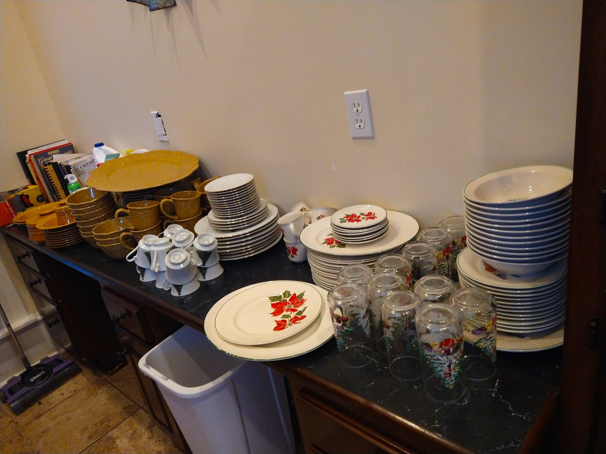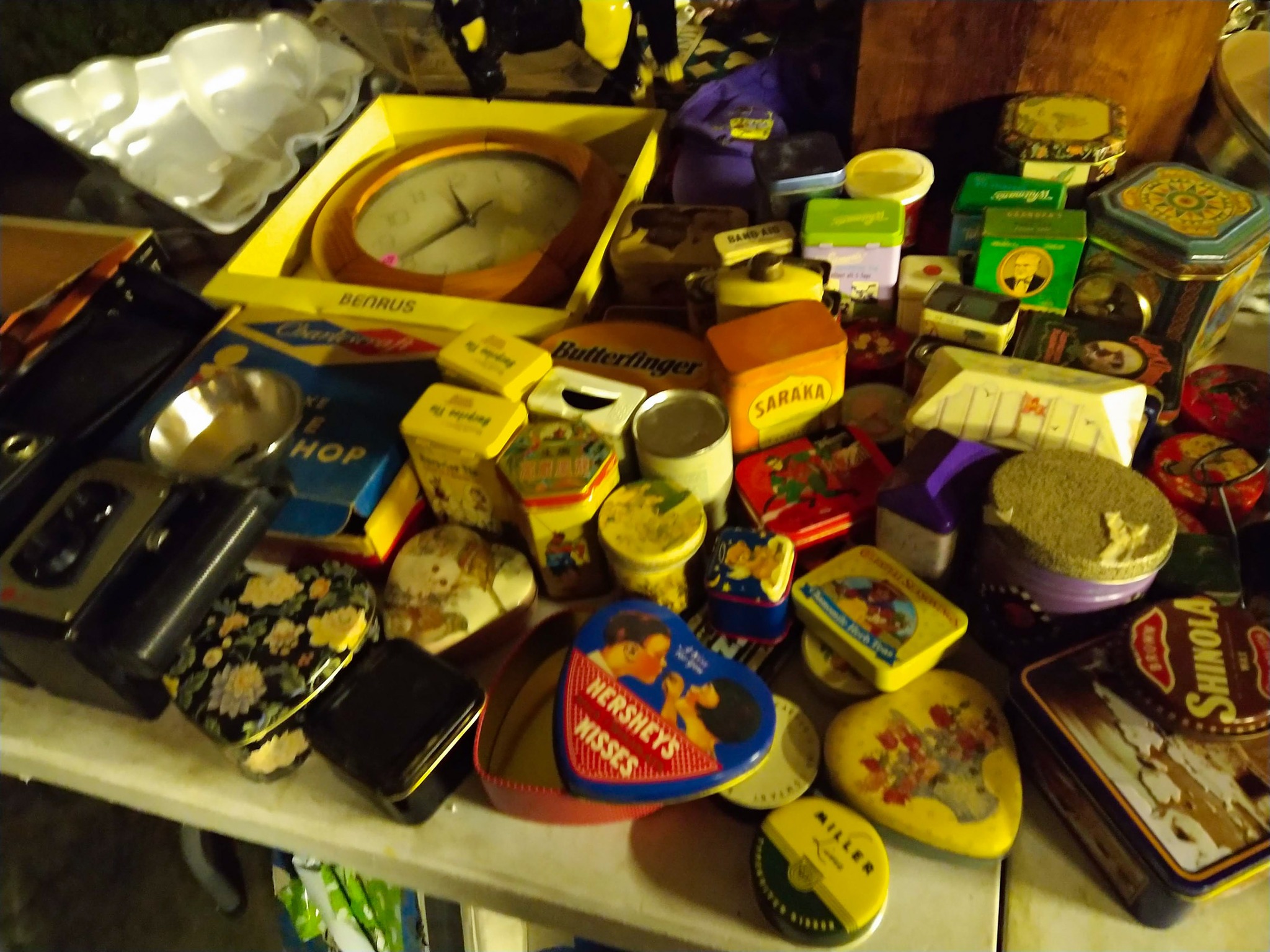 HOUSEHOLD: LADIES HANKIES – CLOTHES RACKS – NATIONAL # 25 PRESSURE COOKER – NESCO 18 QT ROASTER – ELECT POPCORN MACHINE – THREAD HOLDER – CORNING WARE – MINI TEA POTS – CAKE MOLDS – HB IRON – SEWING NOTIONS – COOKBOOKS – SET CHRIS MADDEN DISHES – SET XMAS DISHES – SET POINSETTA CHINA – GIBSON BOWLS, PLATES & GLASSES – MANY TEA POTS – MANY S&P SHAKERS – PATTERN GLASS PIECES – TEA KETTLES – SKILLETS – NICE 8 PLACE SET SOMERSET # 5317 CHINA – KNIFE BLOCK – GLASS PYREX PIE PANS – MR COFFEE MAKER – EGG PLATE – PYREX CASSEROLES – BAKING & CAKE PANS – ADV SPORT FIGURES PLATES – GERMAN HAND PAINTED PLATES – TUPPERWARE – BELLA BLENDER – OSTER DEEP FRYER – NESCO 4 QT ROASTER OVEN – BEER MUGS – DRINK GLASSES – HB CROCK POT – STAINLESS STEW POT – LINEN TABLE CLOTHS & NAPKINS – APRONS – BLANKETS – COMFORTER – ELECT NECK MASSAGER – ART DECO CLOCKS – MANY CLOCKS – CHRISTMAS FIGURES – BISQUE FIGURINES – FULL SET AVON MOTHERS DAY PLATES – METAL ART DECO WALL RACK – PORCELAIN VASES – MINI FIGURINES – GERMANY CHINA TEA SET – MINI OIL LAMPS – HEAVY ART GLASS PCS – GLASS ELEPHANTS – NEW BLOW DRYER – NEW ELECT KNIFE – MUSTACHE CUPS – LADIES PURSES – SCARVES – LADIES HATS – HAT BOXES – LADIES SHOES – ARTIFICIAL FLOWERS – WALL DÉCOR – CHAIR PADS – RED OVERLAY TALL VASES – PITCHER & BOWL SETS – 2 DRAWER CLOSE TOP SEWING BASKET – WICKER DOLL SEAT – LARGE THREAD SPOOL HOLDER – MUSICAL XMAS FIGURES – WOMENS CLOTHES, COATS & JACKETS – HB IRON – 2 BURNER GAS GRILL – MUSHROOM CANISTER SET – PORCELAIN COLD PACKER – SNACK TRAYS w/ HOLDER –