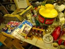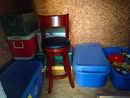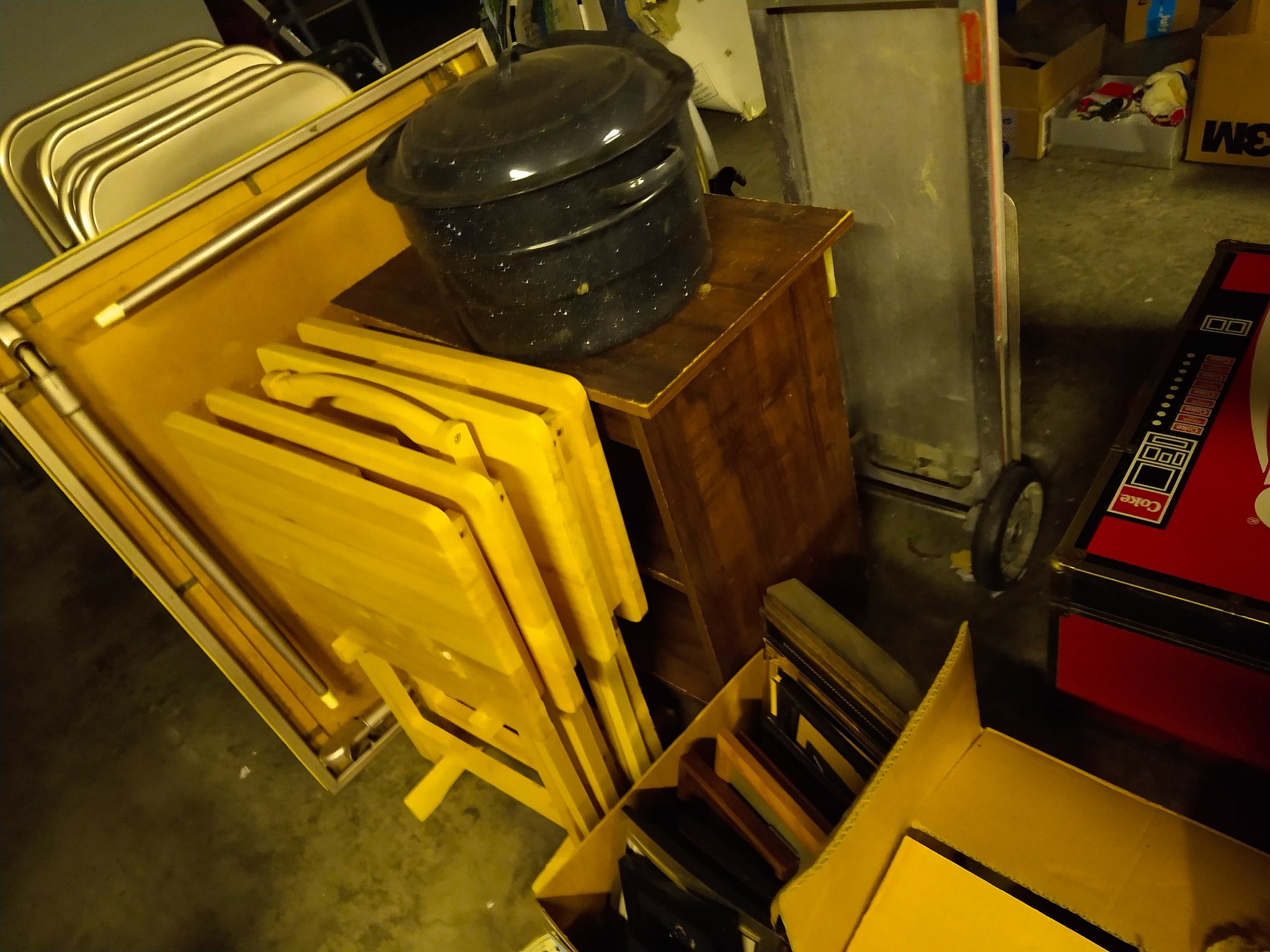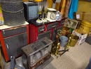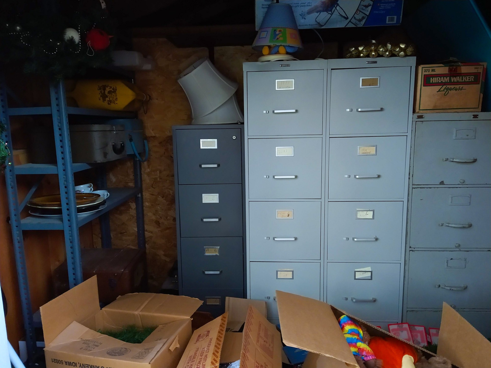 MISCELLANEOUS: PADDED PISTOL CASE – DAISY CO2 #200 PISTOL w/ HOLSTER – CHILDS LEATHER BOOTS – NEW WESTERN BELT w/ TURQUOISE INSET BUCKLE – COLEMAN, IGLOO & THERMOS ICE CHESTS – 2 EA 5 DRAWER LEGAL FILE CABINETS – 2 EA 4 DRAWER METAL FILE CABINETS – LARGE OFFERING XMAS DECORATIONS – 7 TIER METAL SHELF – STUFFED ANIMALS & TOYS – SCHWINN PRELUDE BICYCLE – 4' X 8' SHEET ¼ IN PLYWOOD – PROJECTION SCREEN – BOOKS – SPRAY PAINT – CABINET BASES – TOTES – PORTA POTTY – HAIR CLIPPER SETS – XMAS TREE – M&M DISPENSERS – BOARD GAMES – BOOK ENDS - WESTERN BELTS & OTHERS – 9 SHELF METAL RACK – FOLDING WALKER – ROLLER WALKER – ROLLER HANDICAP CHAIR - GLASS TOP FRUIT JARS – AIR LINE RECORD PLAYER – LG METAL CABINET – ADJ STOOL ON ROLLERS – MARCY EXERCISE BIKE – 3 SLEDS – ALADDIN KEROSENE HEATER – ADD ON ELECTRIC FIREPLACE w/ ELECTRIC LOG – FIRE PLACE TOOLS & AND IRONS – ELECT HEAT DISH – REGENCY SCANNER – XMAS LIGHTS – 4 TIER METAL SHELF – WORLD GLOBE – TRASH CANS w/ LIDS