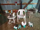 WATER HOSE – FOLDING LAWN CHAIRS – D.R. STRING MOWER TRIMMER W B&S ENG 3.75 HP, HI WHEEL – SELF PROP POWER MOWER, B&S ENG – YARD WINDMILL – 2 WHEEL YARD DUMP TRAILER – CEMENT LAMB, CHICKEN, CHICKS, FROG & GNOME – IRON DASCHUND SHOE SCRAPER - PATIO SNACK TABLE – POLY STACK CHAIRS – METAL PLANT STAND – YARD WORK PULL LAND AERORATOR – 10 EA 6 FT STEEL T POSTS – ROLLS POLY SNOW FENCE – FOLDING PATIO CHAIRS & LOUNGER – MOLE TRAP – PATIO UMBRELLA w/ STAND – OUTDOOR TIMER – ELECT WEED EATER STRING TRIMMER – B&D 40 VOLT BLOWER w/ BATTERY & CHARGER – BIRD FEEDERS – B&D 40 VOLT STRING TRIMMER w/ BATTERY & CHARGER – HUMMING BIRD FEEDERS – WINTER PROTECTION GREENHOUSE (IN BOX)