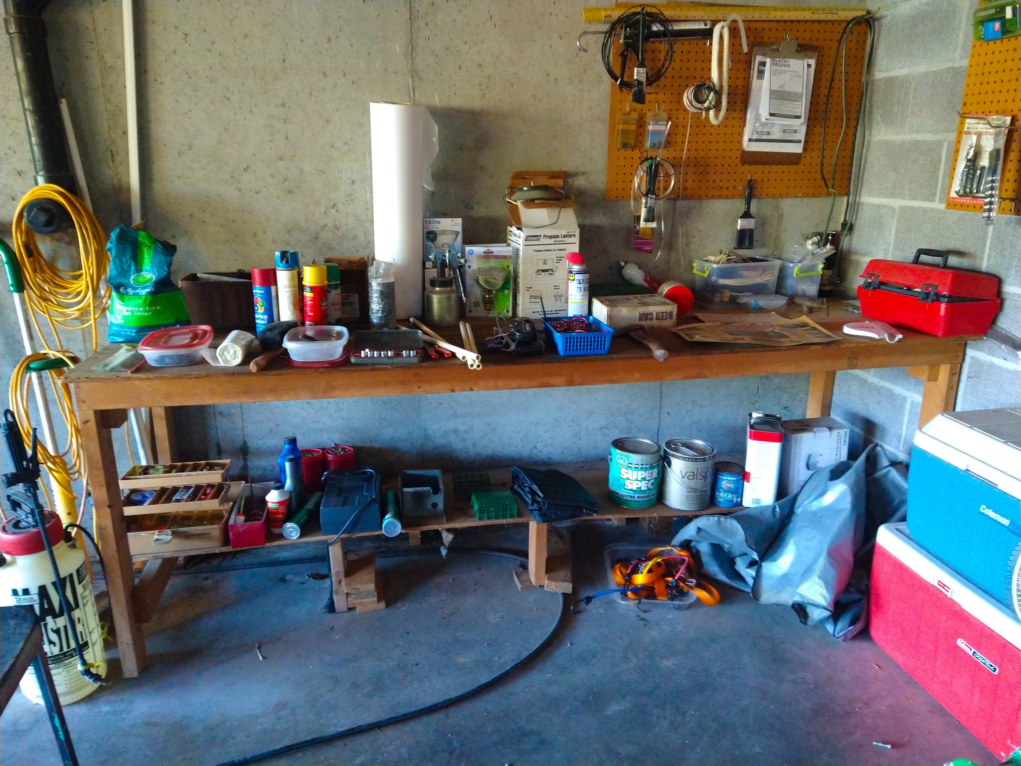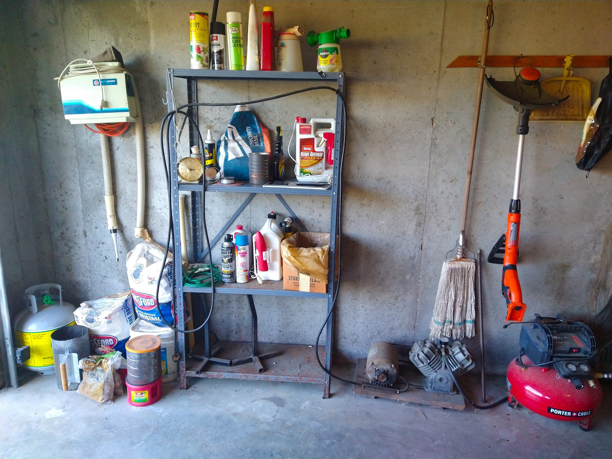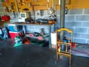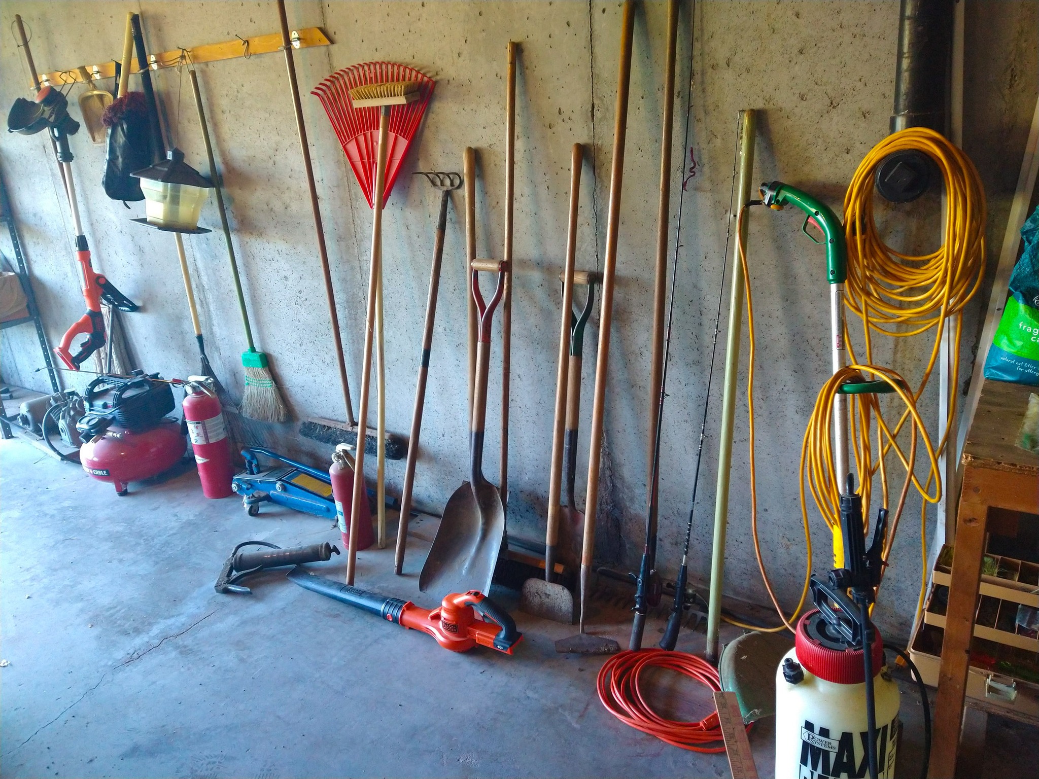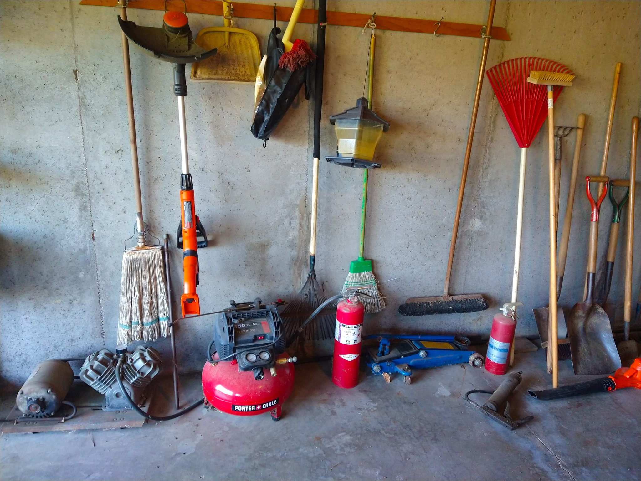 TOOLS: 3 / 8 IN SOCKET SET – HOMELITE XL CHAINSAW – SEARS 4 AMP BATTERY CHARGER -ASSOCIATED 6-12 VOLT BATTERY CHARGER #6009, 325 AMP BOOST – EXT CORDS – RAKE – POST DRIVER – 5 & 6 FT STEP LADDERS – 2 WHEEL DOLLY – AIR HOSE – PRUNERS – SNOW SHOVEL – PLYERS – SCREW DRIVERS – PRESSURE SPRAYERS – HARKER HVY DUTY 2 WHEEL DOLLY – 6 FT METAL STEP LADDER – BALL PEAN & CLAW HAMMERS – SLEDGE – ADJ WRENCHES & VISE GRIPS – SET CRAFTSMAN OPEN END & SWIVEL BOX END WRENCHES – SQUARE – LEVELS – METAL BASE WOOD TOP WORK BENCH 2 FT X 5 FT – TOOL BOX w/ TRAY – PAINT BRUSHES – MODEL 331-A AIR SPRAY PAINT GUN – ¼ IN DR SOCKET SET & RATCHET - MICRONTA OHMS METER – AMPROBE AMP TESTER w/ CASE – HOES – RAKES – SPADE – SCRAPER – SHOVELS – SHOP BROOM – 4 TINE HOE – GREASE GUN – HVY DUTY # 649 HYDRAULIC FLOOR JACK ON WHEELS 4000 LB CAP – PORTER CABLE 6 GAL AIR COMPRESSOR – AIR COMP w/ POWER KRAFT MOTOR & SPEENY COMP –