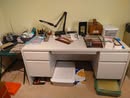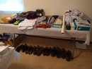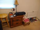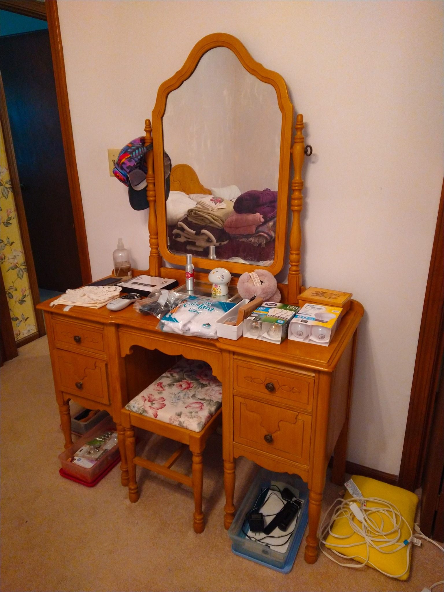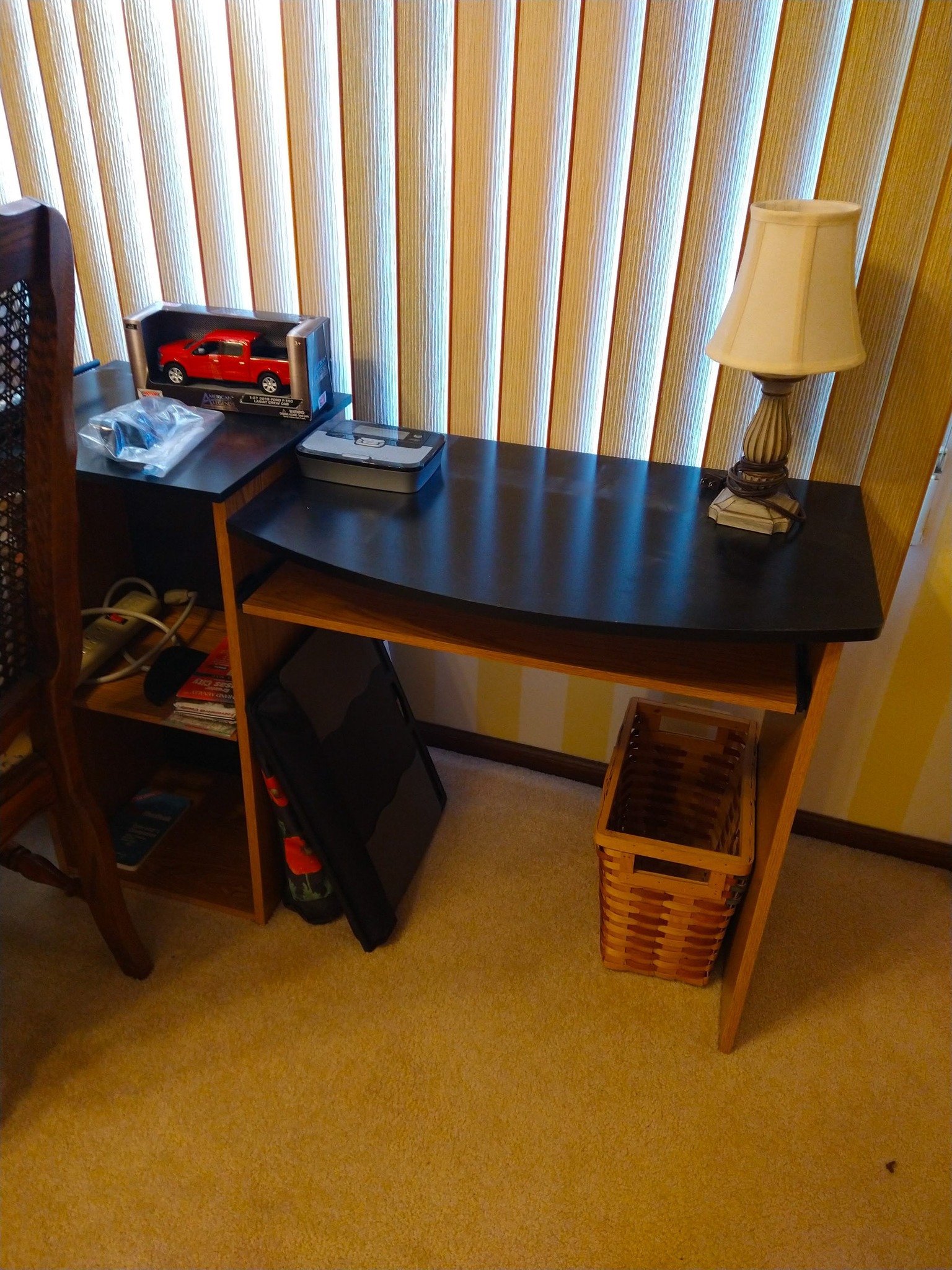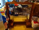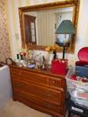 APPLIANCES & FURNITURE: CLEAN WHIRLPOOL REFRIGERATOR w/ CROSS TOP FREEZER – GE WASHER & ELECT DRYER – MAPLE SEWING ROCKER – QUILT RACK – H.P. DESK JET PRINTER – STANDING JEWELRY CABINET – HOOVER SILVER STEAM VAC – FOLDING CARD TABLE – 50'S STYLE DINETTE SET w/ 4 CHAIRS – FIRE PLACE SCREEN & IRONS – HANDICAP SHOWER CHAIR – LAMP CABINET – 9 DRAWER CHEST – LARGE MIRROR TOP w/ DRAWERS – MICROWAVE STAND – SANYO 40 IN TV w/ REMOTE – FLOOR LAMP – HOOVER UPRIGHT VACUM – 3 LAMP TABLES, 1 ENTRY TABLE, ALL w/ BEVEL GLASS TOPS – NICE CORINTHIAN SOFA – COVERED FOOT STOOL – SMALL 1 DRAWER WOOD CABINET – TABLE LAMPS – NICE LEATHER, LAZY BOY SWIVEL ROCKER RECLINER – SANYO VCR w/ REMOTE – 32 IN PANASONIC TV w/ REMOTE & STAND – EMERSON MICROWAVE – MICROWAVE STAND – OVAL KITCHEN TABLE w/ 4 ROLLER CHAIRS & 1 LEAF – 2 EA 2 DRAWER LAMP CHESTS – 2 TOUCH LAMPS – WOOD STOOL – UPHOLSTERED SWIVEL ROCKER – WICKER FOOT STOOL w/ BIRDS COVER – FOLDING DIRECTORS CHAIR – CLEAN 50'S STYLE FULL BEDROOM SUITE w/ FULL BED, BXSPGS, MATT, VANITY DRESSER & STOOL w/ 4 DRAWER CHEST – 2 DRAWER NIGHT STAND – ZENITH VCR & DVD PLAYER – LARGE 5 DRAWER DESK, 30 IN DEEP X 60 IN WIDE – ADJUSTABLE FLUORESCENT DESK LAMP – SET FOLDING SNACK TABLES – PAPER SHREDDER – UTILITY CABINET – NICE COMPUTER DESK – ADJ EXECUTIVE DESK CHAIR – BOOKCASE – LARGE FRAMED WALL MIRROR – NICE BROYHILL 3 DRAWER CHEST – VERY NICE KELLER PROVINCIAL OAK DINING ROOM SUITE w/ 4 SIDE CHAIRS, 2 HOST CHAIRS, TABLE w/ 2 LEAVES & MATCHING CHINA CABINET – LEAD CRYSTAL ELECT LAMP – STEARNS & FOSTER KING SIZE MATTRESS SET (NEW NEVER USED)