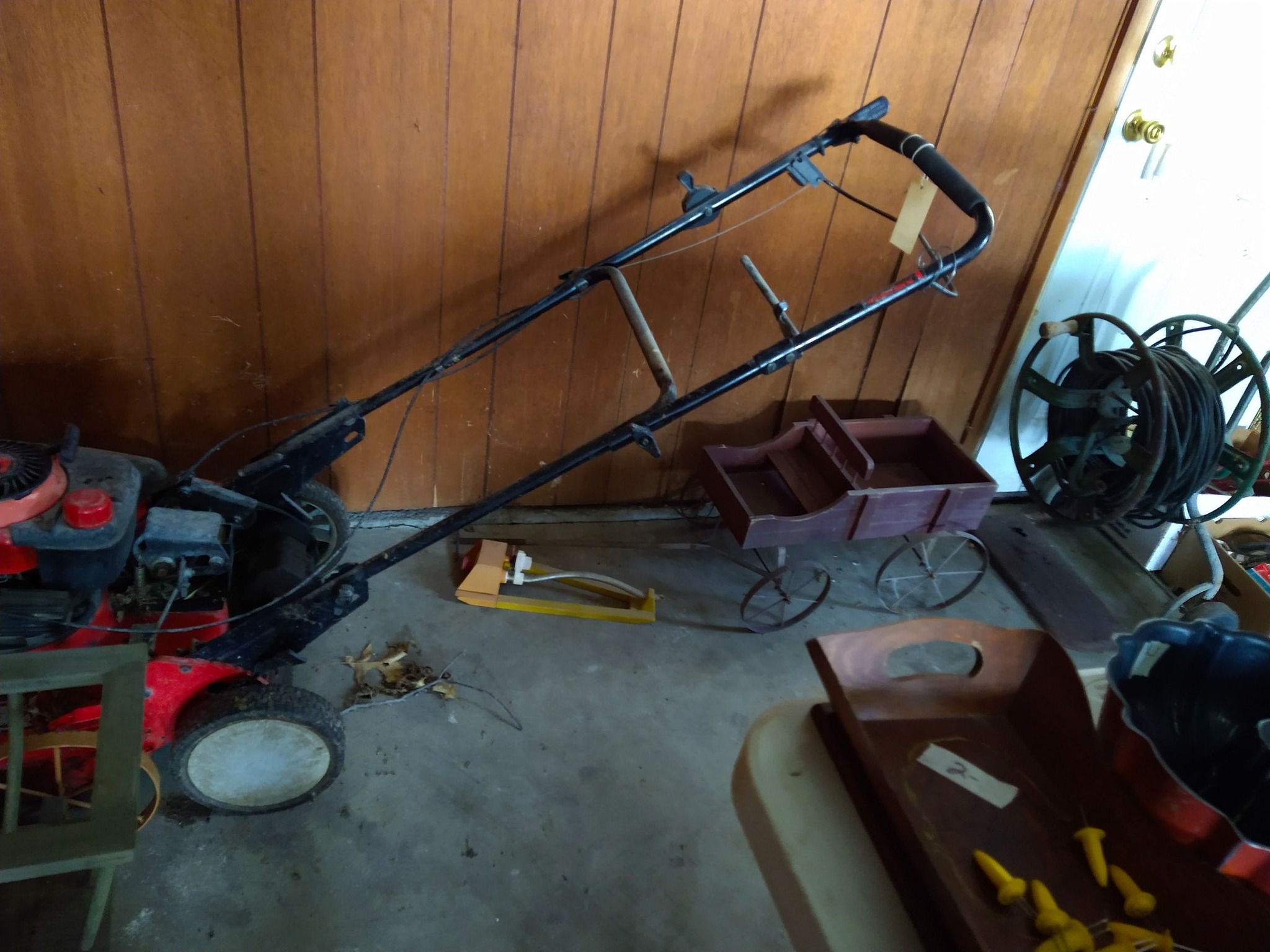 YARD, GARDEN & PATIO: CABELLA TREE CAM – PLANTERS – LARGE METAL PLANTER – BIRD HOUSES – SNAPPER 6 HP SELF PROP POWER MOWER – MINI SNOW MAN – SMALL SLED – DEER STATUE – RAIN GAUGES – CABIN BIRD HOUSE – METAL SUNFLOWER STAND – IRON TRELLIS – SHEPHERDS HOOK – IRON YARD DÉCOR – SQUIRREL FEEDER – PATIO TABLE w/ 4 CHAIRS – FOLDING LAWN CHAIRS – METAL WIND DIRECTIONAL – STIHL GAS STRING TRIMMER – POULAN PRO GAS LIMB TRIMMER – PUSH REEL MOWER – SPRINKLER CAN –