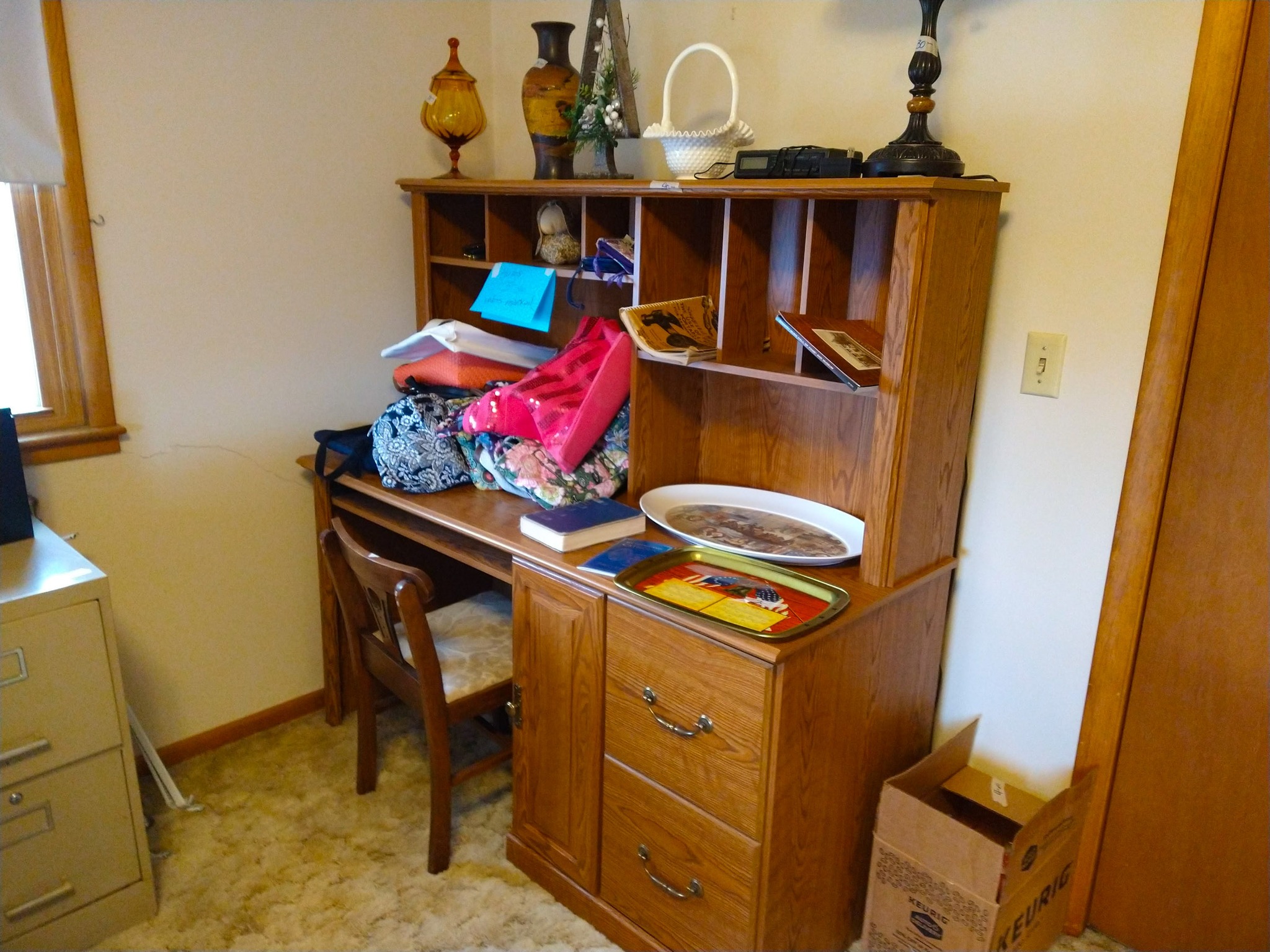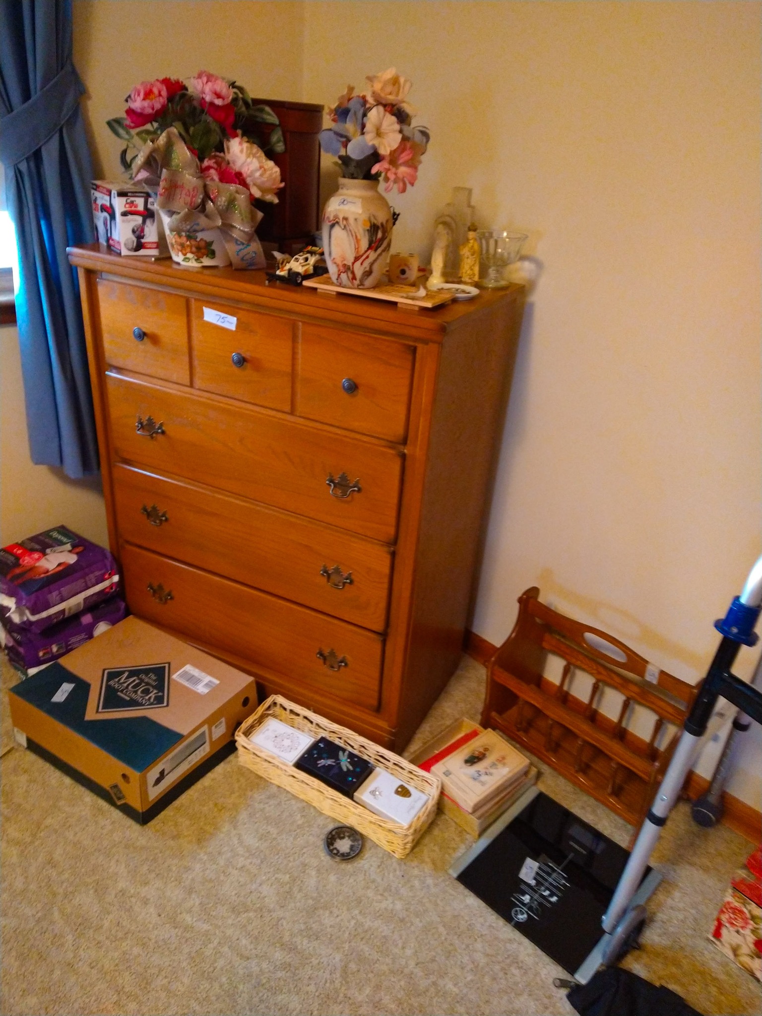 APPLIANCES & FURNITURE: MAGIC CHEF COUNTER TOP REFRIGERATOR – LG ELECT DRYER – THOMAS THE TRAIN YOUTH BED w/ MATT – CHILDS ROCKER – TWIN BED FRAME – TWIN MATTRESS – CANNON BALL QUEEN BED FRAME – LADDER BACK SIDE CHAIRS w/ RATTAN SEATS – NICE 4 DRAWER CHEST – MAGAZINE RACK – TABLE LAMPS – LARGE COMPUTER DESK – METAL LAMP w/ GLASS SHADE – CLEAN QUEEN BED w/ BXSPGS, MATTRESS w/ WOOD HEADBOARD- LARGE WOOD GLIDER ROCKER – 10 DRAWER DRESSER w/ MIRROR – 4 DRAWER DESK – ADJ EXECUTIVE DESK CHAIR – FULL BED w/ BXSPGS, MATTRESS, WOOD HEADBOARD – 6 DRAWER DRESSER w/ MIRROR – DRESSER LAMPS – 2 DRAWER WOOD FILE CABINET – MATCHING LAMP TABLES w/ DRAWERS – WALL MIRRORS – CLEAN FLEXSTEEL 3 CUSHION SOFA – PICTURES & FRAMES – VIZIO 46" TV w/ REMOTE – HALL TABLE – STAGE COACH TV LAMP – METAL FRAME CHAIR w/ LEATHER SEAT – CLEAN LAZY BOY ROCKER RECLINER – HASSOCK – 4 DRAWER WOOD FILE CABINET – NICE WOOD DINING TABLE, 2 LEAVES, 4 CHAIRS – LANE CEDAR CHEST – TRONICS HUMIDIFIER – WOOD BENCH – SMALL ELECT FAN – LARGE CEDAR CHEST – TWIN BED & BX SPGS – LAKEWOOD SIDE CHAIR – 2 DRAWER WOOD BUFFET – SHARK NAVIGATOR LIFT AWAY VACUM – SINGER PORT ELECT SEWING MACHINE w/ CASE – LAMP TABLE – NICE LANE CEDAR CHEST w/ TRAY – CORNER LAMP TABLE – 2 DRAWER 2 DOOR BASE CABINET – METAL CLOTHES RACK ON WHEELS – 2 DRAWER METAL FILE CABINET – CLEAN QUEEN BED, BX SPGS, MATT, HEADBOARD – NICE OAK 5 DRAWER. 1 DOOR CHEST – HAMILTON BEACH MICROWAVE – 6 DRAWER DESK –