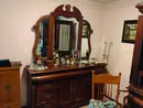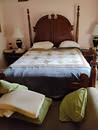 • Mahogany Finish Queen Size 4-Post Bed with Tall Chest of Drawers, Dresser with Mirror, Night Stands (very massive set)
