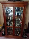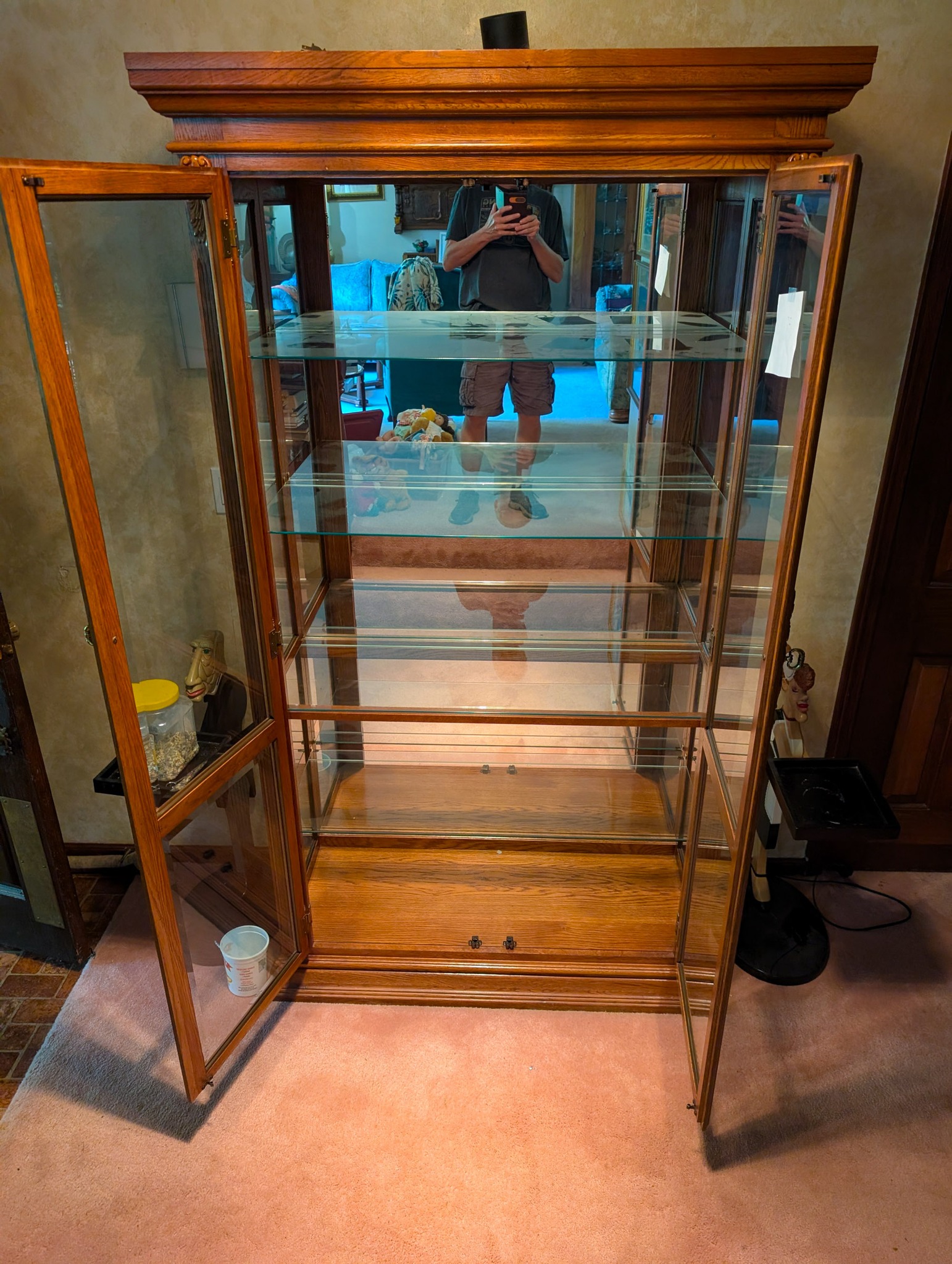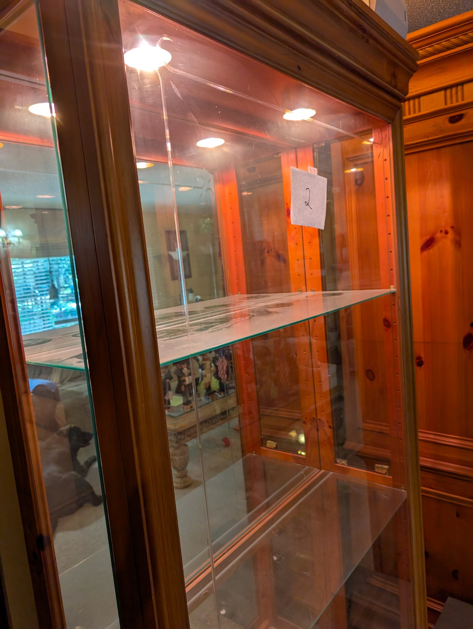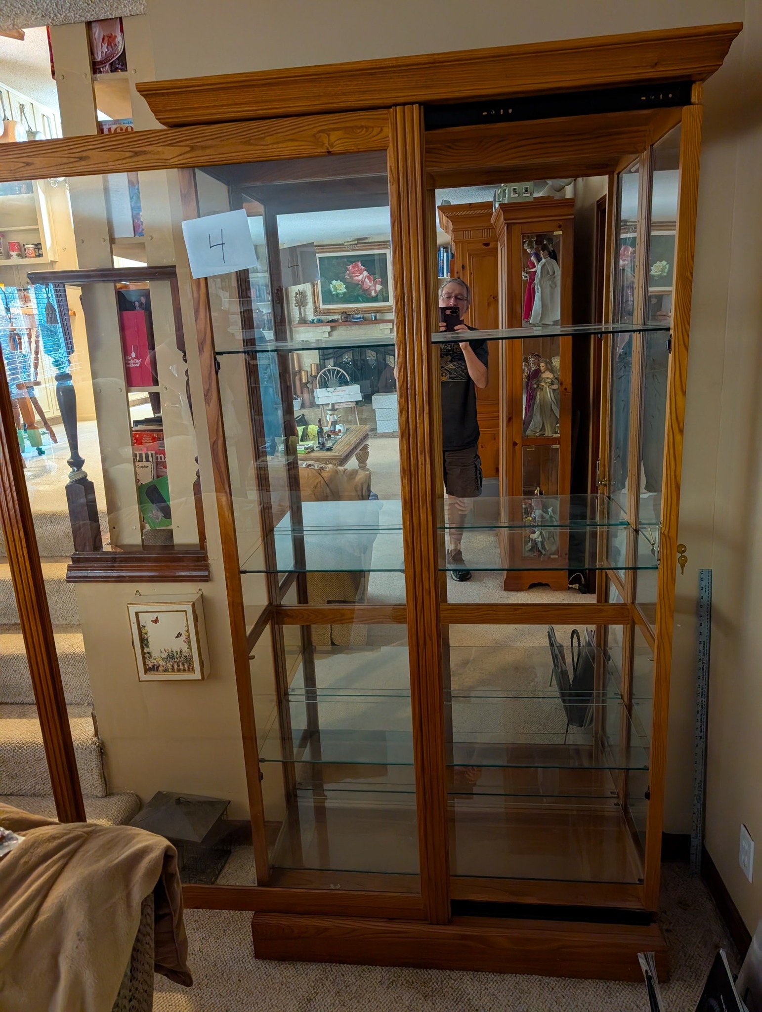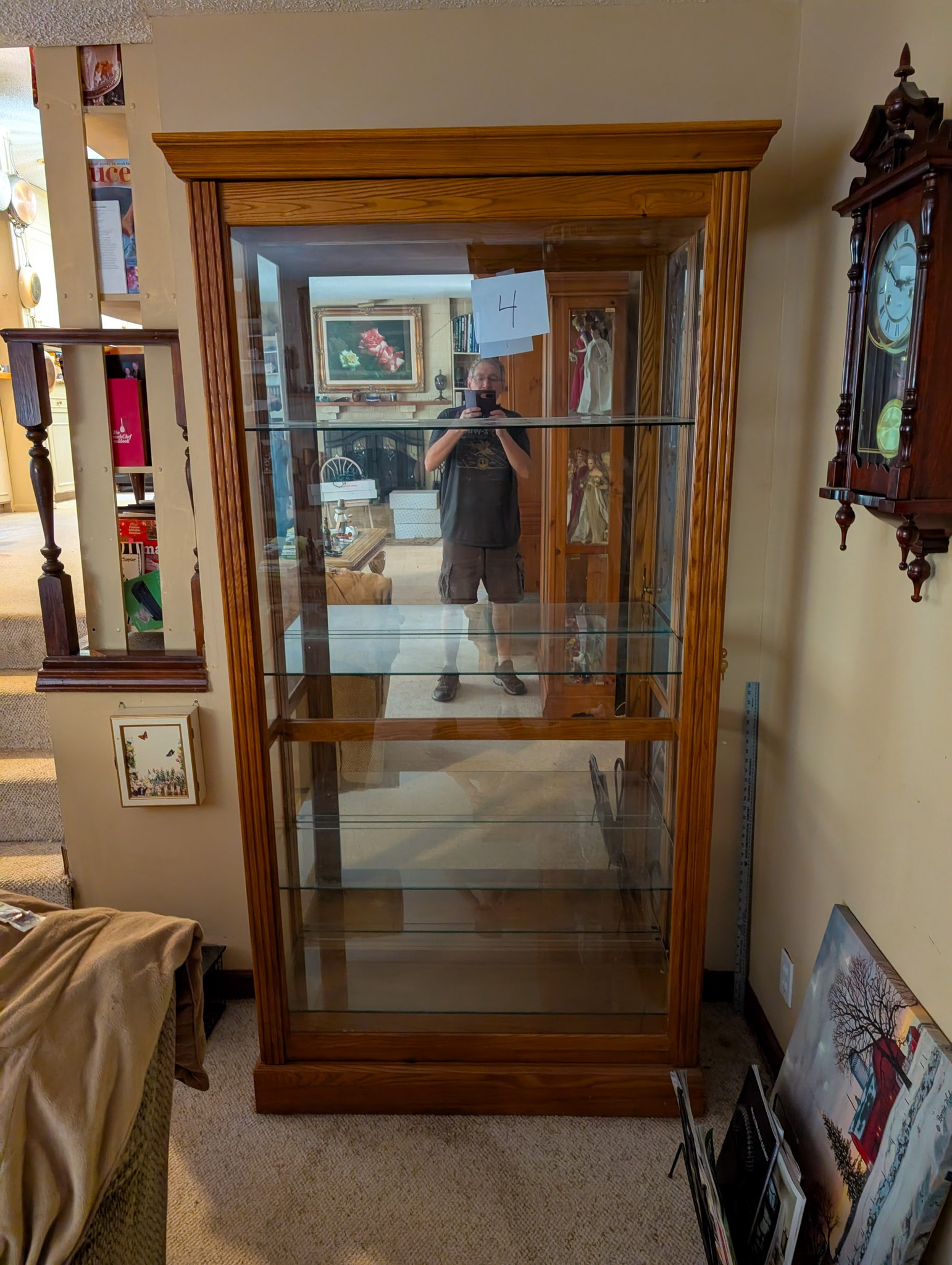 • (4) Large Glass Display Cabinets with Mirrored Back, Pine & Oak