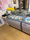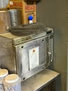 GE meat slicer; Large stock pots; Stainless pans; Warmer trays; 5 Large GE chest freezers (like new); 2 large Avantco ice cream dipping cabinet (like new); 1 smaller Avantco ice cream dipping cabinet (like new); Artic Air commercial chiller (like new); Several stainless tables; 3 hole commercial sauce warmer (like new); Avamix freestanding spindle drink mixers (like new); Kitchen itemizers; Kelvinator upright freezer; Several boxes of cups; Electric ice cream cone maker; Coffee maker; Tables; Chairs; Booth seats; Maytag oven; Maytag side by side w/ water & ice in door; Upright pop cooler; Pepsi upright cooler; Small chest freezer; GE fridge; Amana convection express oven; Commercial griddle; Commercial warmer