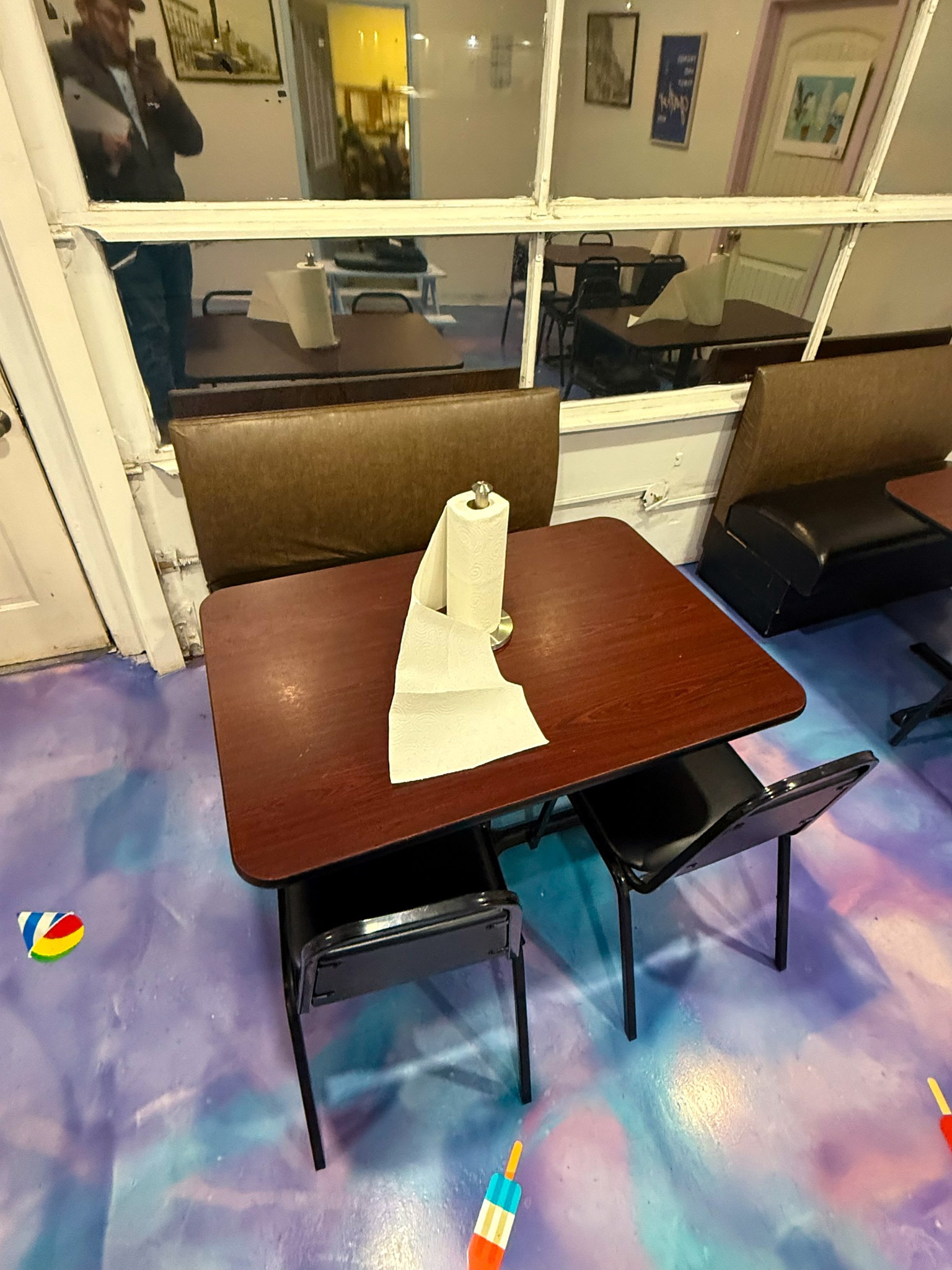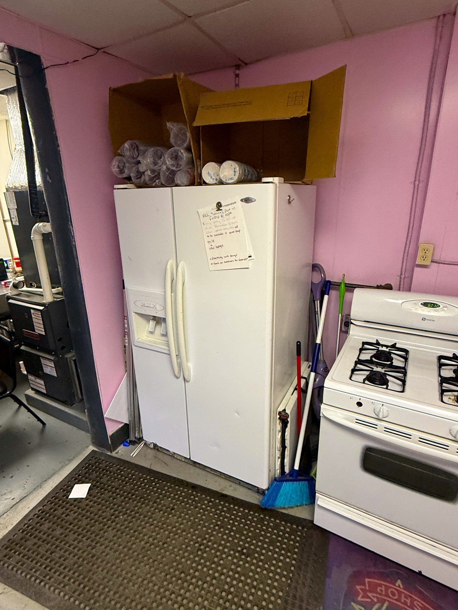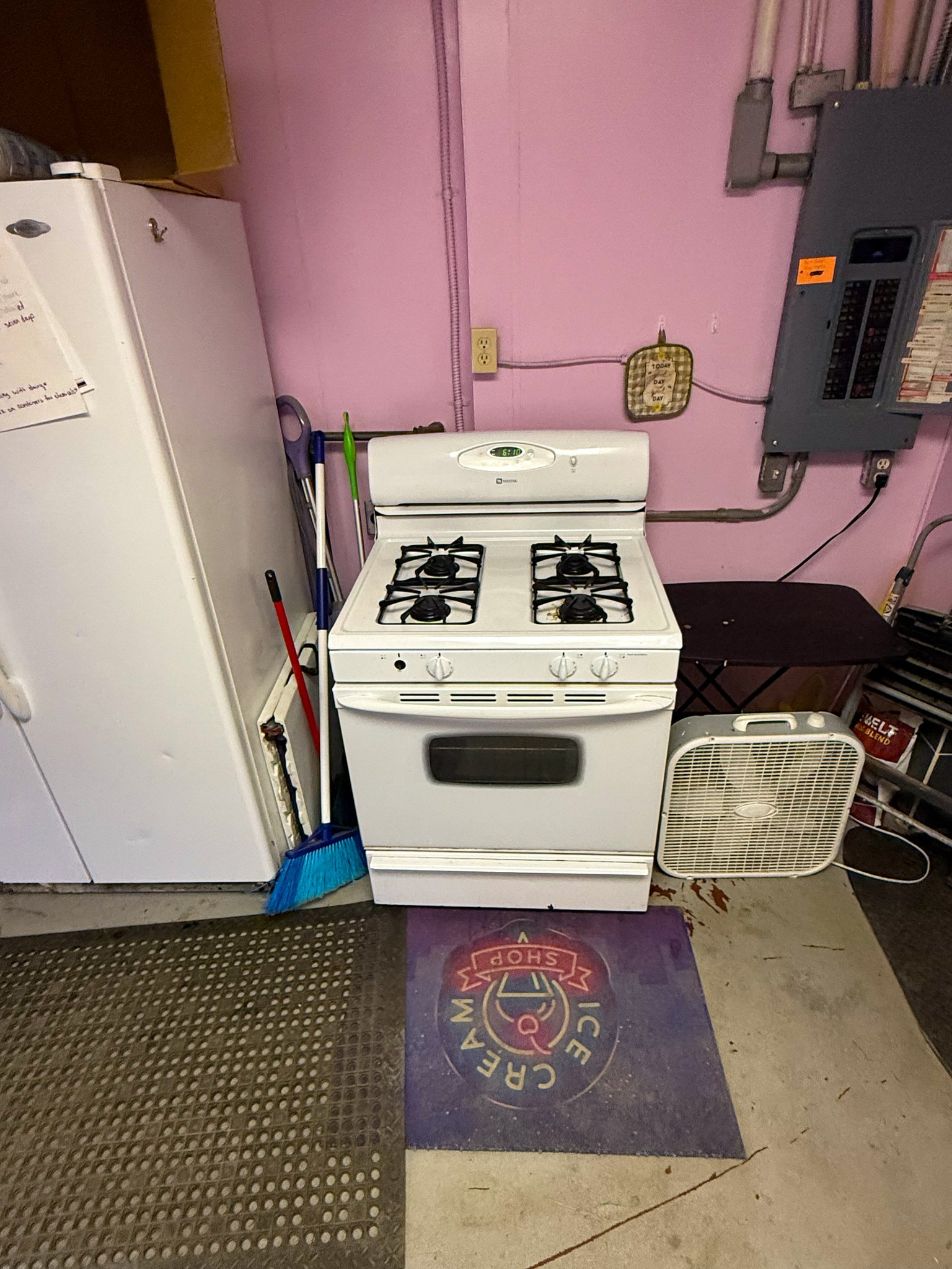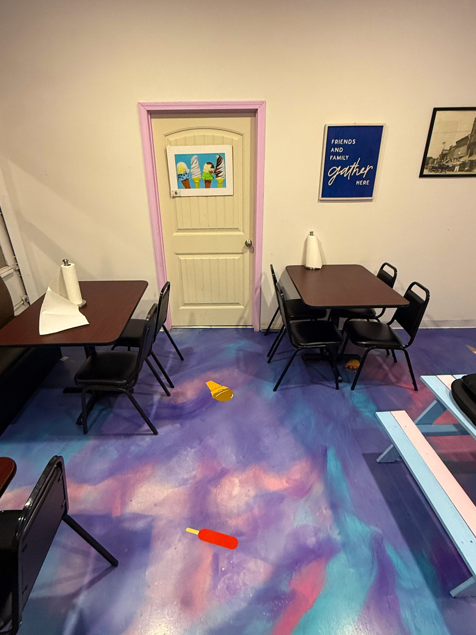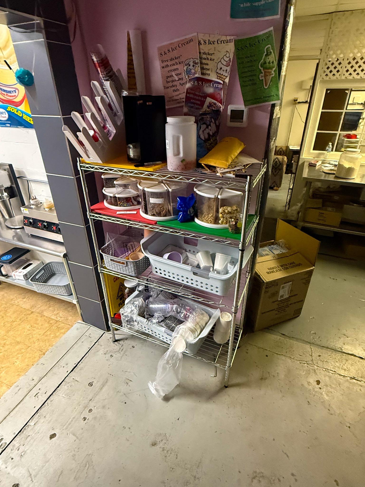 GE meat slicer; Large stock pots; Stainless pans; Warmer trays; 5 Large GE chest freezers (like new); 2 large Avantco ice cream dipping cabinet (like new); 1 smaller Avantco ice cream dipping cabinet (like new); Artic Air commercial chiller (like new); Several stainless tables; 3 hole commercial sauce warmer (like new); Avamix freestanding spindle drink mixers (like new); Kitchen itemizers; Kelvinator upright freezer; Several boxes of cups; Electric ice cream cone maker; Coffee maker; Tables; Chairs; Booth seats; Maytag oven; Maytag side by side w/ water & ice in door; Upright pop cooler; Pepsi upright cooler; Small chest freezer; GE fridge; Amana convection express oven; Commercial griddle; Commercial warmer