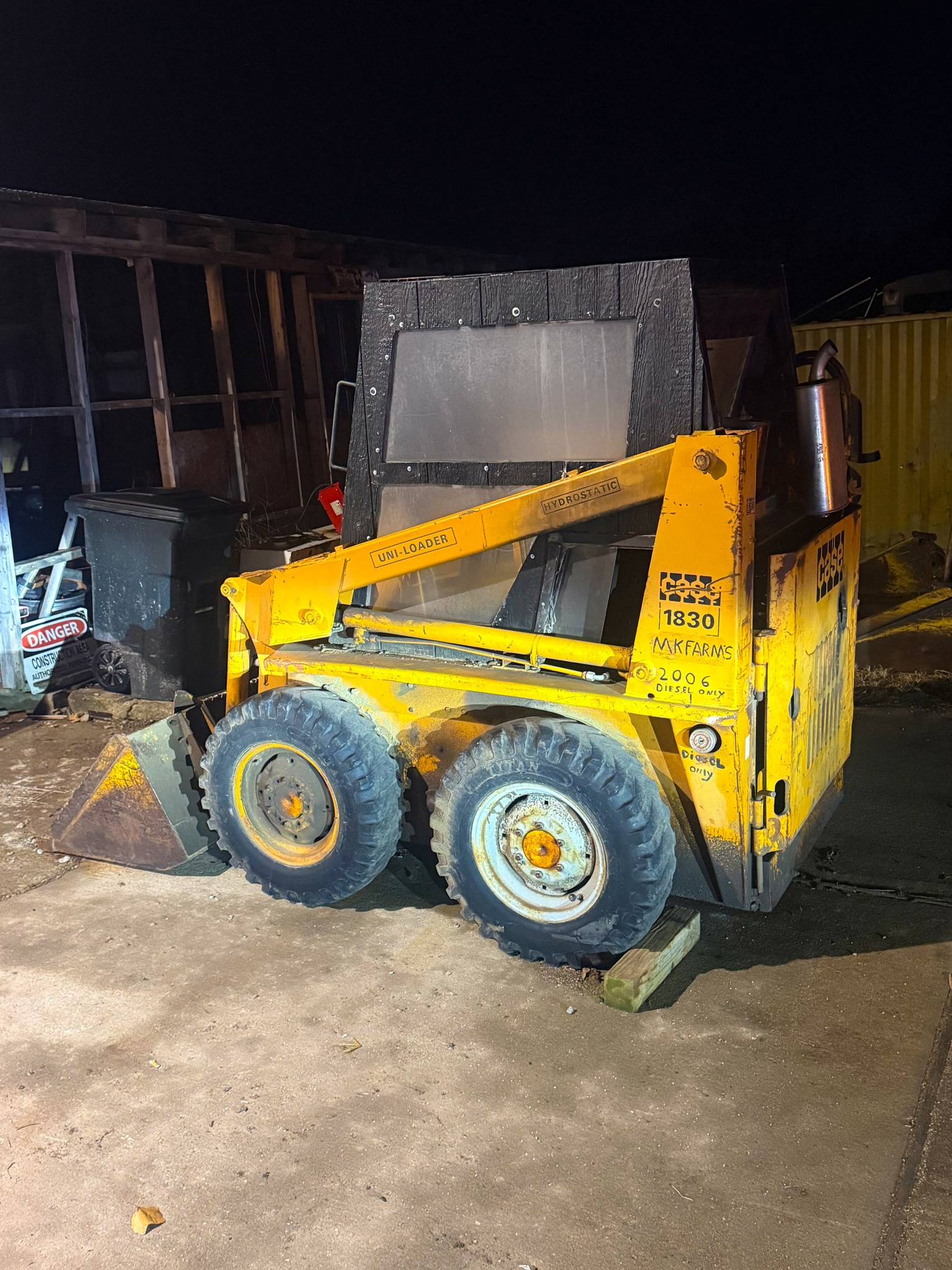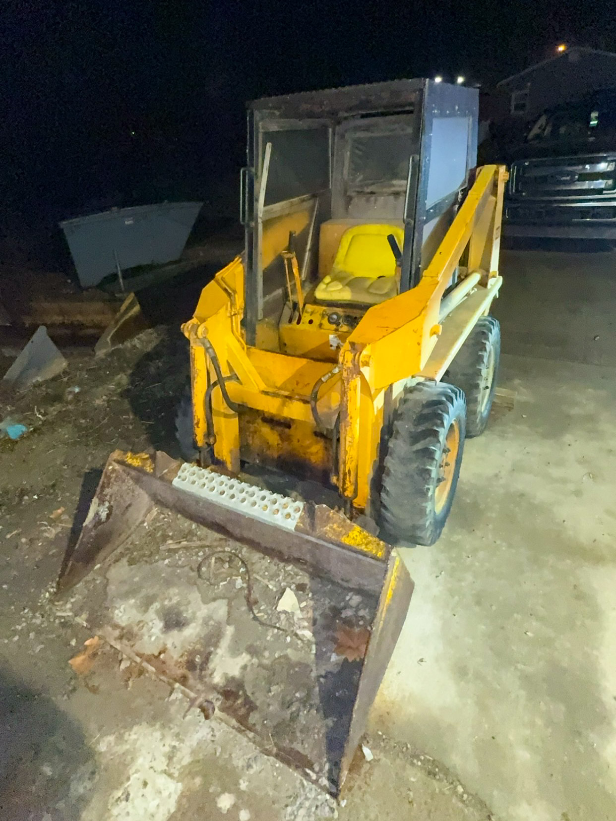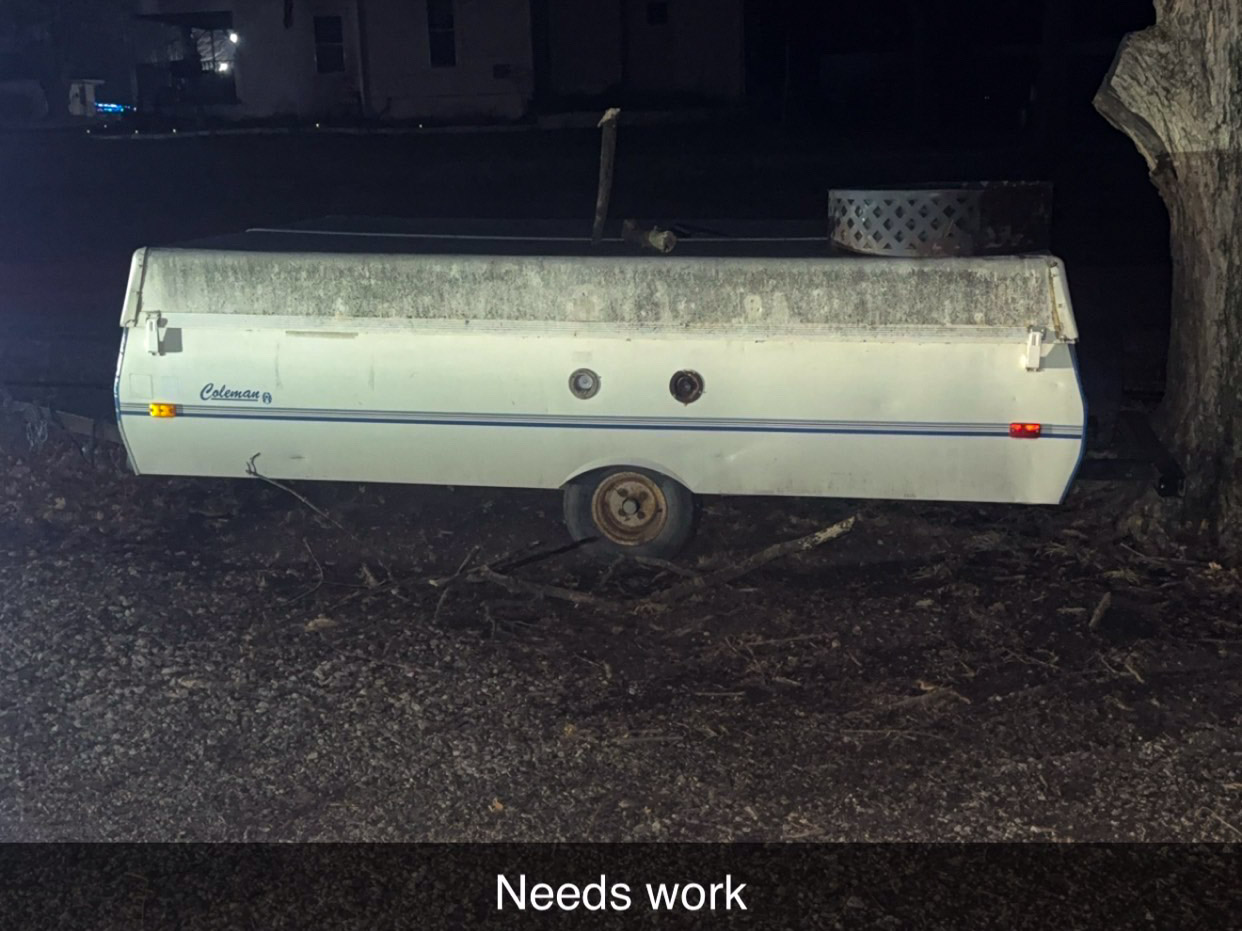 1984 Pontiac Firebird (2.5 Iron duke engine, needs put back in, engine gone through, 4 spd on floor); Yamaha wave runner w/ trailer; Tow behind storage trailer; 1972 Western gas powered golf cart (runs); Kawaski mule side by side w/ cab (runs); Lawn mower w/ jet ski on top (drivable); Gravely 2350 zero turn mower; Case 1830 skid steer (one side stuck in reverse); Large pontoon boat w/ 200hp Mercury; Pop up camper (mostly stripped); V Lite bumper pull camper (one slide out, half ton towable, nice)