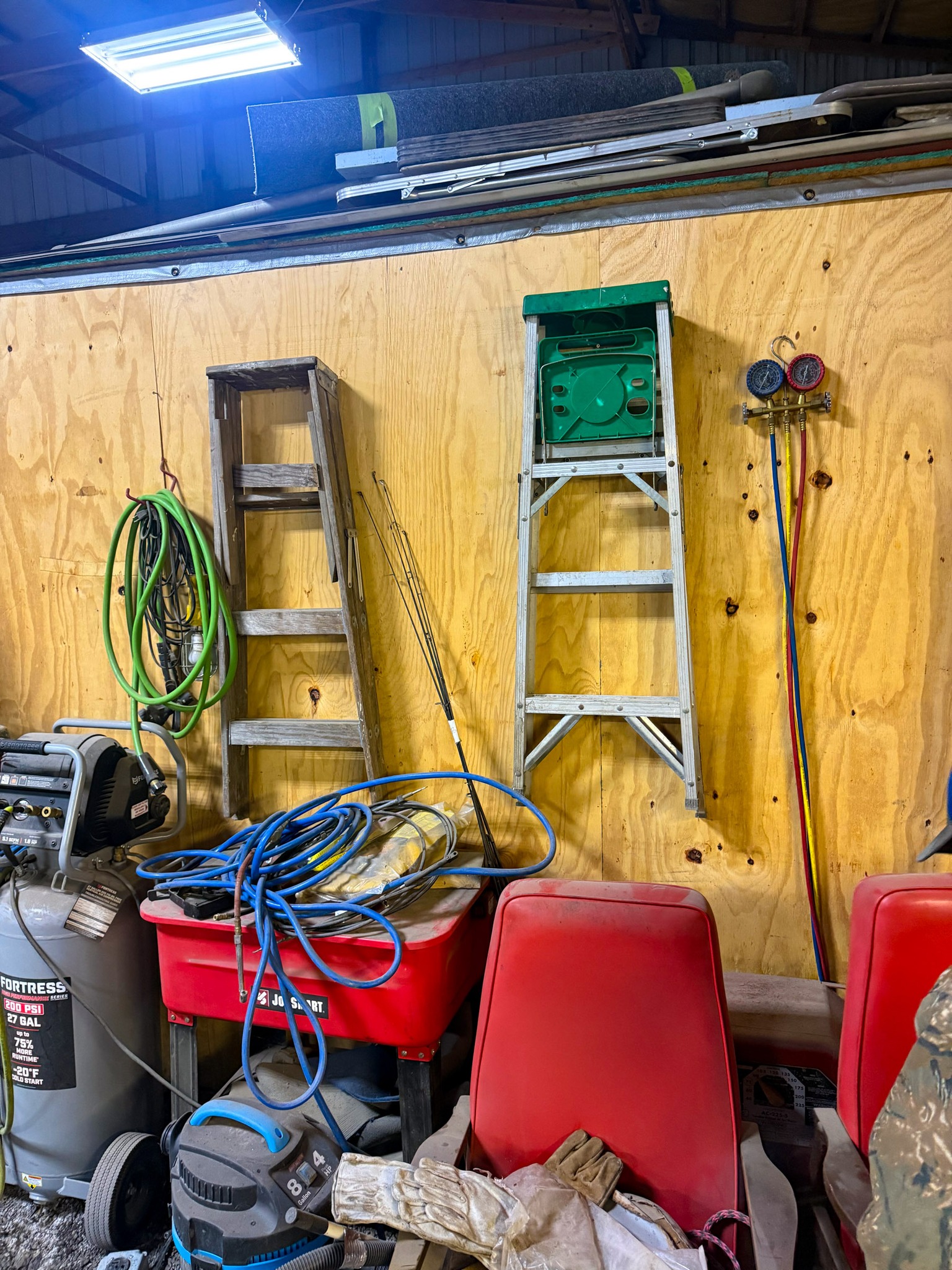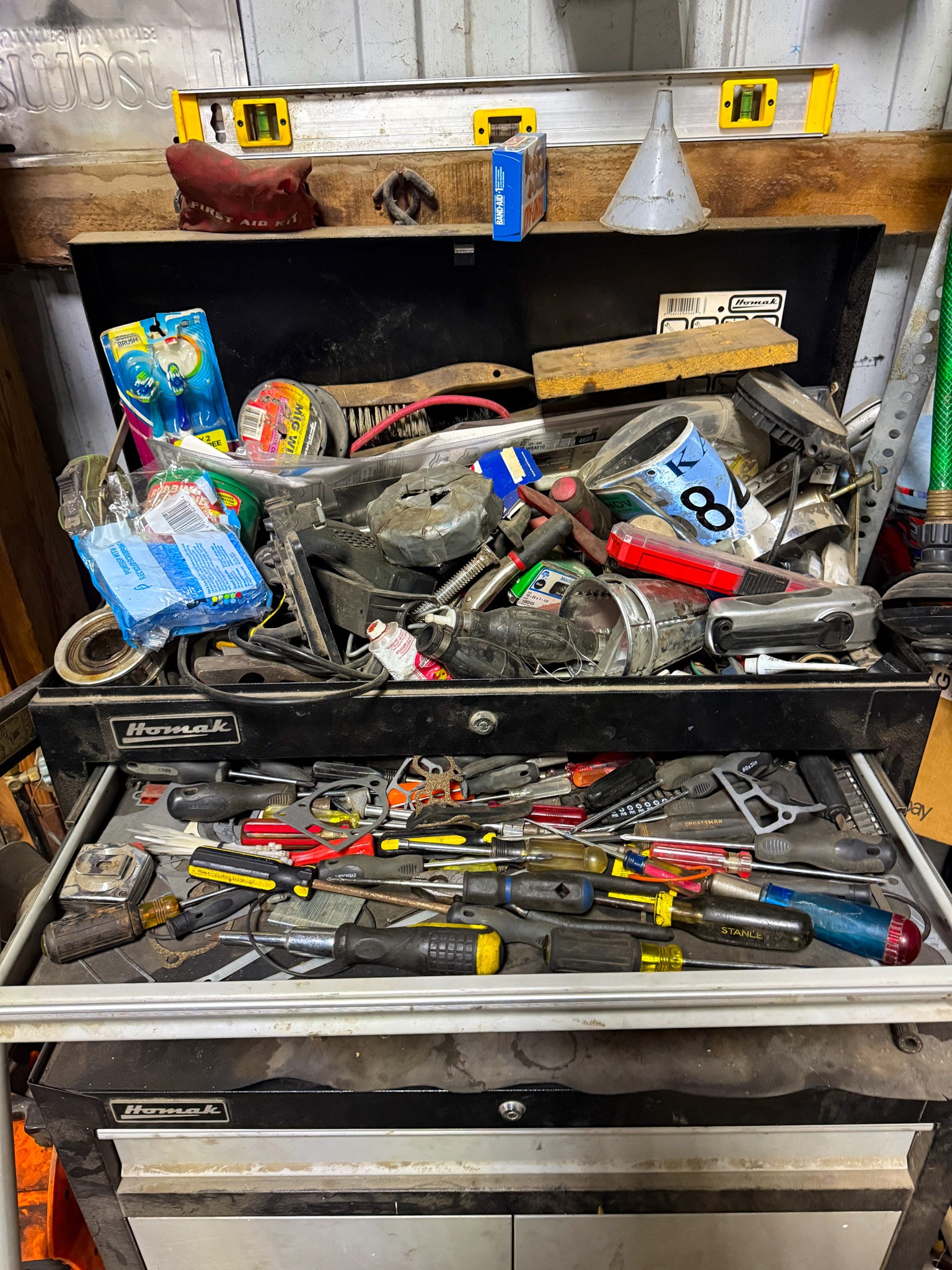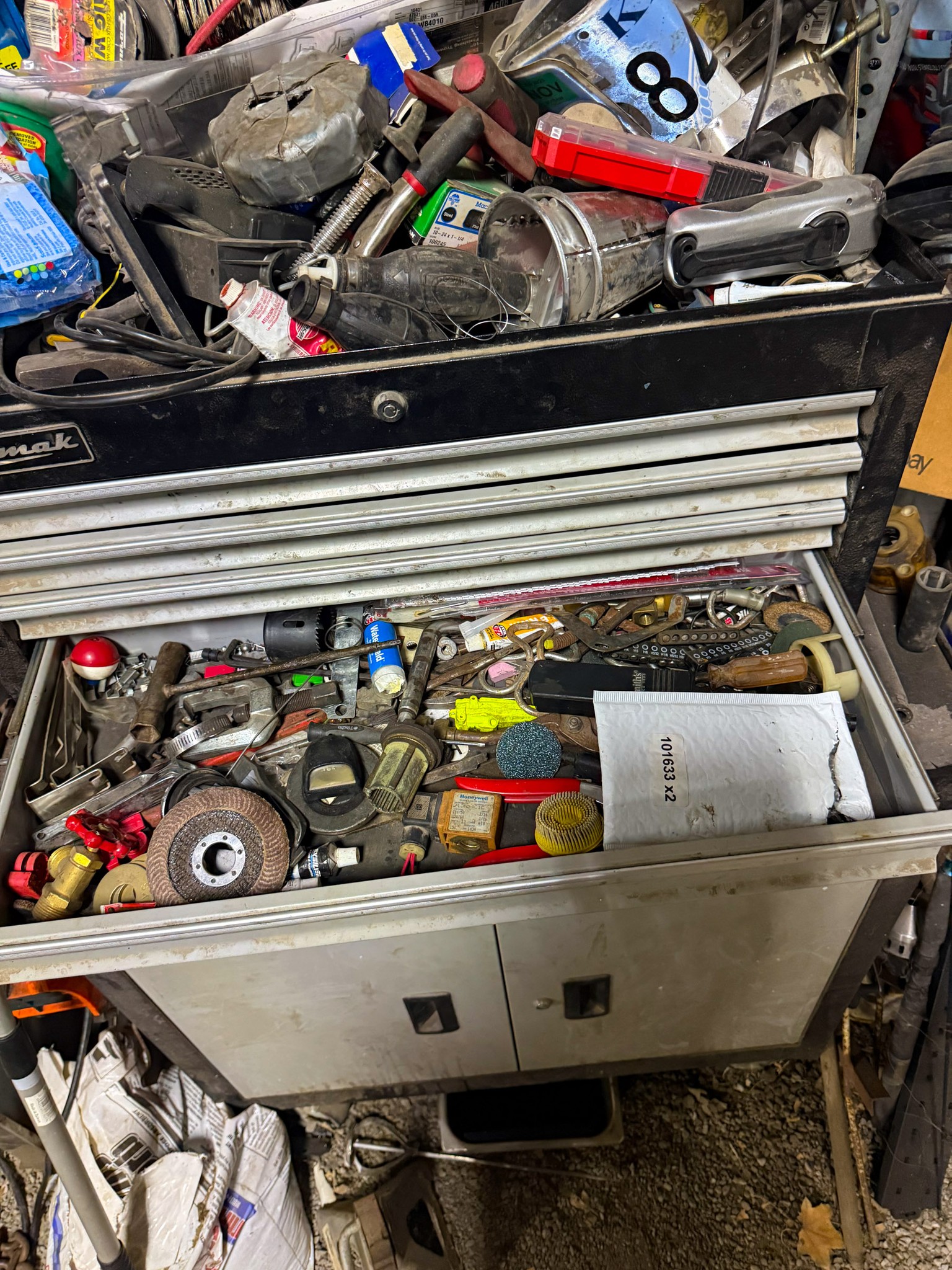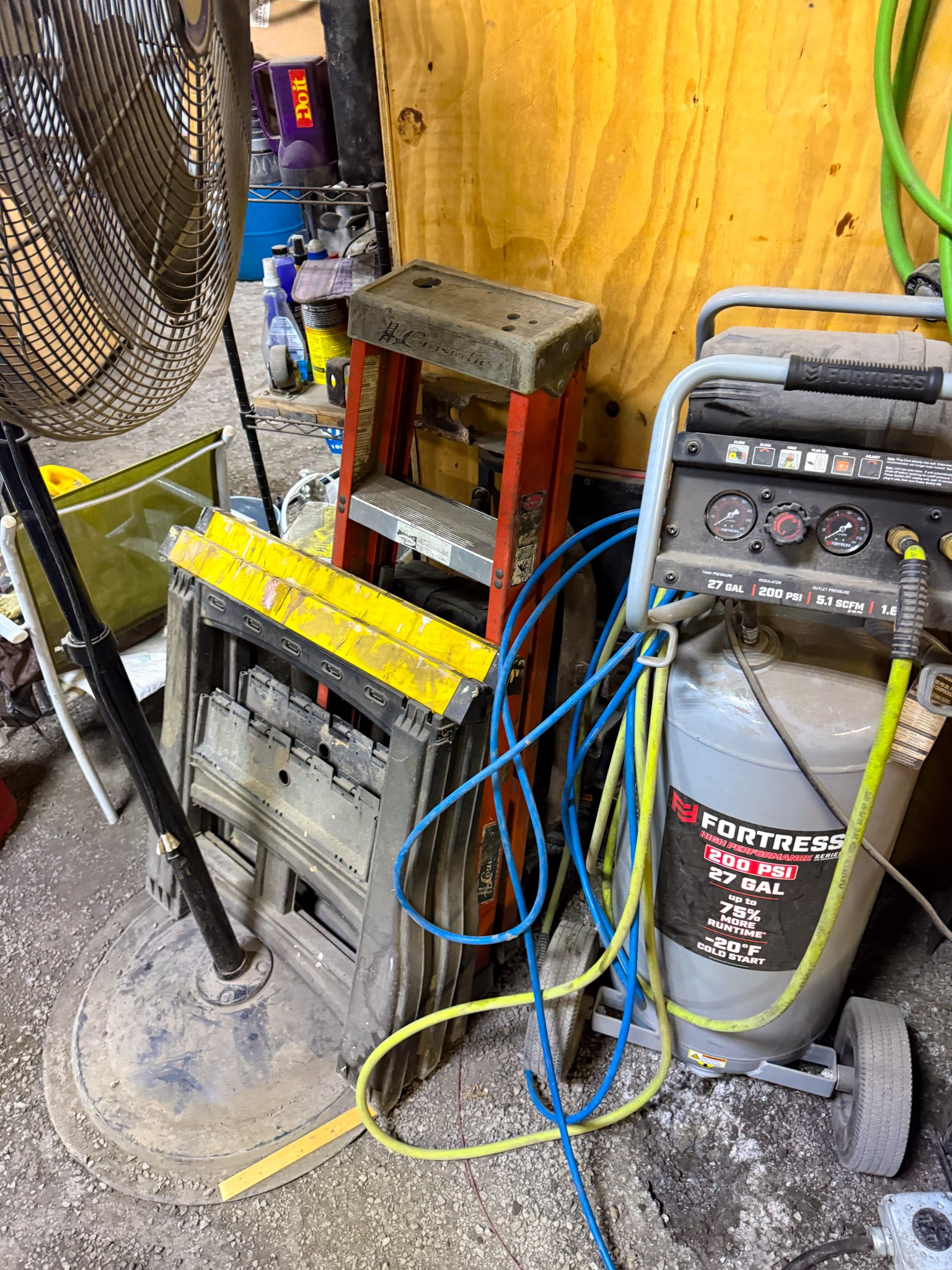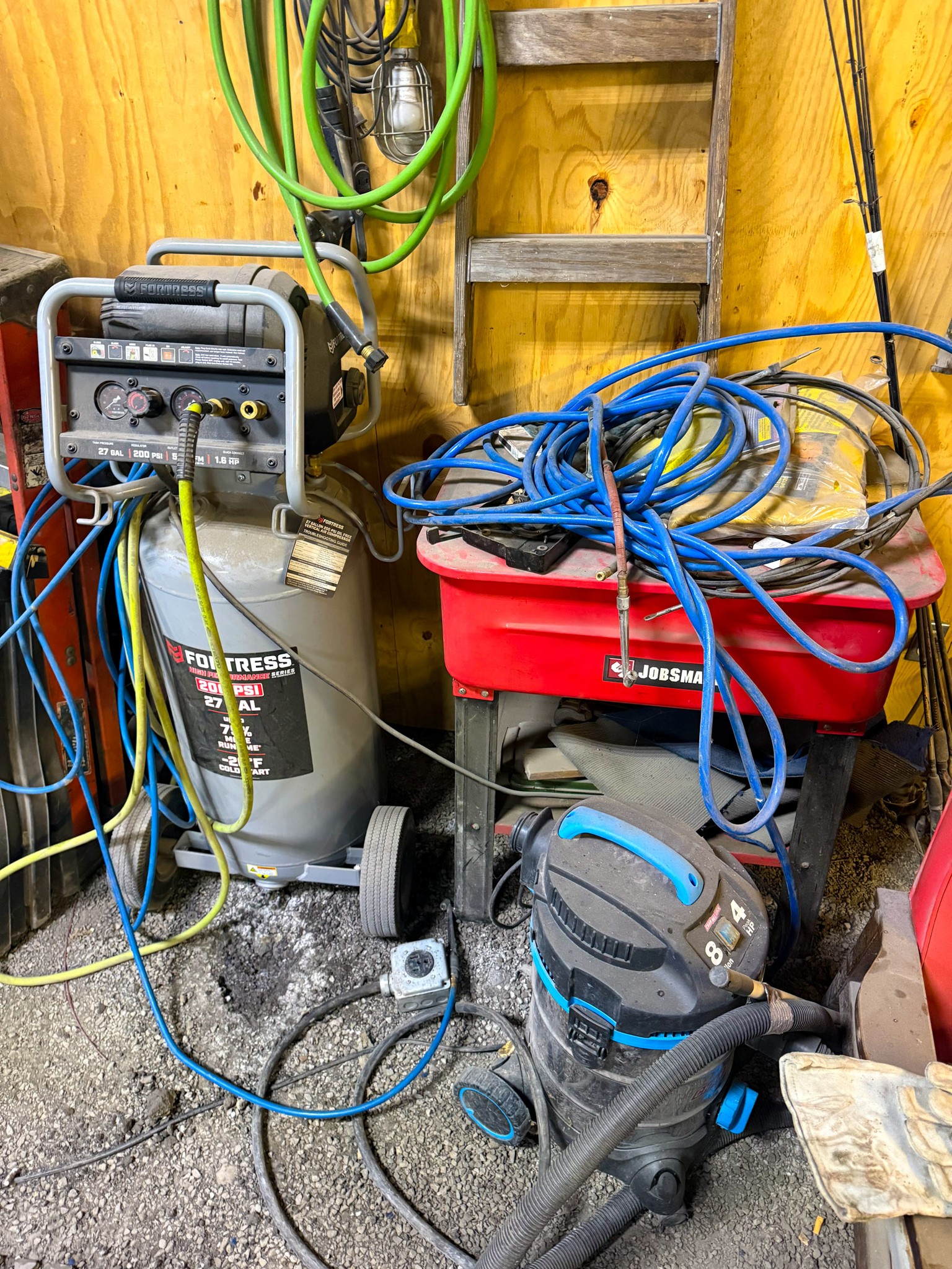 New shop lights; Small cement mixer; Large t square; Lawn chair; Assortment of hand tools; Aluminum receiver hitch carrier; Milwaukee M18 batteries; Milwaukee M18 tools (weed eater, impacts, etc.); Large assortment of sockets; Extensions; Ratchets; Homak tool box; Homak stack tool box; Axle socket set; Harmonica 01424541* / +- / 8*9balancer; Log chain; Dewalt power tools; Makita power tools; Pet cage; Large Milwaukee buffer; 3000 Watt generator; 10,000 watt generator; Bike w/ motor; Other bikes; Bike rack; Assortment of scrap iron; Aluminum extension ladder; Few step ladders; Larger cement mixer; Engine lift; Snowblower; Assortment of shop cabinets; Wheel barrow; Floor jacks; Small A-frame; Attic fan; Table saw; Echo chainsaw; 20 pc John Deere metric wrench set; 14pc John Deere SAE wrench set; Bench vice; Work benches; Shop tables; Extension cords; Nuts & bolts; Screws; Misc shop items; Lincoln Arc welder; Jobsmart parts washer; Fortress 27 gallon air compressor on wheels; Air hose; Shop vac; Gauge sets; Gas cans; Round picnic table; Small torch set; Cut 50-F plasma cutter; Air bubble; Saw horses; Large shop fans; Smaller fans; Shop heaters; Heavy aluminum loading ramps; Screwdrivers; Nut drivers; Pliers; Channel locks; Drill bits; Files; Chisels; Pipe wrenches; Crescent wrenches; Pipe cutters; Washer fluid; Oils; Makita grinder; Assortment of power tools; Packard floor type drill press; Drill press vice; Shop stools; Electrical supplies; Large battery charger; Propane bottles; Sets of wheels; Fimco pull behind sprayer; Life jackets; Pro Fitter shop heater; Shop lights; Jack stands