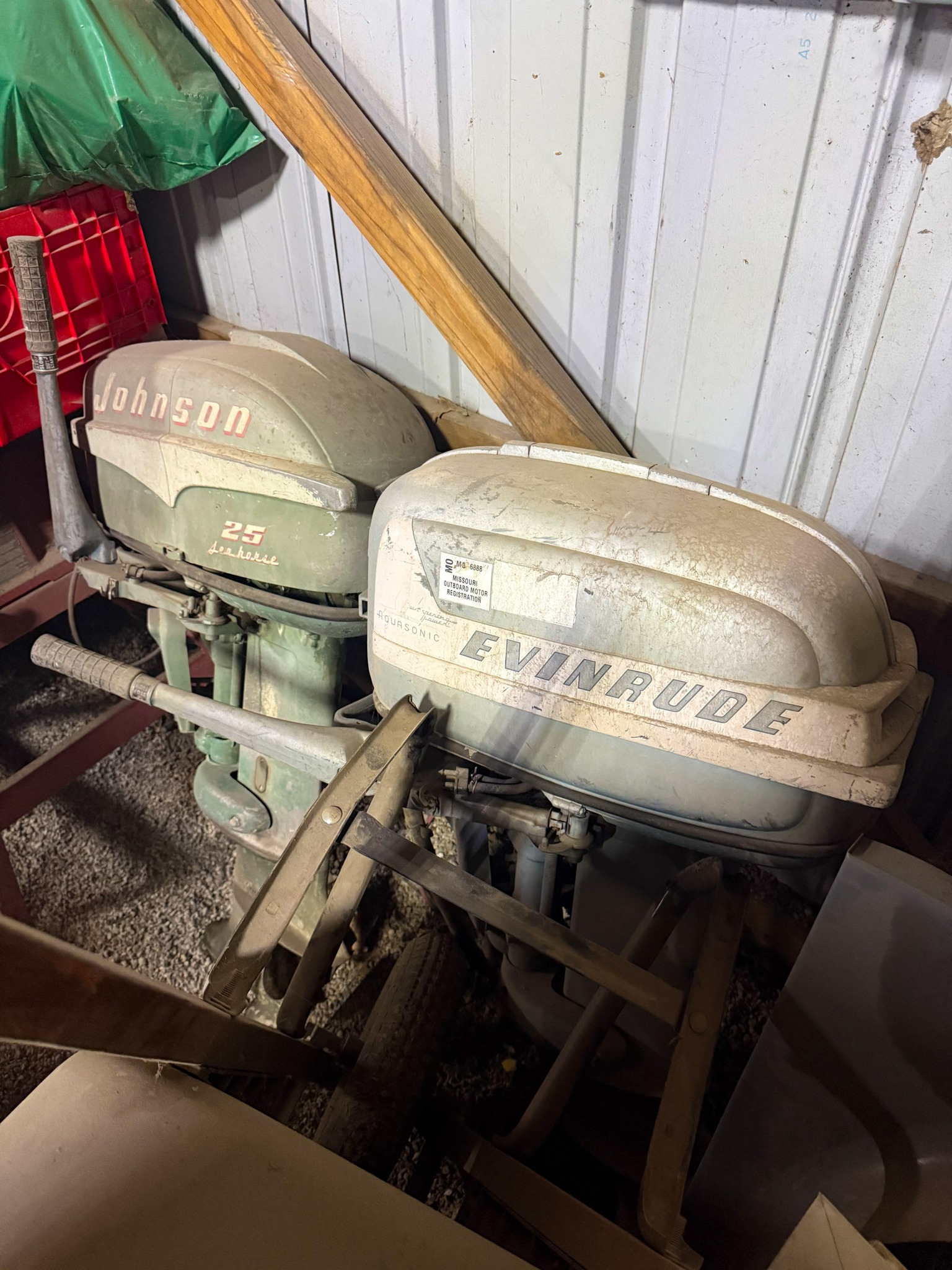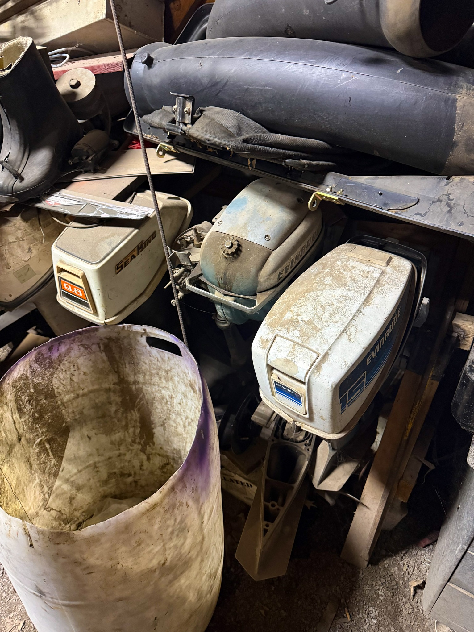 Evinrude 15; Sea King 9.6; Evinrude 25; Johnson 25; 9.5HP engine; Smaller Evinrude; Seahorse engine; Evinrude 100; Mercury 50 (parts); Larger Evinrude engine; Other smaller engines not listed