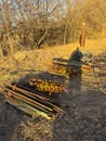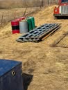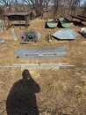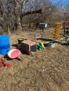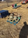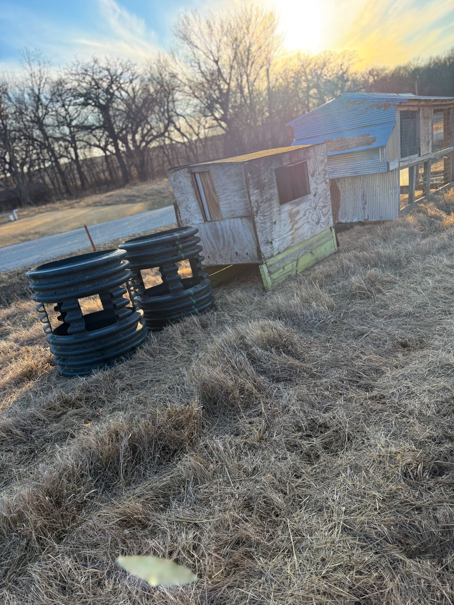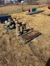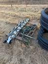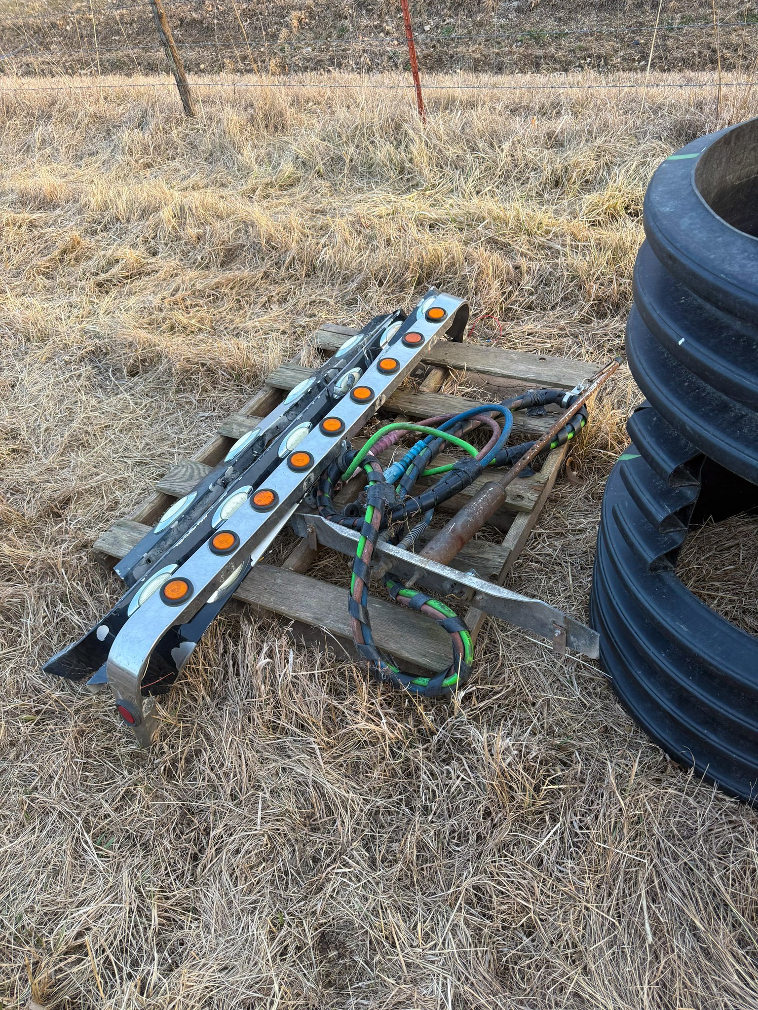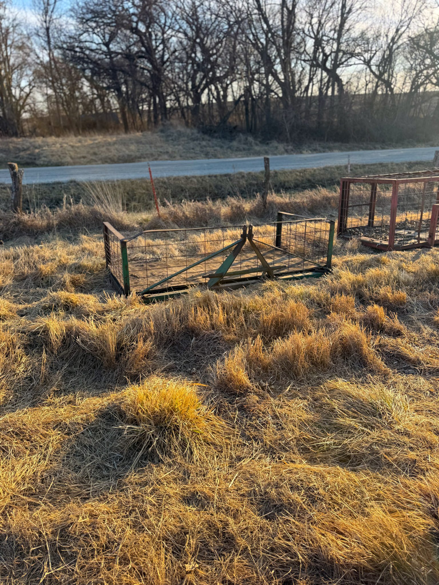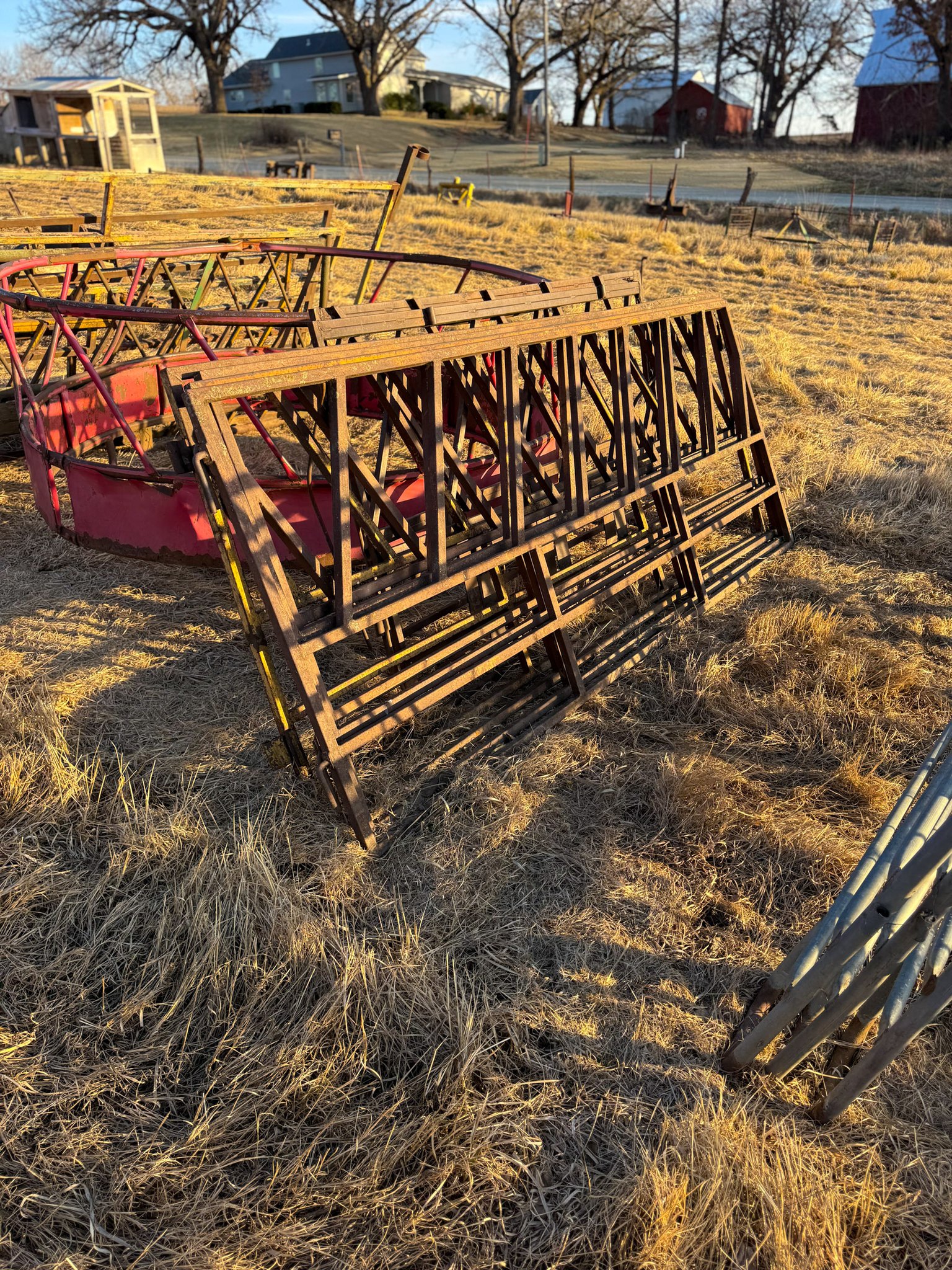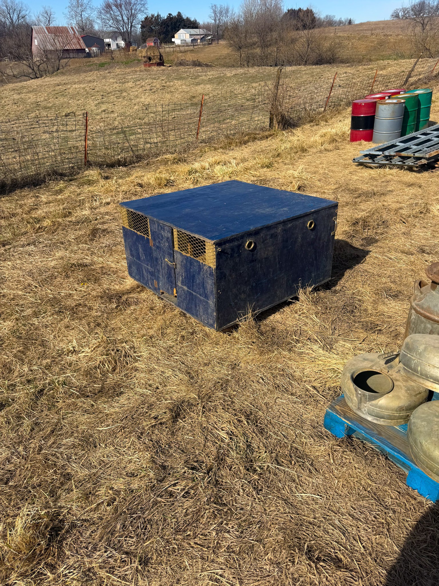 Assortment of pipe gates; Assortment of fencing supplies; Round bale feeders; Square bale feeders; Small livestock feeders; Concrete bunk feeders; Cattle feed bunks; Calf / small animal chute; Hog feeders; Several farrowing crates; Large pig feeder; Vet supplies; Cattle pour on; Hot shot; Boom sprayer for UTV; ATV sprayers; ATV electric seeder; PTO seeder; Small garden disc; Fuel barrels; Wheels & tires; Steel barrels; Metal barrels; Picnic tables; Fiberglass extension ladder; Metal tool cabinets; AC / DC welder; Drill press; Log chains; Stihl weedeaters; Semi plugs & lights; John Deere yard cart; Garden hoses; Dog box; Pet crate; Assortment of misc. tin; Assortment of hand tools; Vises; Assortment of wrenches; Bolts; Tool box; Assortment of jacks; Holland grill; Patio table; Crate full of Oak firewood; 3 big bales of brome / grass mix hay; Homemade deer blind; 6ft by 12 ft chicken run w/ nesting area; Elevator feeders; Electric fence post; T-post; Barbwire; Wood wagon tongues; Plastic tubs; Small creep feeder; Wheel barrow; Iron wheels; Antique plows; Corral panels; Concrete parking barriers; Cinder blocks
