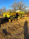 IH horse drawn mower (one wheel broke); Corn shellers; Dairy tub on stand; IH cream separators; Milk cans; Large Shell gas station sign; Oil cans; Assortment of metal signs; Assortment of other primitive items;