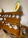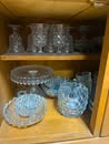 End tables; Living room set; Sofa; Coffee table; Flat screen TV; Sofa table; Small chest freezer; Storage cabinets; Plastic shelf units; Fostoria glass; Dish sets; Tea cart; Assortment of glassware; Gossip bench; Floor lamps; Table lamps; Assortment of oil lamps; Recliners; Office desk; Small desk; Wood chairs; Small china cabinet; Corner shelf; Assortment of office supplies; Wood chairs; Printers; Paper shredder; Sewing machine; Footstools; Mixer; Glass dishes; Canister sets; Assortment of pictures; Birdhouses; Large mirror table; Folding chair; Exercise trampoline; Assortment of exercise equipment items; Area rugs; Small rugs; Holiday decorations; Quilt rack; Dressers; Luggage; Green glassware; Antique wall phone; Outdoor patio furniture; Fall items; Christmas items; Amber glass; Large assortment of household items; Office chairs; File cabinets; Large assortment of other office furniture items; Afghans; Large assortment of misc items; Large standing mirror; Large glass top dining table w/ chairs; TV stand