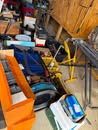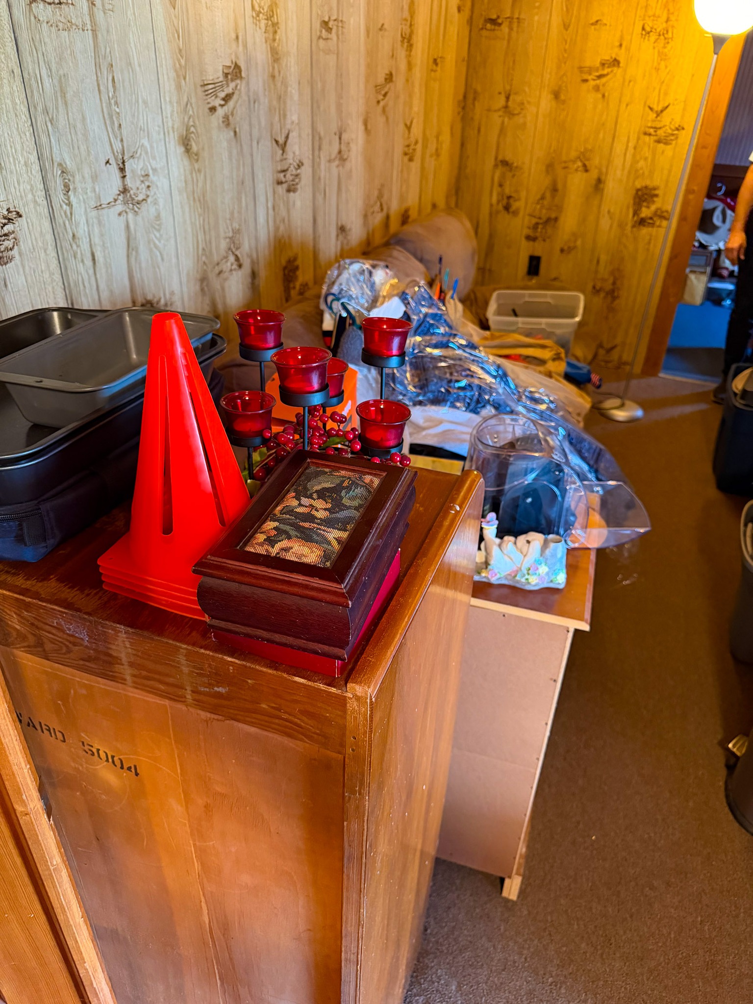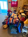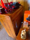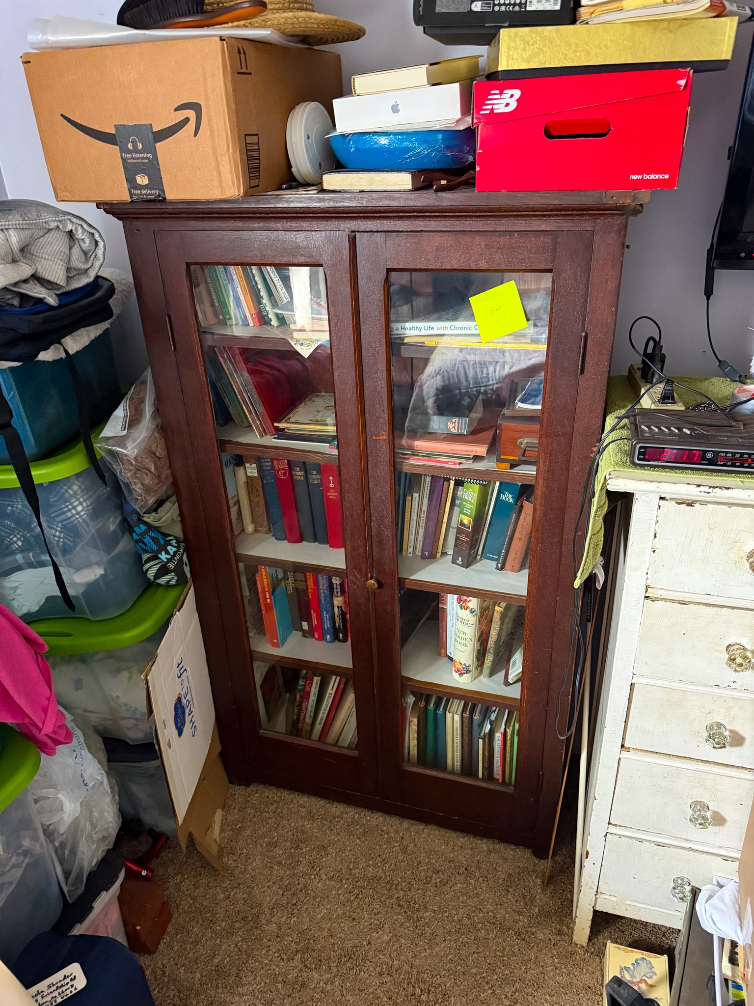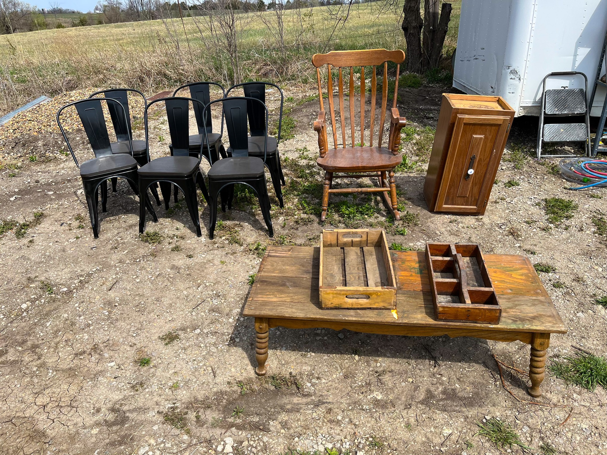 2 large chest freezers; Assortment of costume jewelry; Antique dressers; Gas heater; Cast iron skillert; Muffin pans; Skillets; Pots & pans; Stoneware; Corning ware; Chiefs steins; Green metal cabinets; Enamel pans; Handicapped parking sign; Cast iron legs; Anitque tool carrier; Pop crate; Wood rocker; Retro style metal chairs; Wood cabinet; Coffee table; Antique high wheeled sulky (2 wheel horse cart); Assortment of uranium glassware; Nintendo 64 game console; Nintendo blue remote; Nintendo 64 games (Mario Kart 64, Super Mario 64, Golden Eye 007, Star Wars, Zelda); Metal Coors trash can; Wooden chairs; Few storage cabinets; Nativity set; Wooden ball bats; GE mini fridge; Metal ironing board; VCR / DVD combo; Bakers rack; Storage containers; Bed frames; Heaters; Assortment of kitchen items; Vintage dressers; Candle holders; Baking pans; Assortment of table lamps; Assortment of pictures; Kitchen table w/ chairs; Corner fireplace; Curved curio cabinet; Lighted curio cabinet; End table; Small chest freezer; Small vanity w/ stool; Etched mirrors; Mission oak book shelf w/ glass doors; Antique 4 drawer dresser; Double ironing board