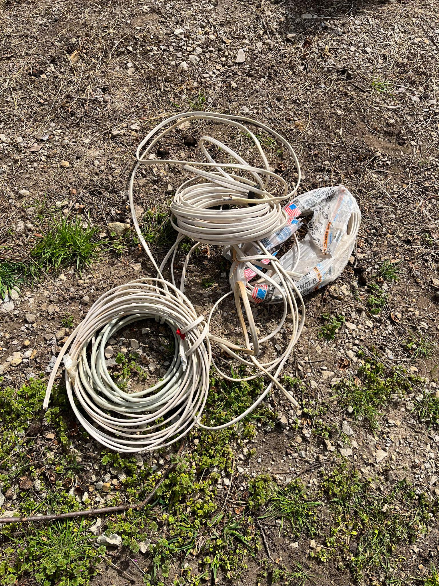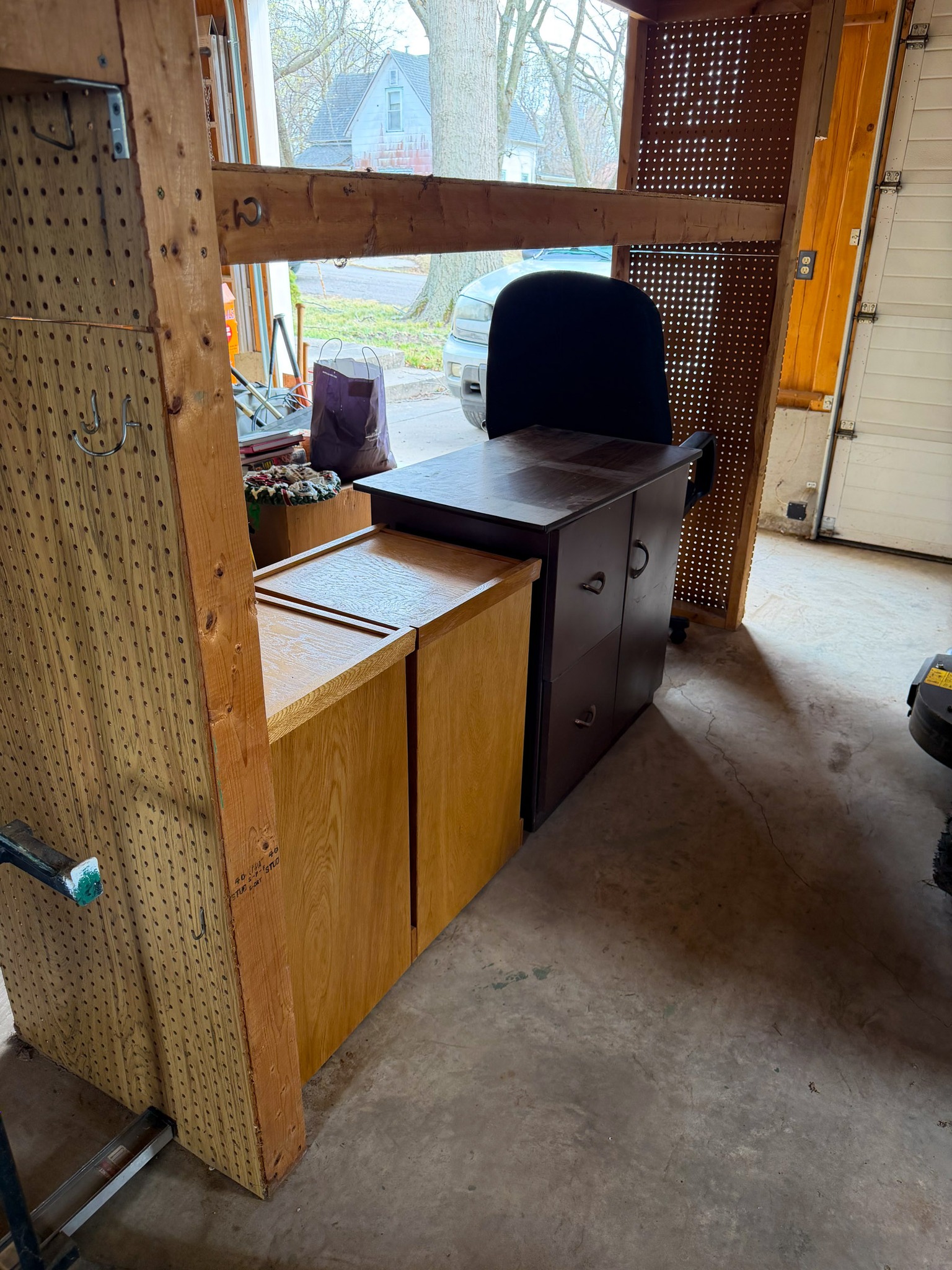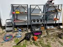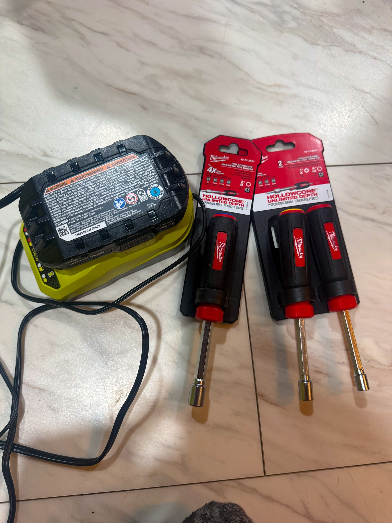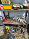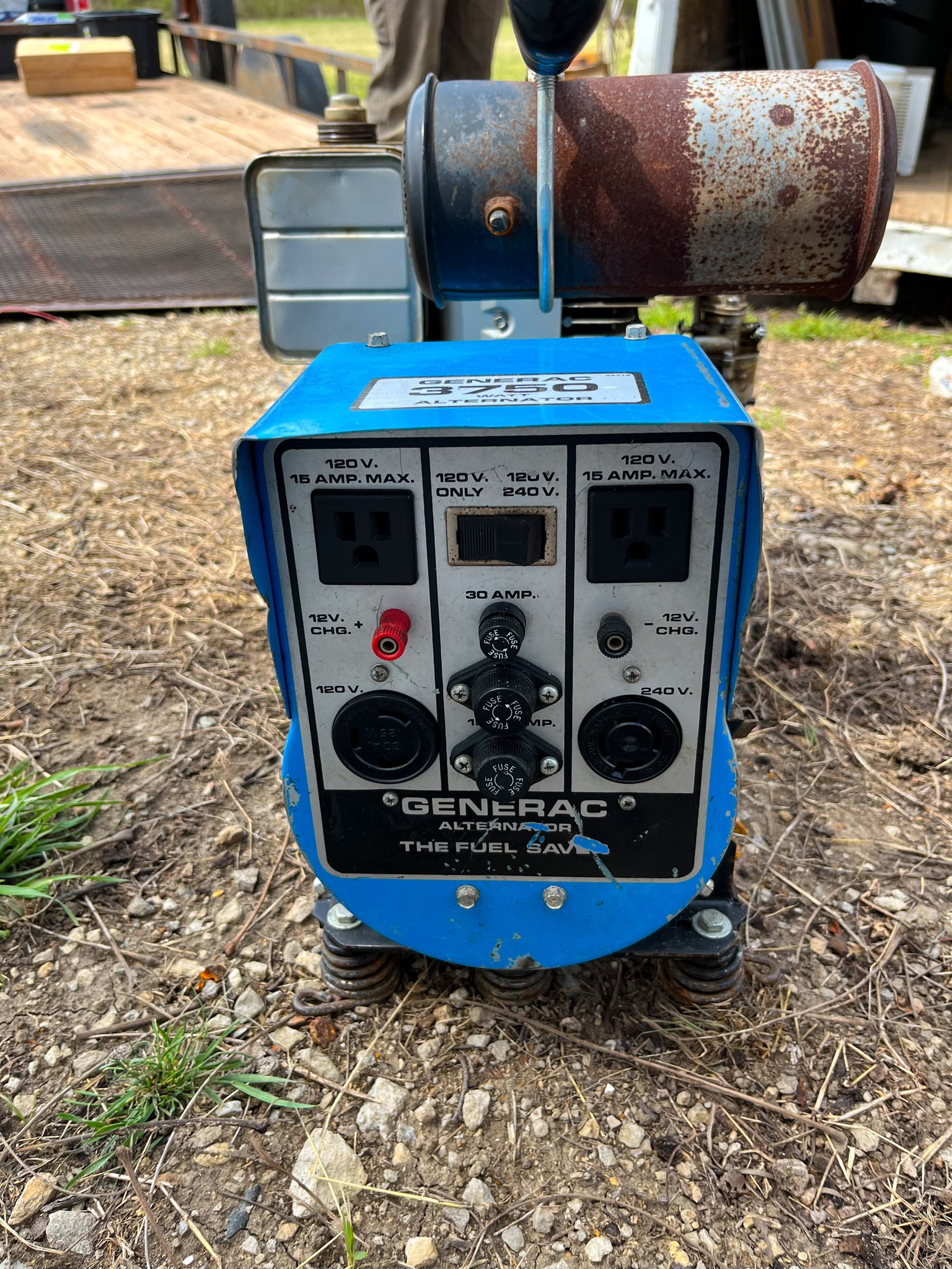 Milwaukee M18 weedeater; Milwaukee nut drivers; Milwaukee M18 flathead grinder; Ryobi one leaf blower; Ryobi one hacksaw; Dewalt 20V max jig saw; Dog house; Jeep tires; Boxes of misc shop supplies; Ladder jacks; Hanging brackets; Recessed lights; Dewalt circular battery saw; Dewalt drill; Torque wrench; Milwaukee charger; Generac 37500 Watt alternator; Rolls of electrical wiring; Floor jack; Trash cans; Golf clubs; Chainsaw; Weedeater; Vice grips; 6in bench grinder w/ lamp; Floor jacks; Propane bottles; Gas cans; B&D battery pruner; Extension cords; Tree trimmers; Small generator; Sprayer tank; Lawn mower jack; Small amount of wire; Nuts & bolts; Assortment of hand tools; Battery charger; Golf clubs; Lawn edging; Shop organizer; Hand saw; Baseballs