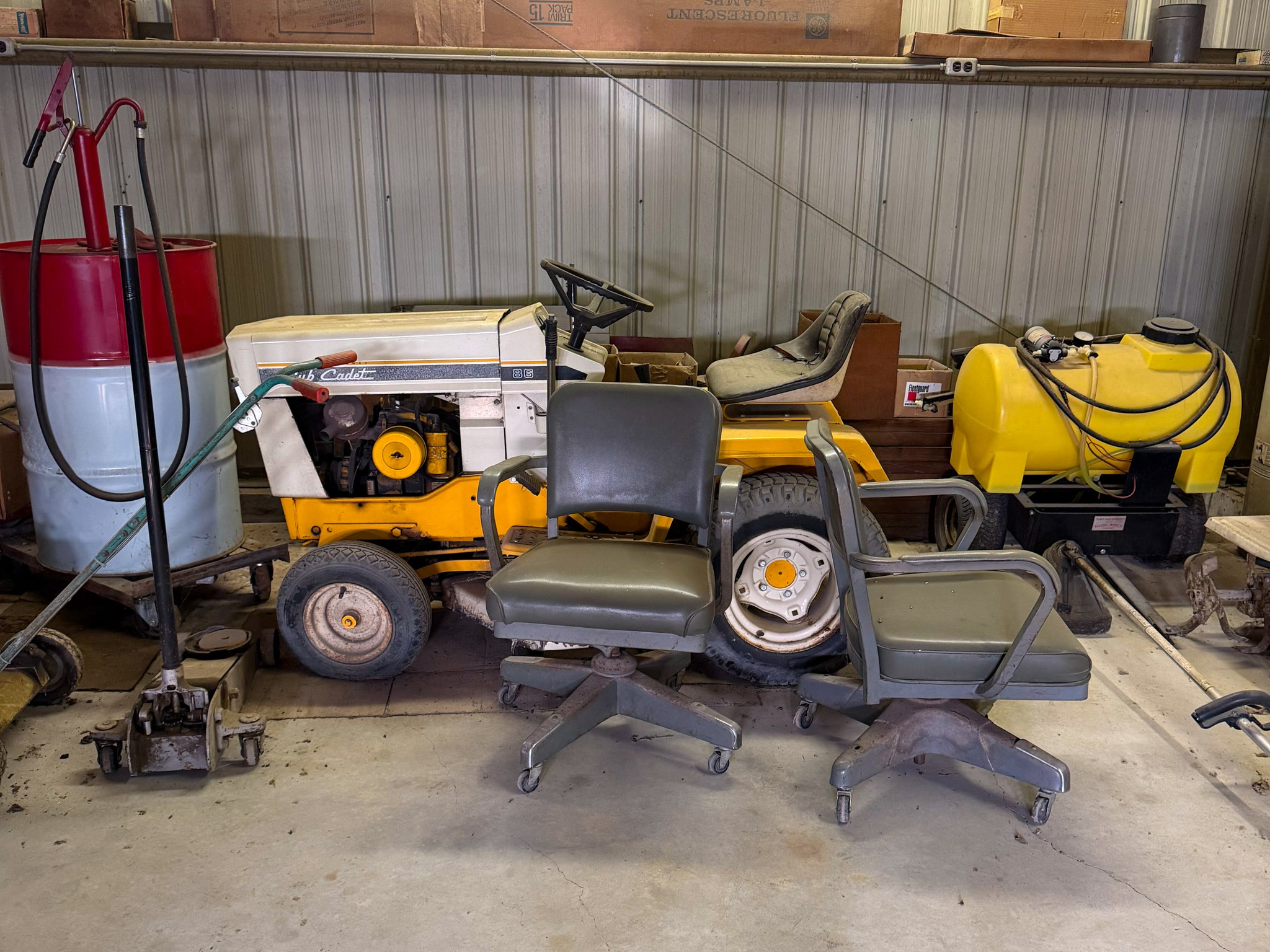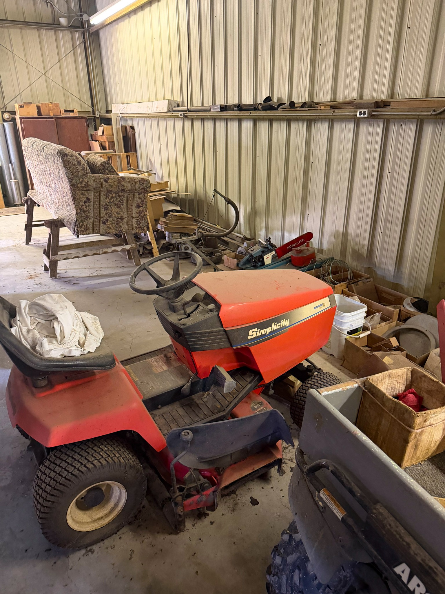 Simplicity Riding mower (14hp, 38 inch cut); Arctic Cat 4 wheeler (green); Cub Cadet 86 riding mower;