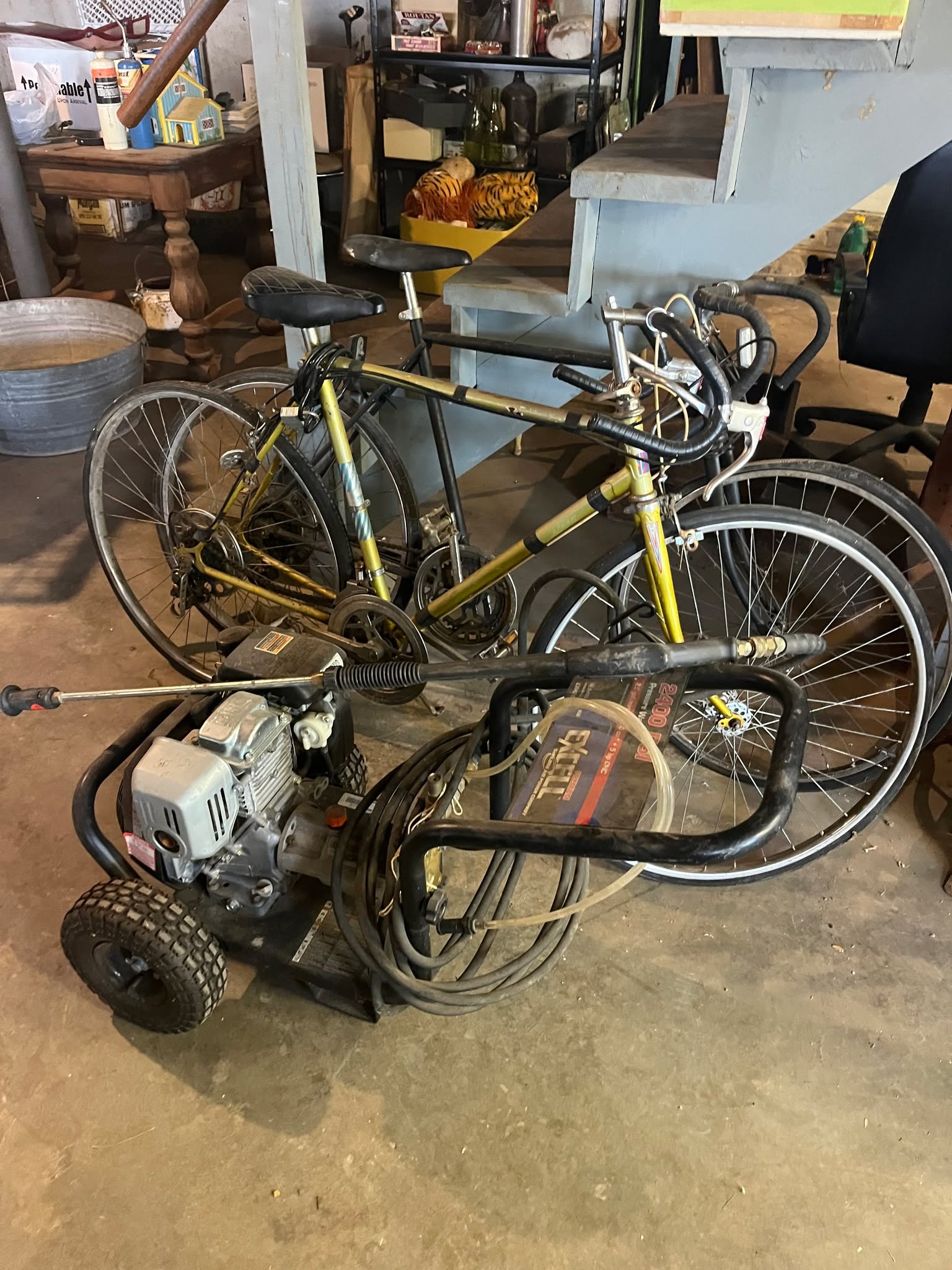 GE Electric Stacked Laundry Center, LG Top Load Washer & Dryer, Kegerator, Numerous Neon Lights & Beer Signs, Cub Cadet Riding Lawn Mower, Genie Lift, craftsman air compressor, Stihl 029 chainsaw, Die Hard battery charger, rear tine tiller, carpet dryer, Yamaha Generator, Troy Built Tomahawk Wood Chipper, fans, tools, tool boxes, JD hay wagon, Rhino 6’ Blade, 3pt., Kubota 4’ Tiller, Late 50’s Chevy truck bed trailer, Electric fireplace, (2) Deer mounts, couch & recliner, BB pistols, Barbie Dolls, Ford Motor advertising pieces, advertising pieces from Edwardsville & Bonner schools, adult diapers, outdoor yard art, Excell power washer, chest deep freezer, lots of miscellaneous too numerous to mention