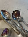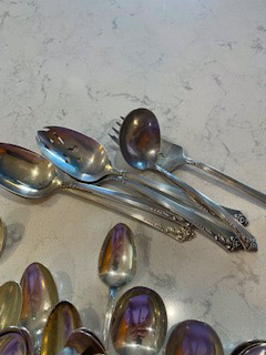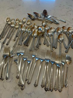 Damask Rose by oneida 90 piece sterling silver silverware set 12 place setting plus extra serving pieces, including iced teaspoons.