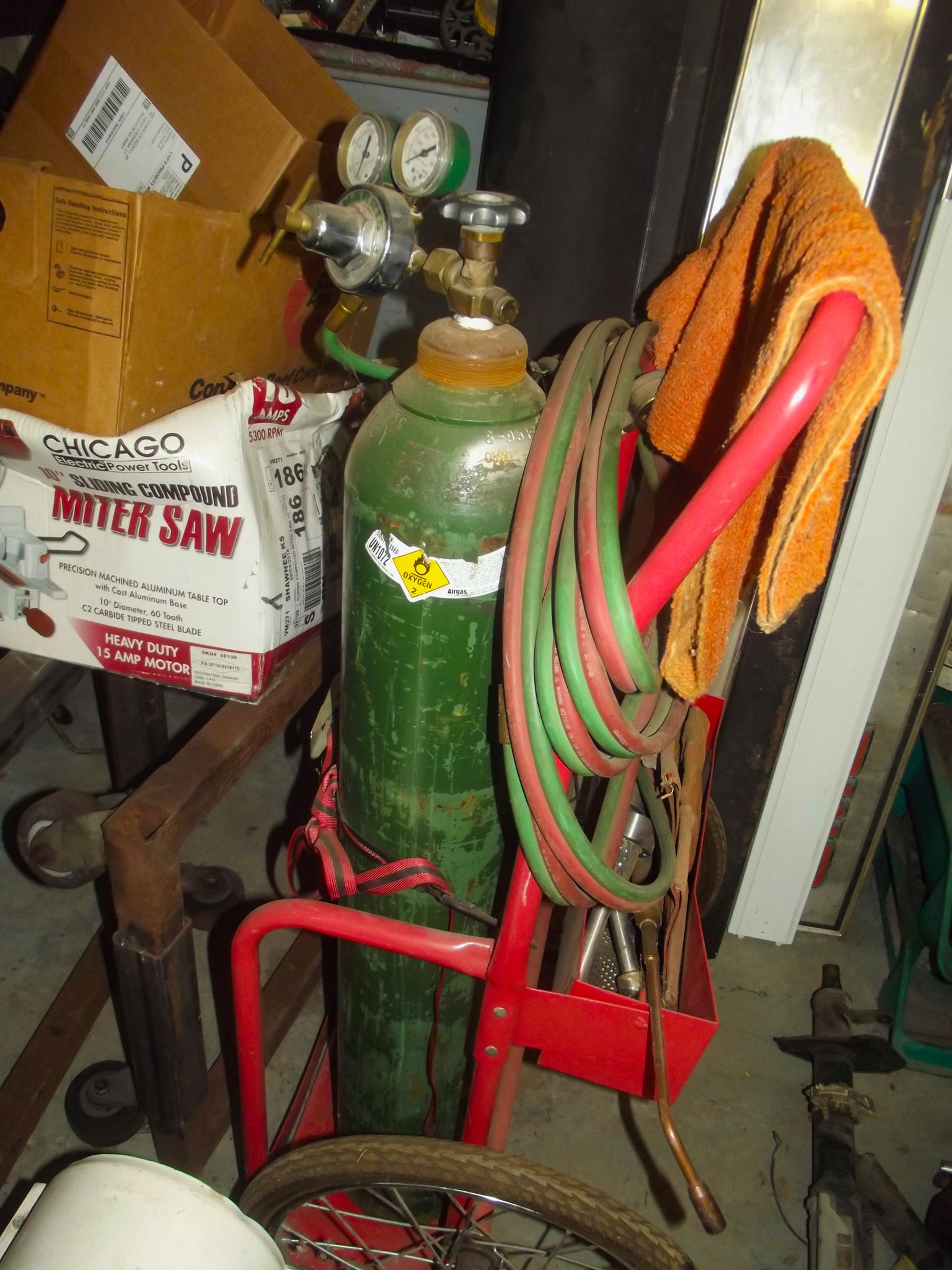 Oxygen and acetylene torch on cart